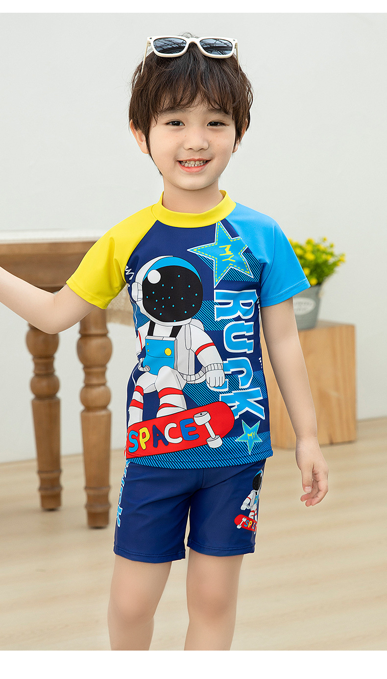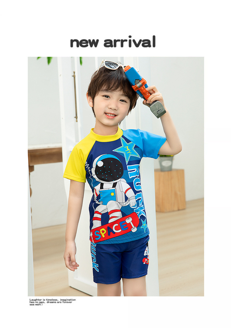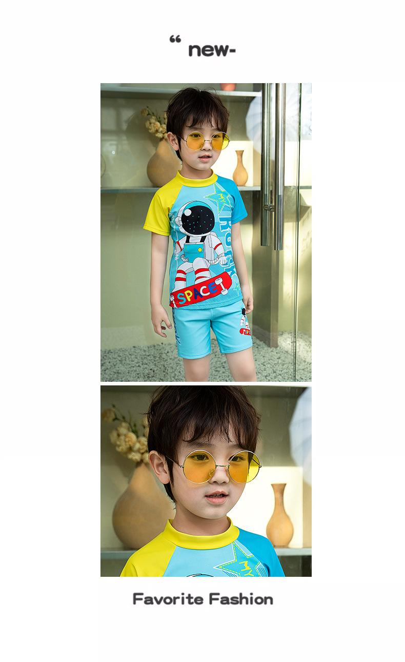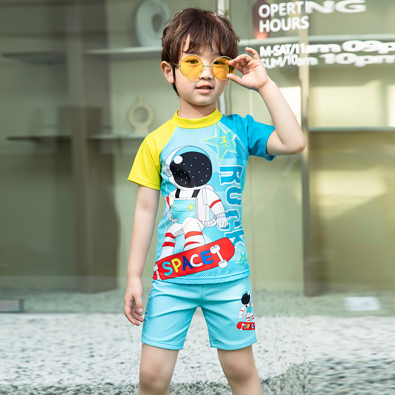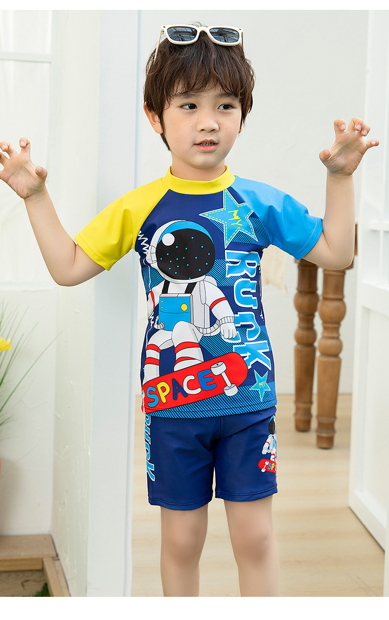 만화 분할 복서 반바지 어린이 수영복 귀여운 중형 및 어린이 소년 태양 보호 소년 수영복 수영 트렁크 세트