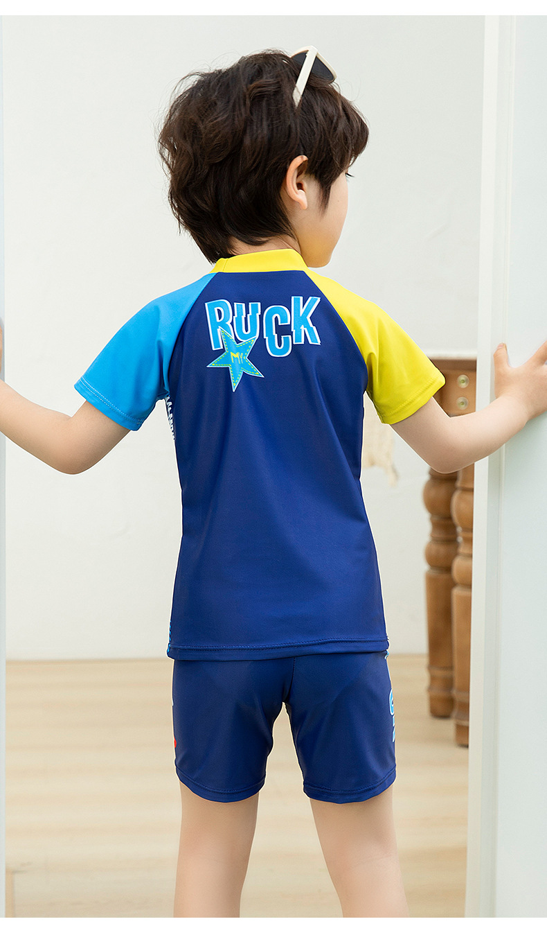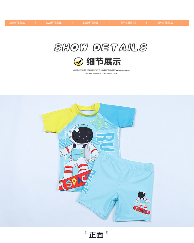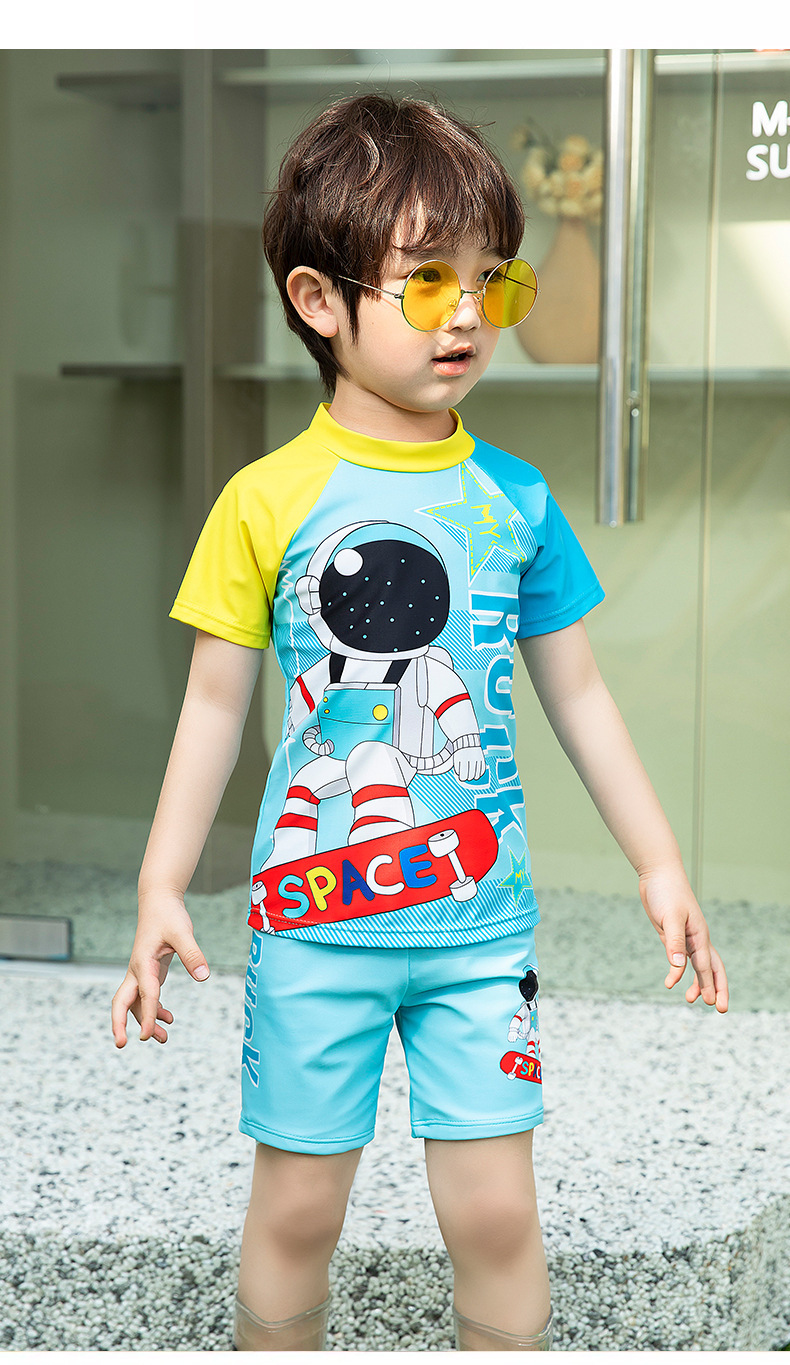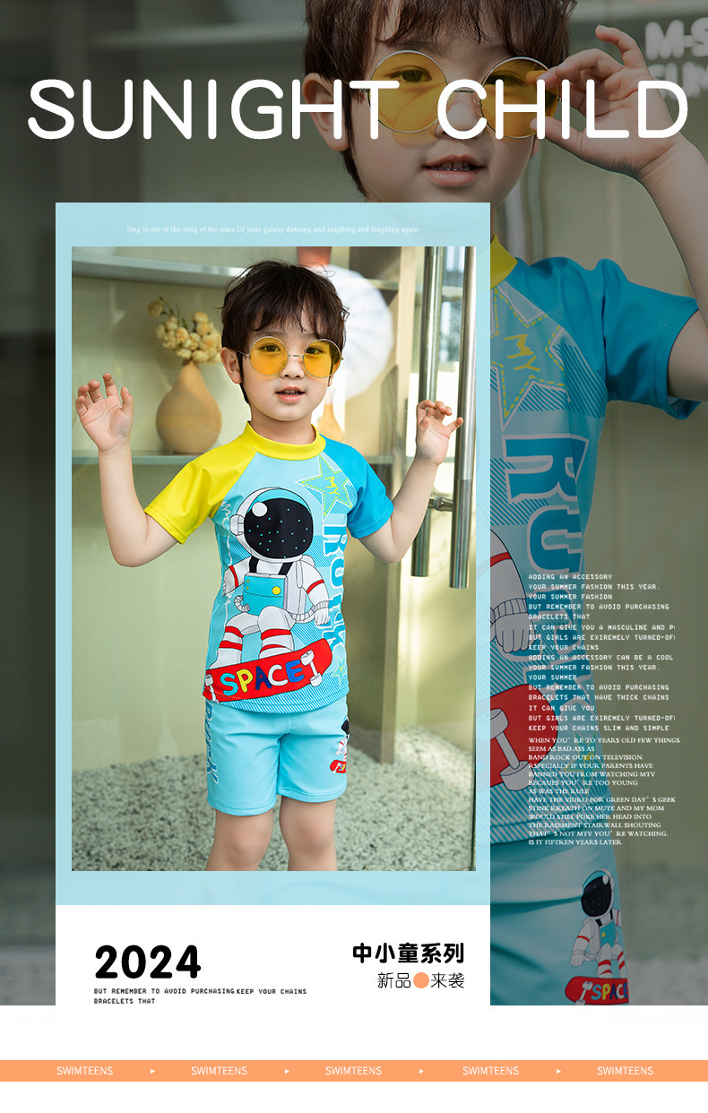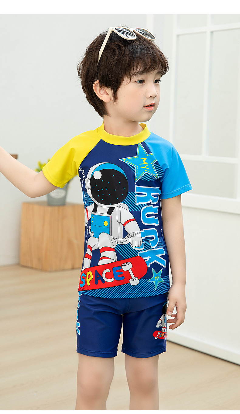 만화 분할 복서 반바지 어린이 수영복 귀여운 중형 및 어린이 소년 태양 보호 소년 수영복 수영 트렁크 세트