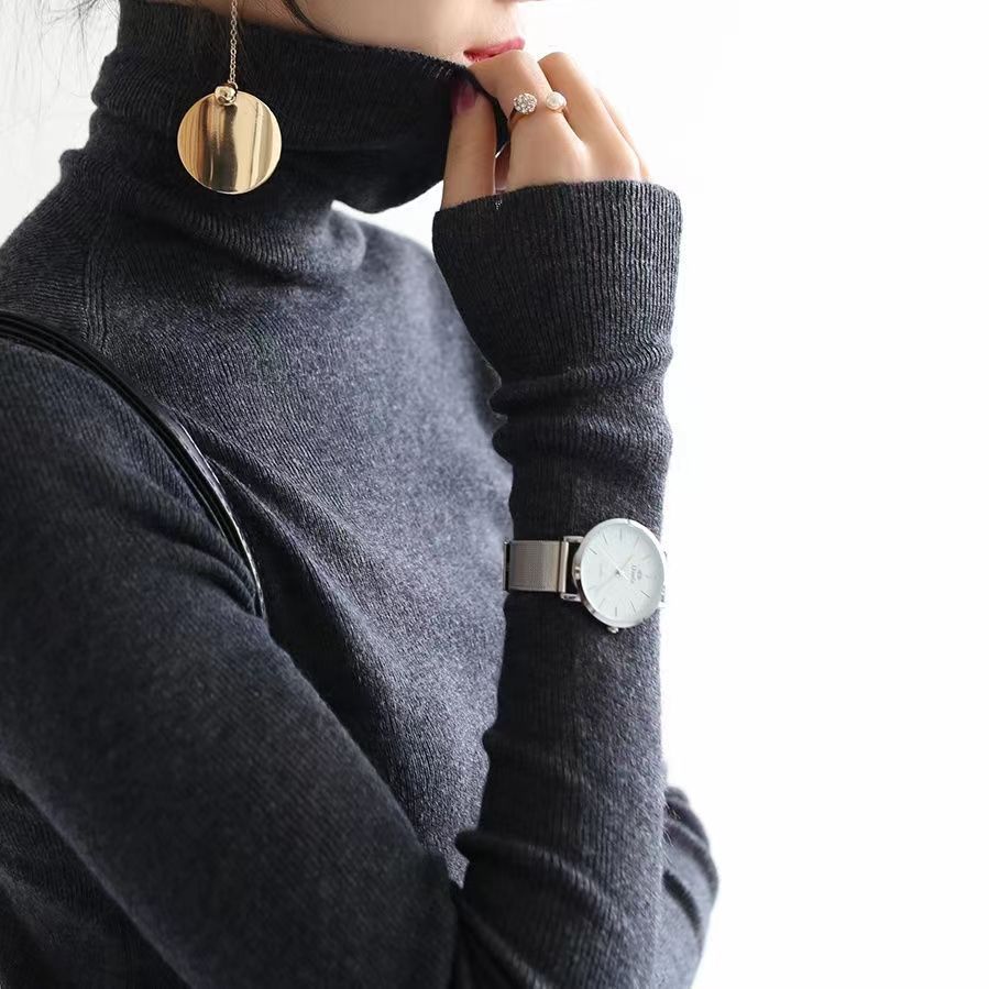 슬리밍 니트웨어 가을과 겨울 더미 밑바닥 서양식 2024 새로운 긴 소매 슬림 탑 터틀넥 스웨터 여성용 내복