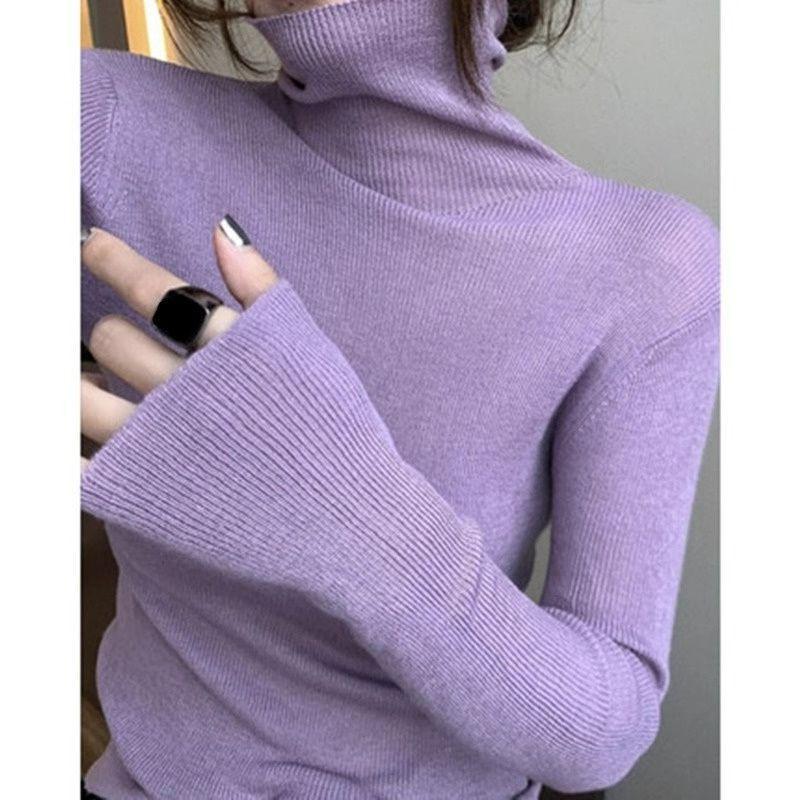 슬리밍 니트웨어 가을과 겨울 더미 밑바닥 서양식 2024 새로운 긴 소매 슬림 탑 터틀넥 스웨터 여성용 내복스토어 가기