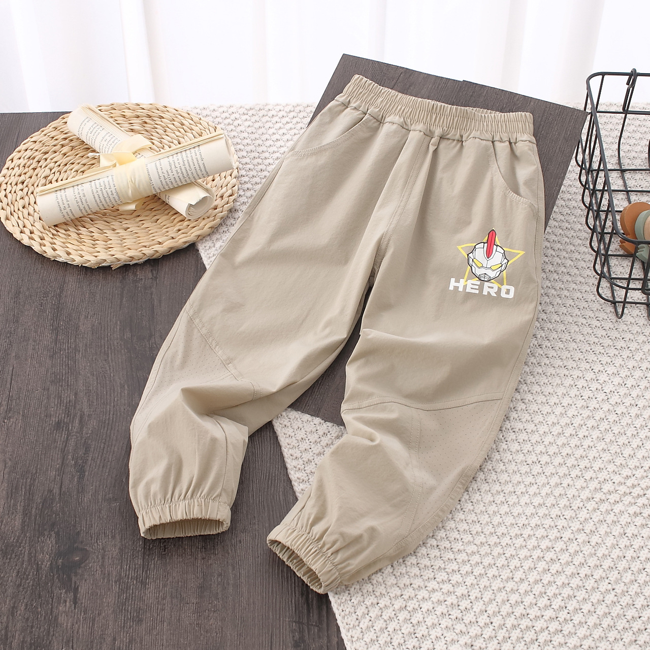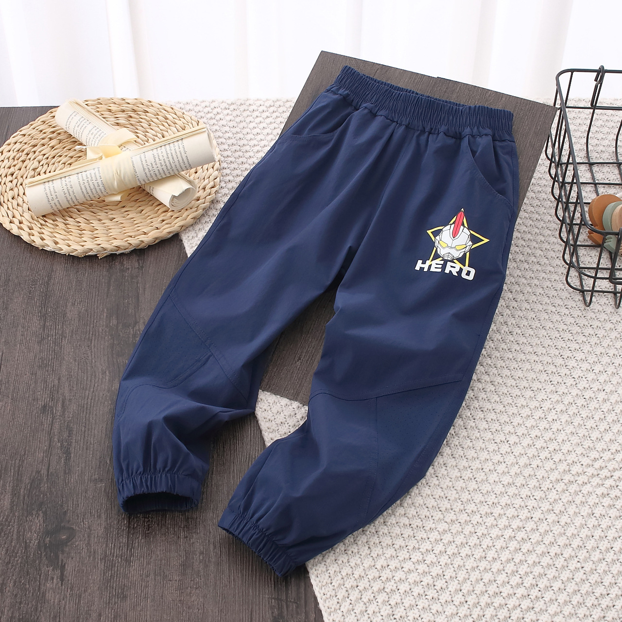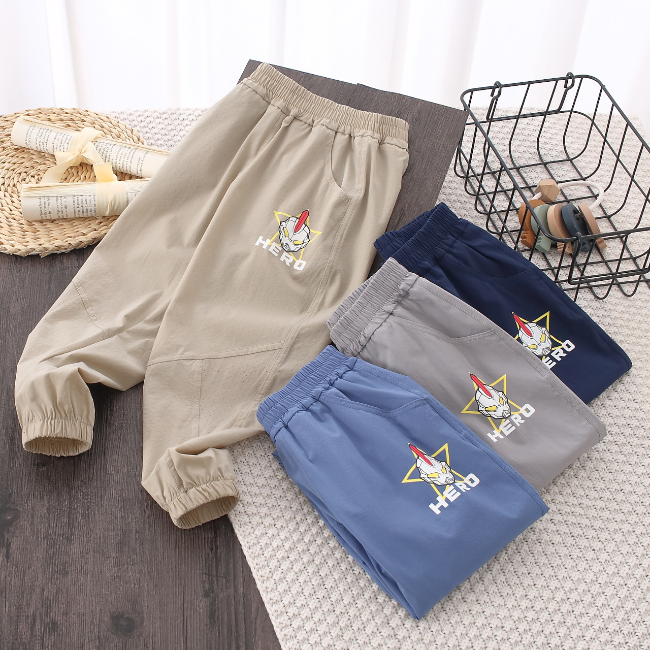 2024 새로운 소년 바지 통기성 편안한 중형 및 대형 어린이 스포츠 패션 트렌디 한 어린이 원피스 배달 도매