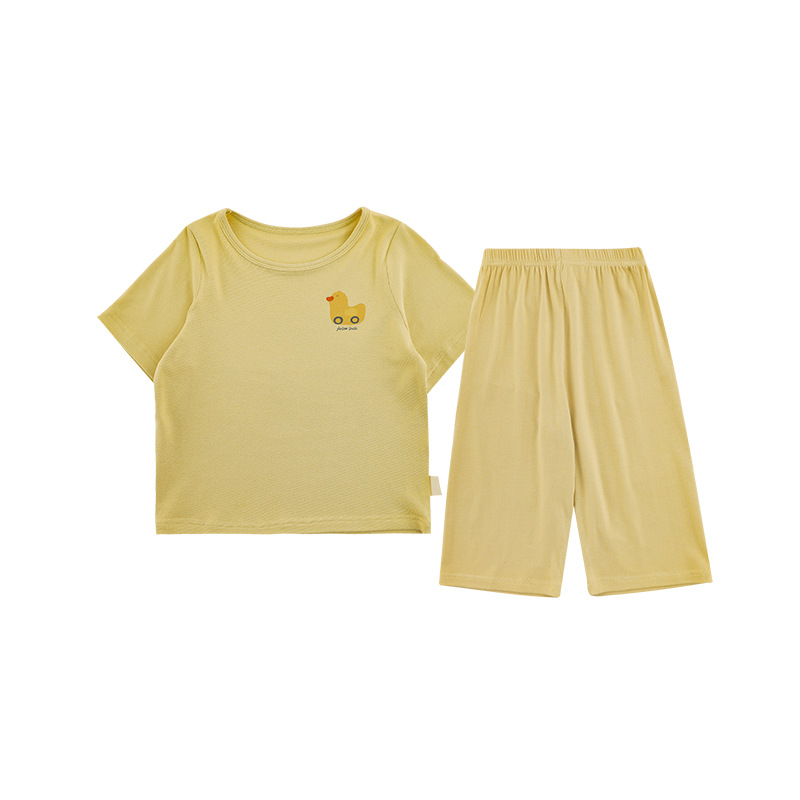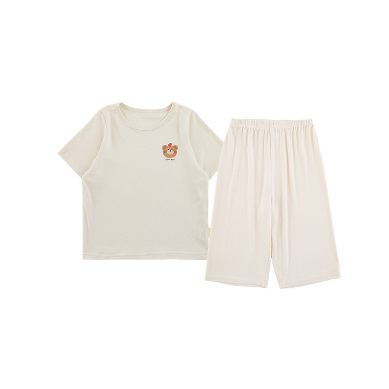 Qiu Duomeng Girls Modal 홈 의류 세트 2025 여름 새로운 어린이 한국식 귀여운 파자마 투피스 세트스토어 가기