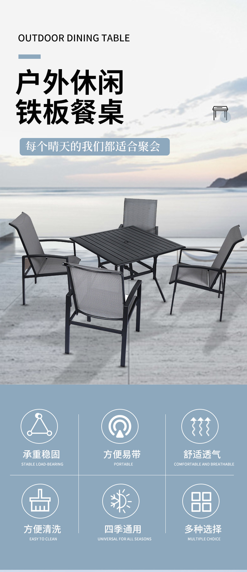 공장 직접 야외 레저 테이블 합금 식탁 빌라 야외 발코니 야외 가구 안뜰 테이블 도매
