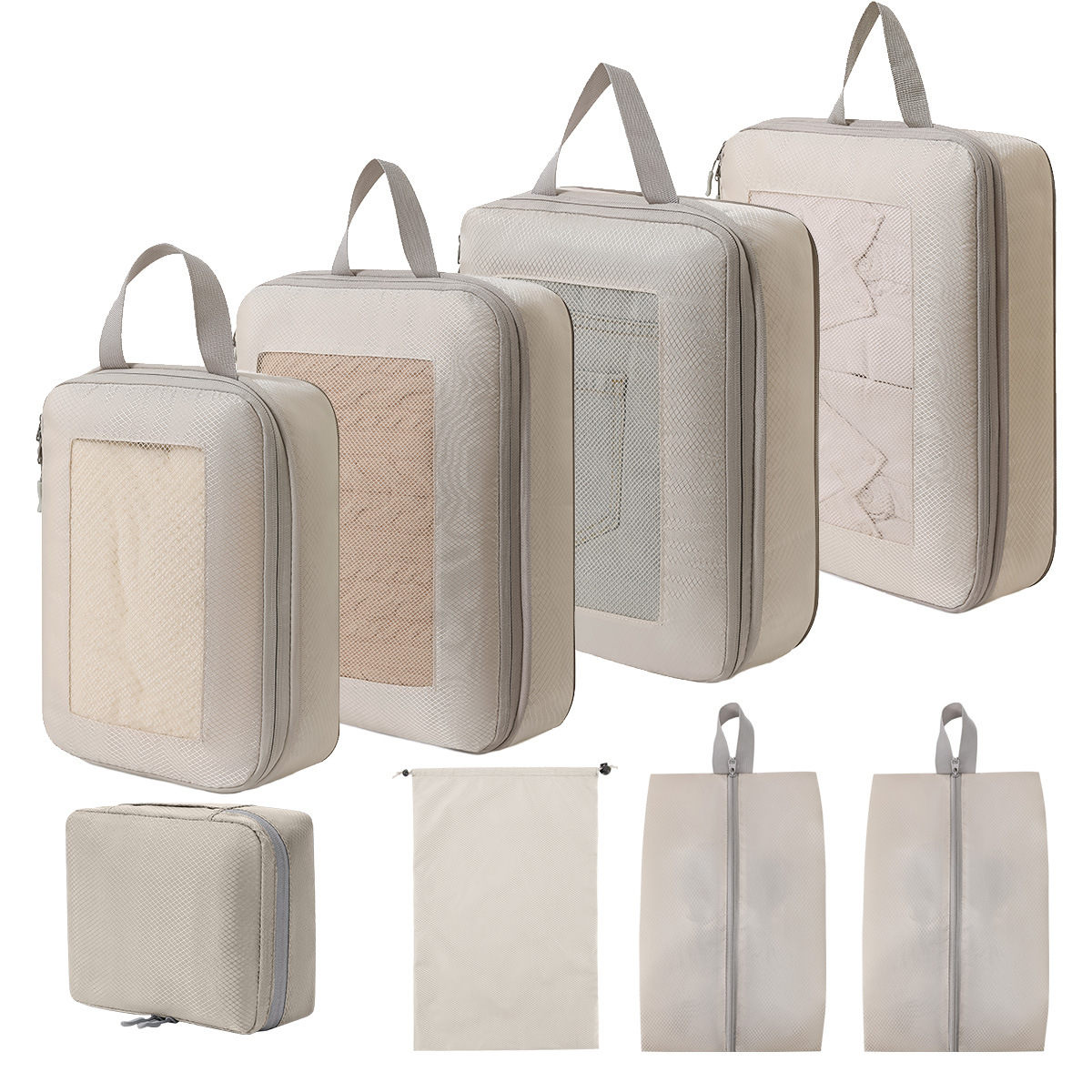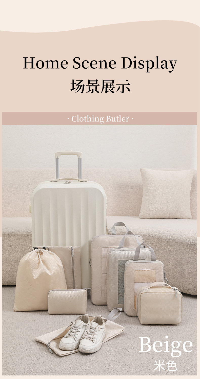 • 8 피스 세트 베이지 C [4 피스 세트 신발 가방 번들 포켓 워시 백 디지털 가방]]