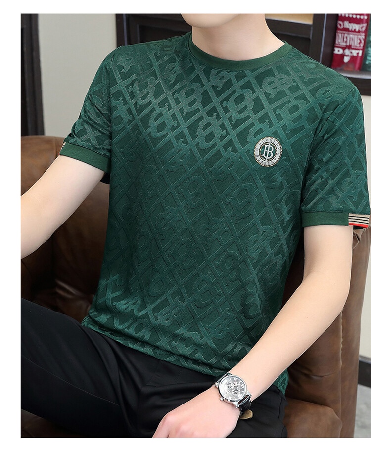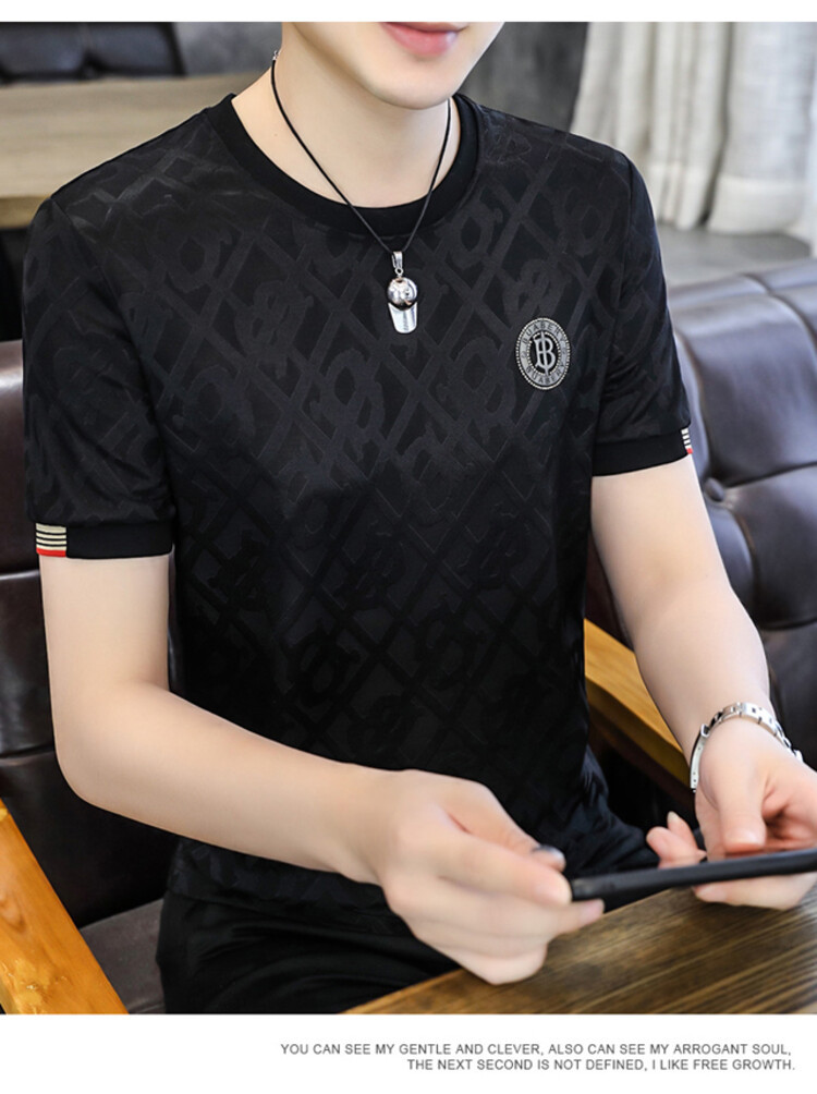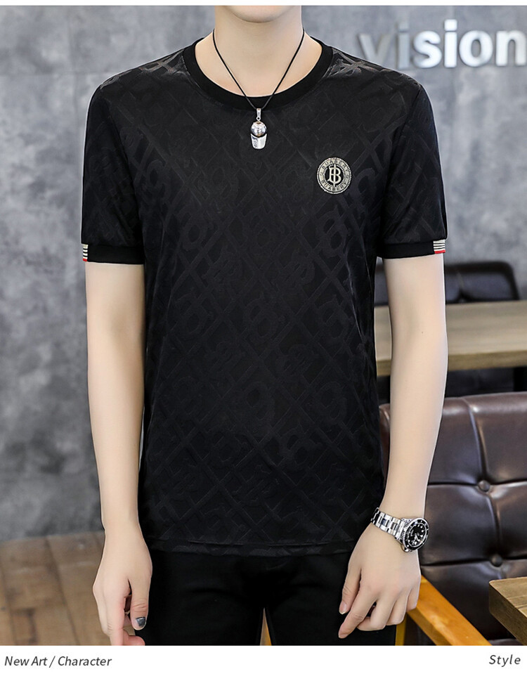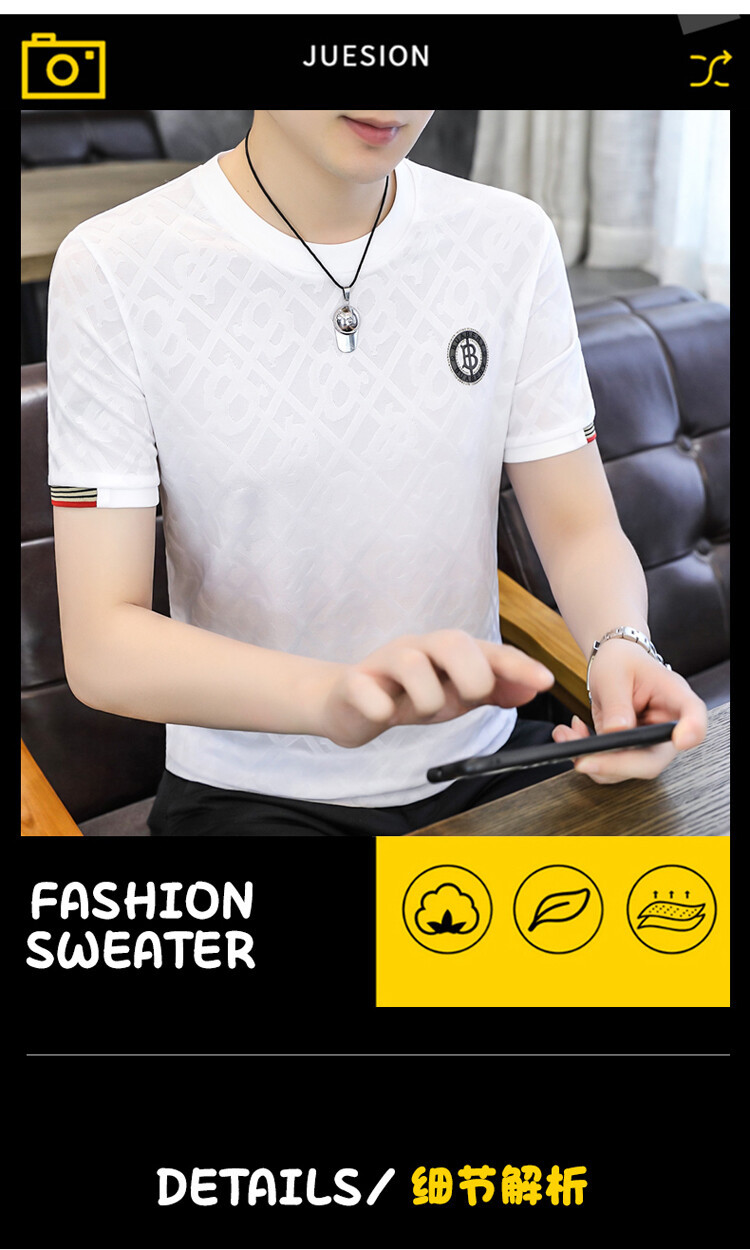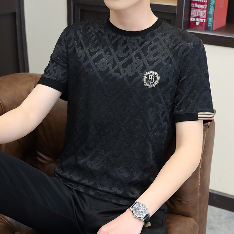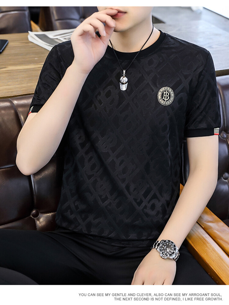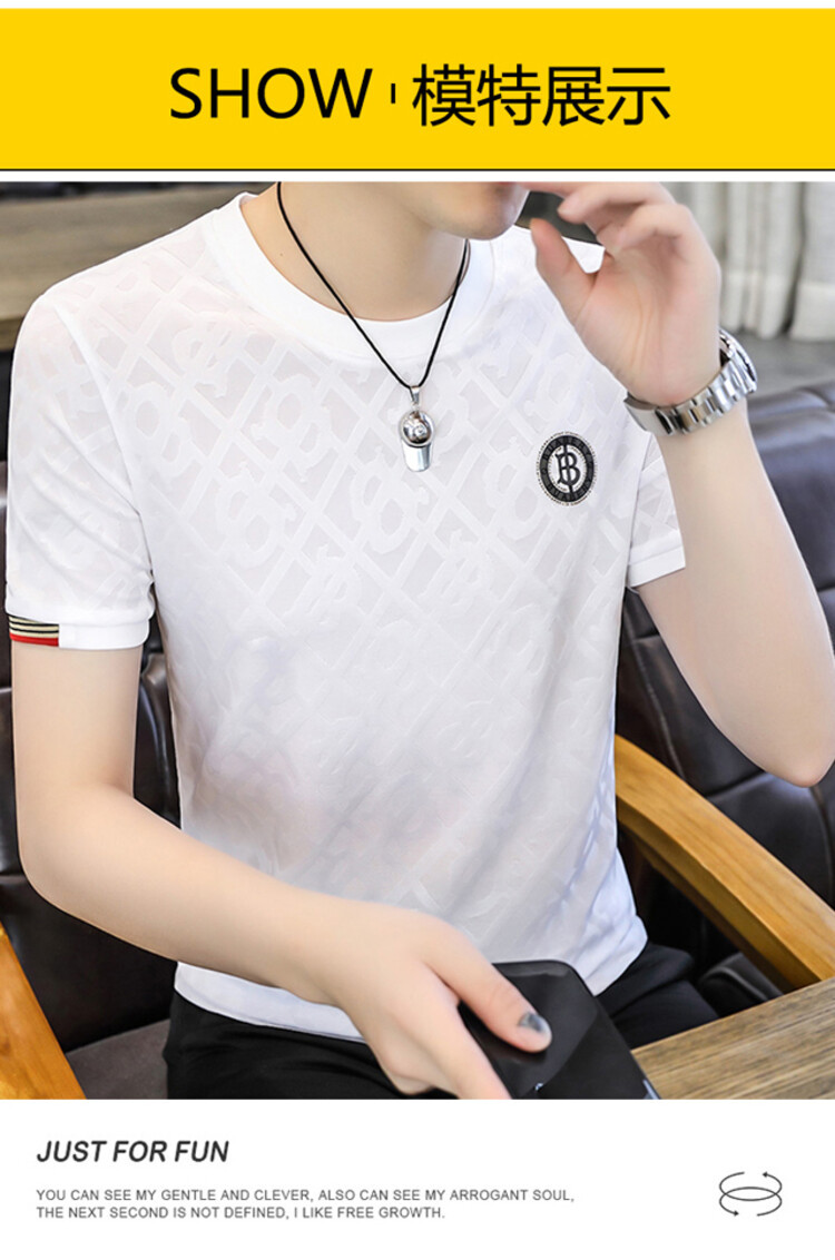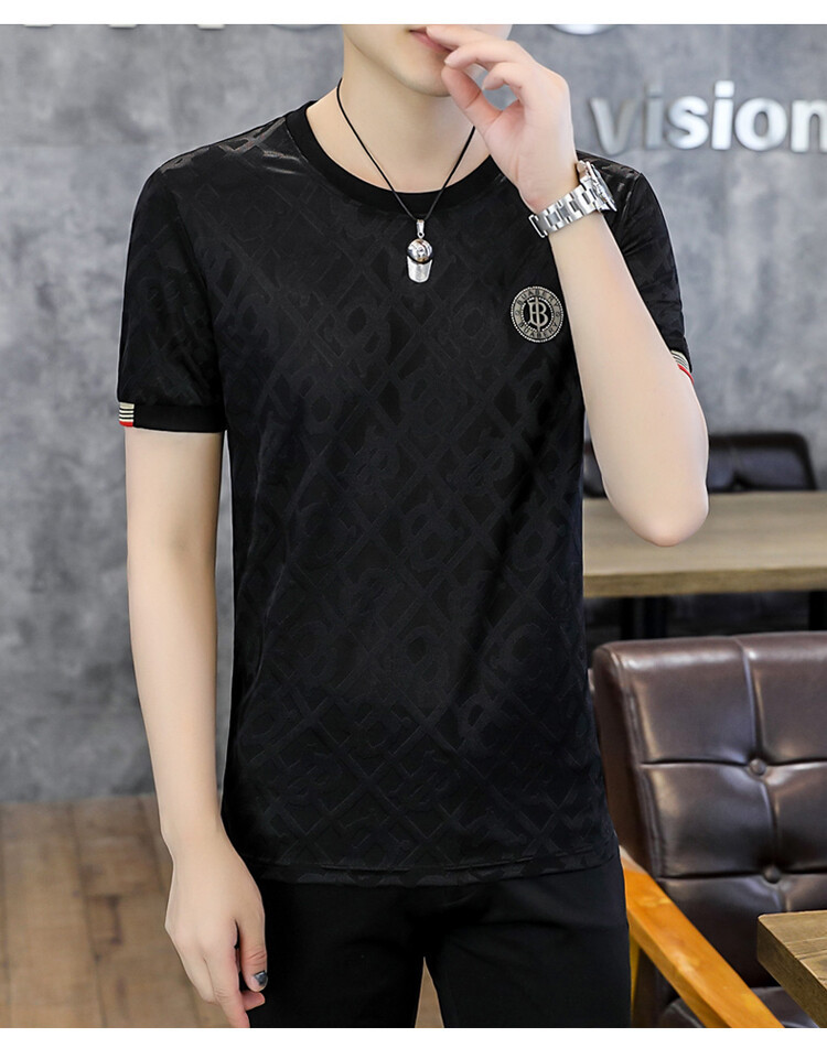 여름 패션 브랜드 느슨한 자카드 모조 다이아몬드 티셔츠 남성 패션 간단한 짧은 소매 캐주얼 잘 생긴 청소년 올 매치 하단탑스토어 가기