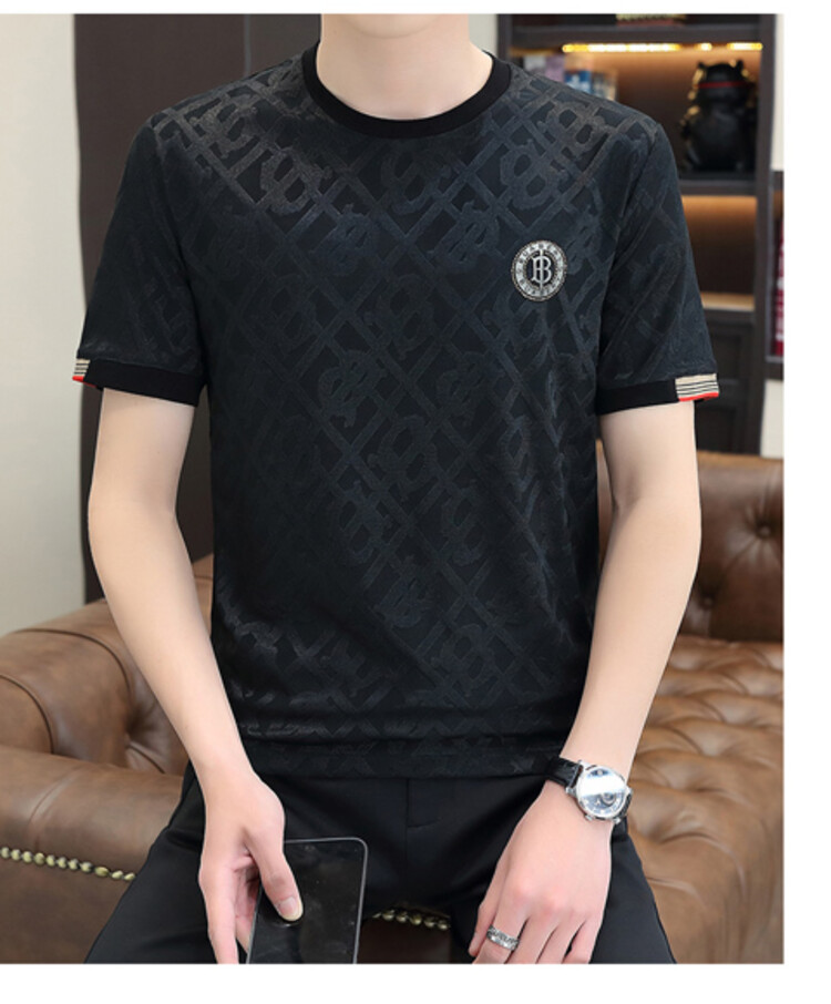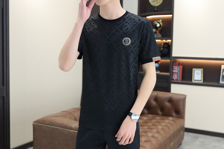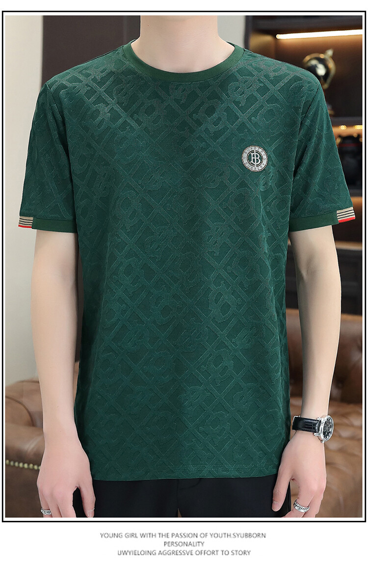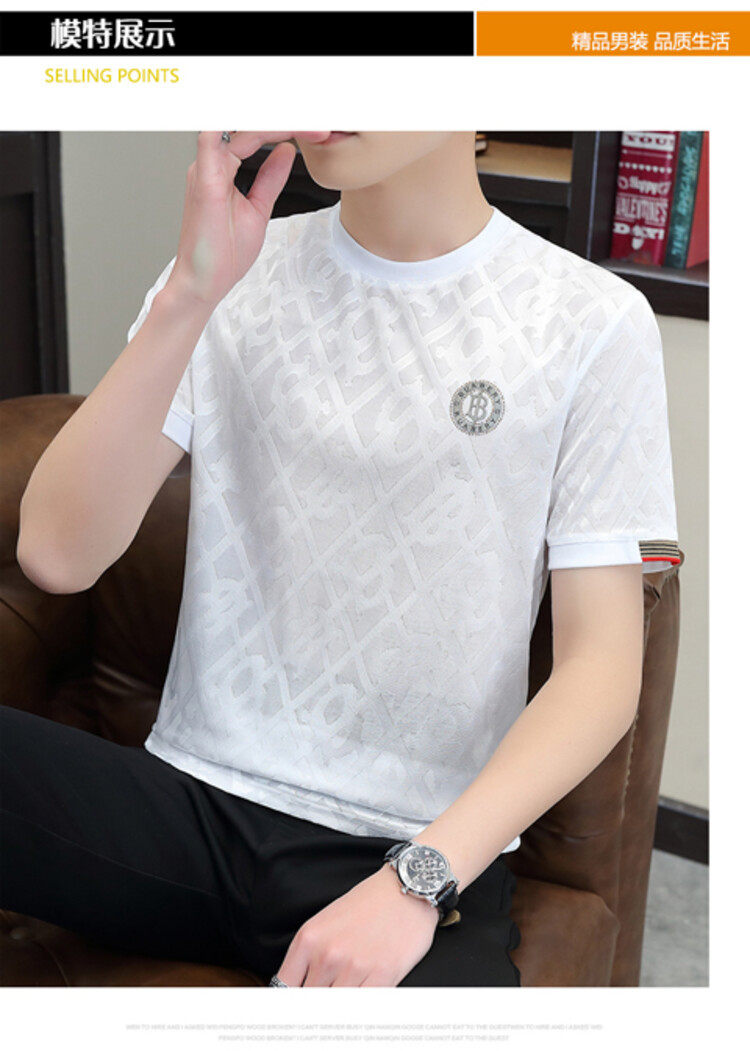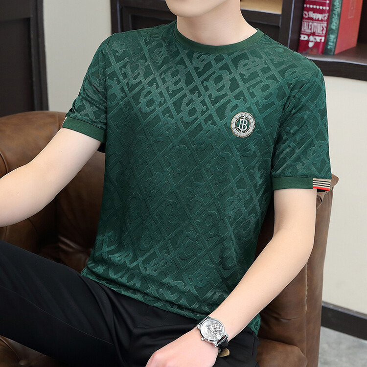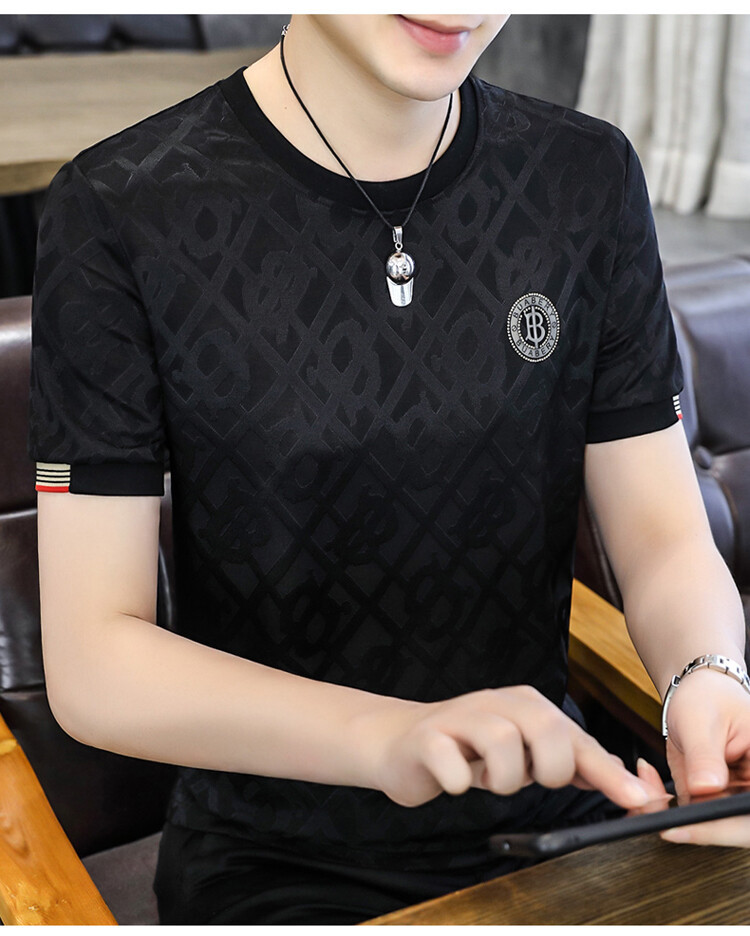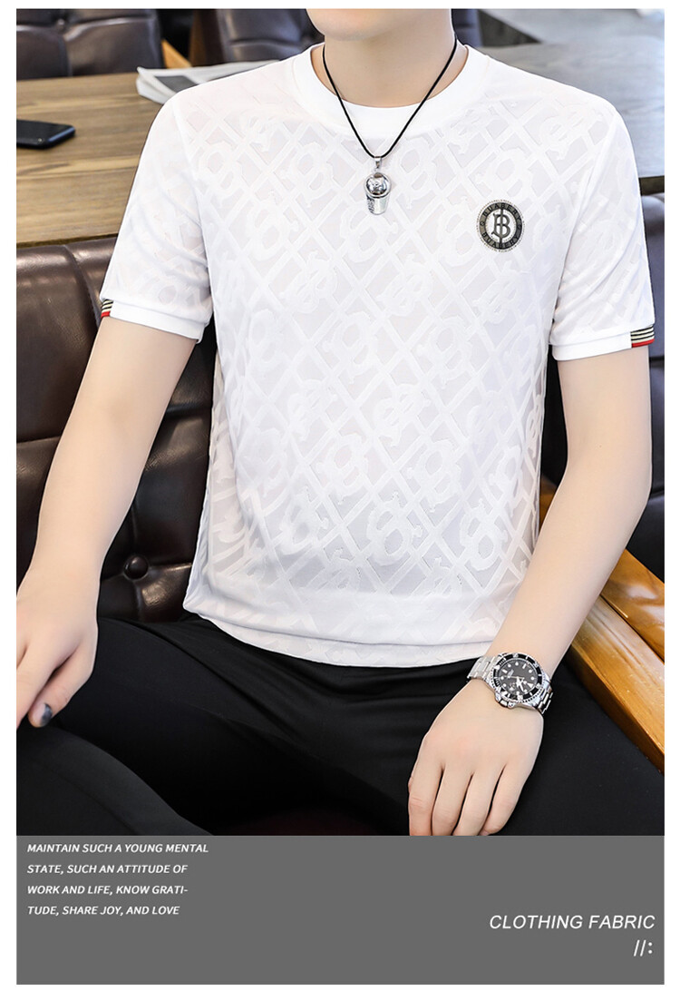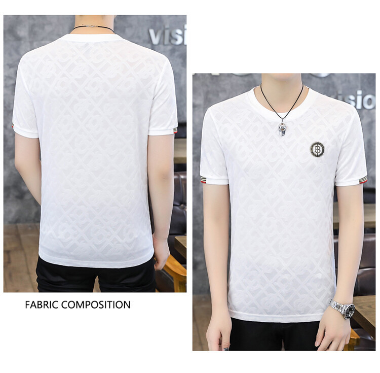 여름 패션 브랜드 느슨한 자카드 모조 다이아몬드 티셔츠 남성 패션 간단한 짧은 소매 캐주얼 잘 생긴 청소년 올 매치 하단탑스토어 가기