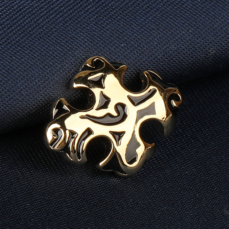 • 크로스 메달 블랙 브로치 칼라 핀 [구리 소재/선물 상자