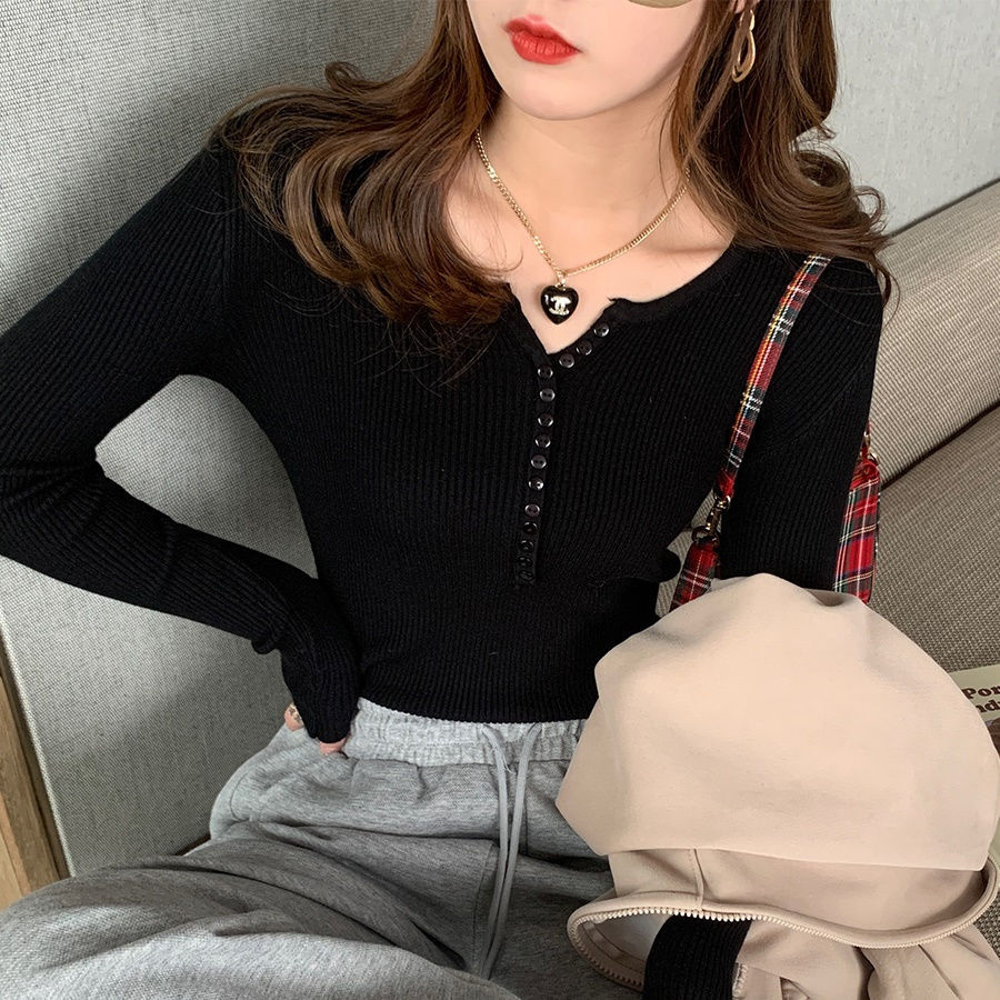 Xiaoxiangfeng 이너 레이어드 셔츠 v 넥 얇은 스웨터 2025 새로운 가을, 겨울 게으른 스타일 스웨터 v 가을 탑스토어 가기