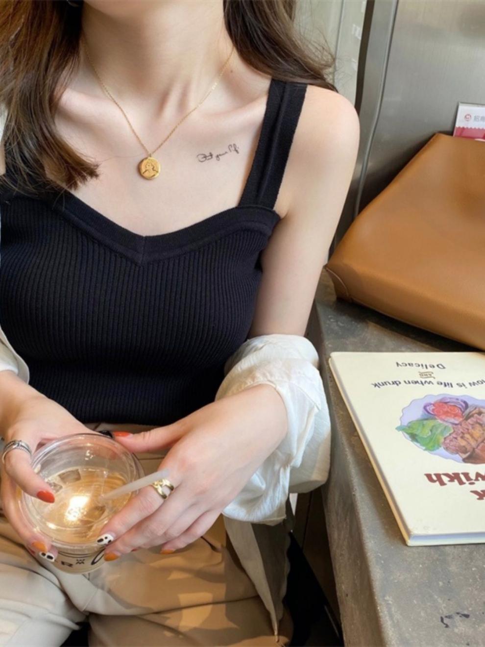 흰색 V 넥 작은 캐미솔 여성의 내부 상단 봄과 여름 뜨거운 소녀 섹시한 아름다운 뒷면 얇은 민소매 바닥 셔츠