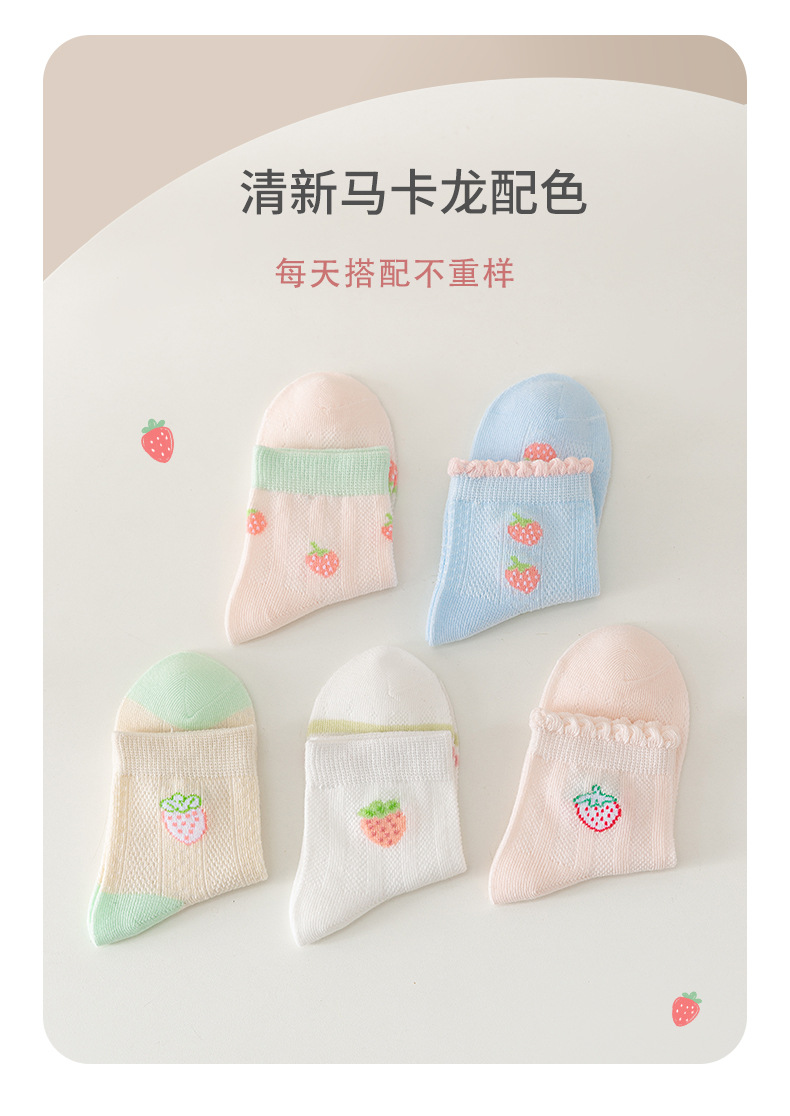 2024 봄 새 소녀 양말 봄과 여름 얇은 메쉬 양말 어린이 면 양말
