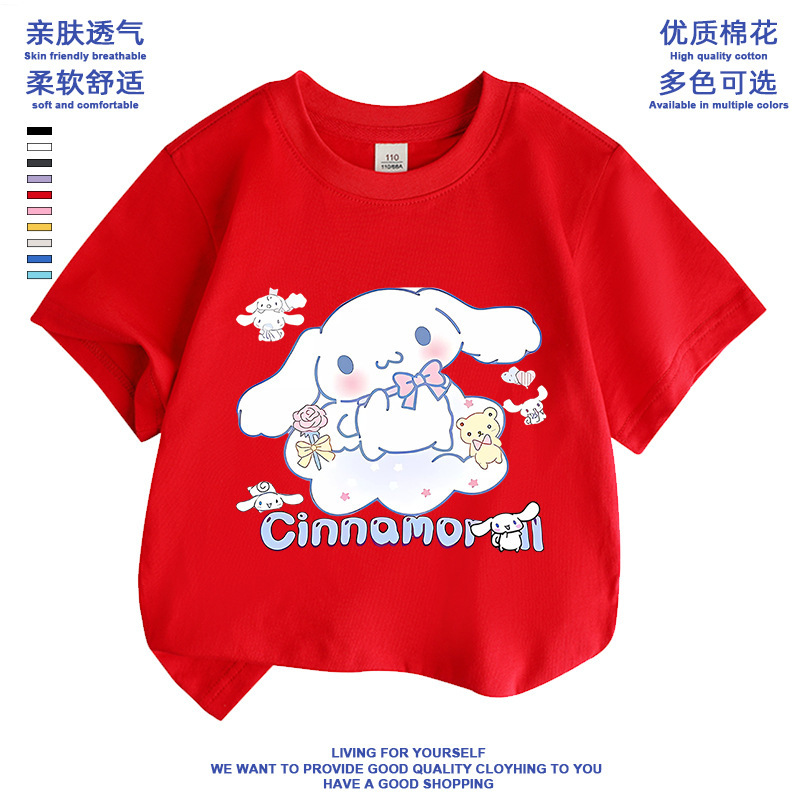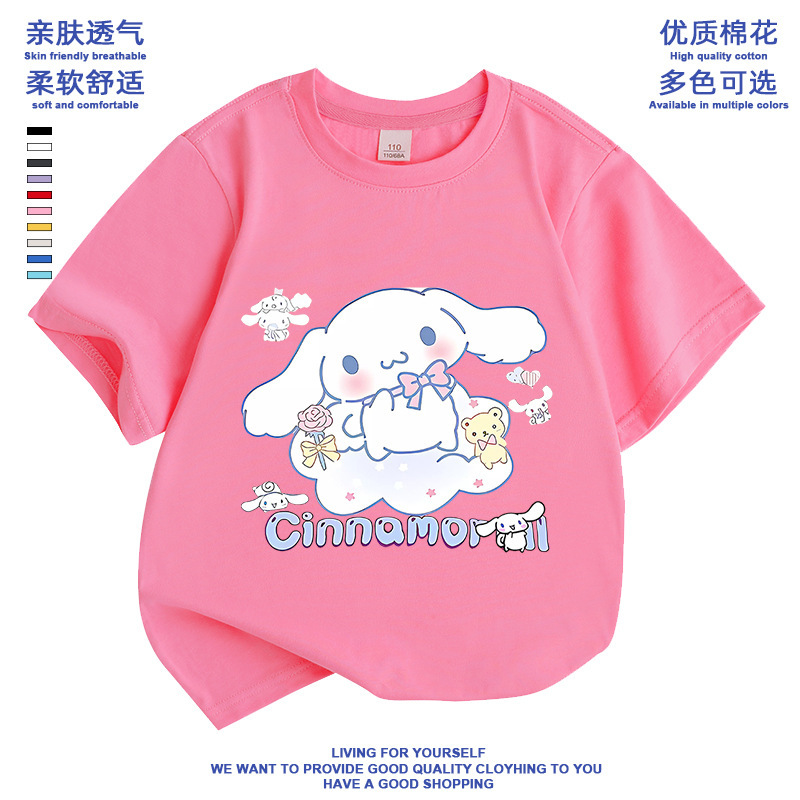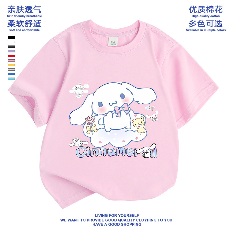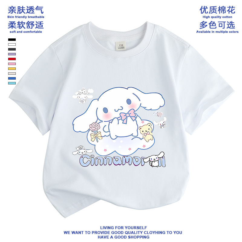 새로운 Yugui 개 옷 서양식 짧은 소매 소녀 의류 큰 귀 개 여름 2024 순수한면 간단한 올 매치 하프 슬리브 T