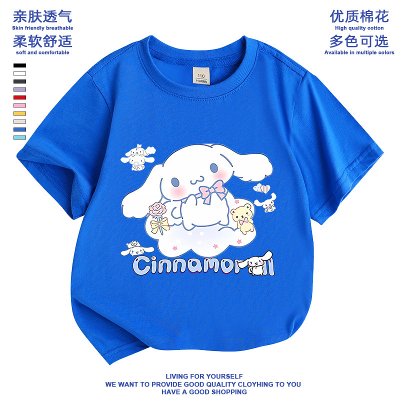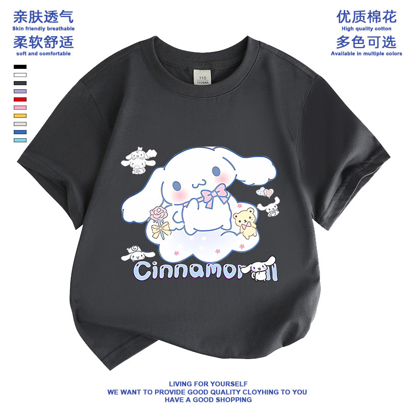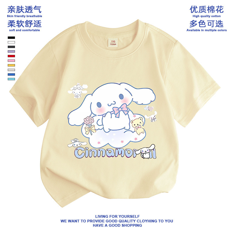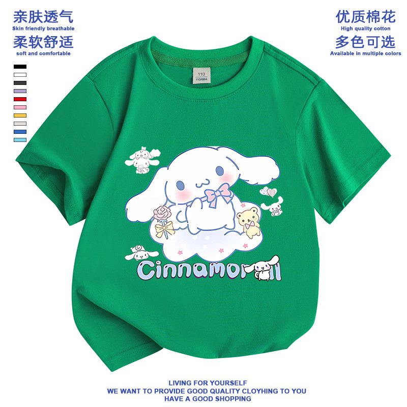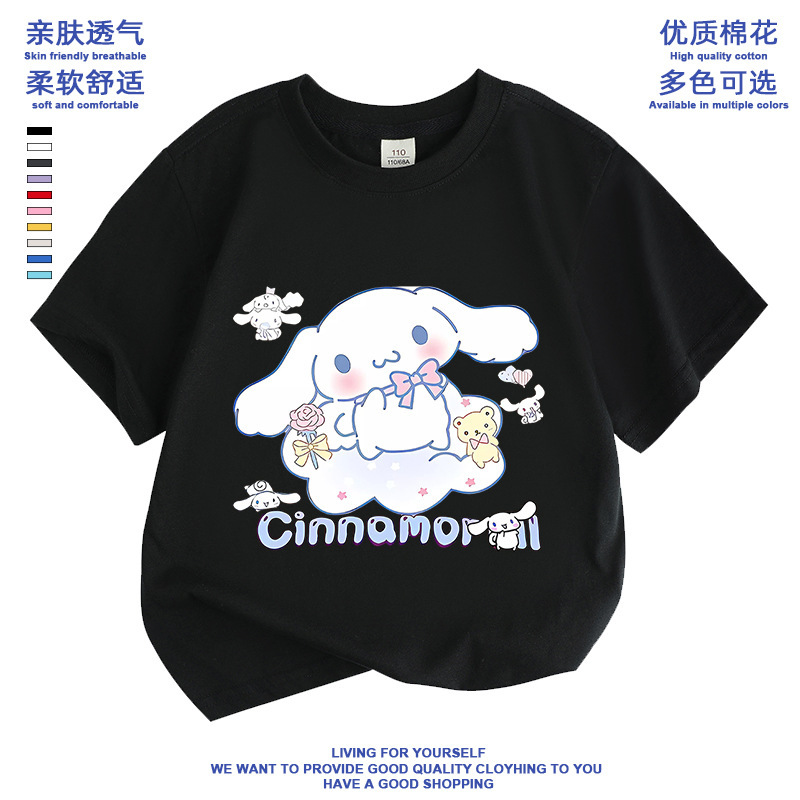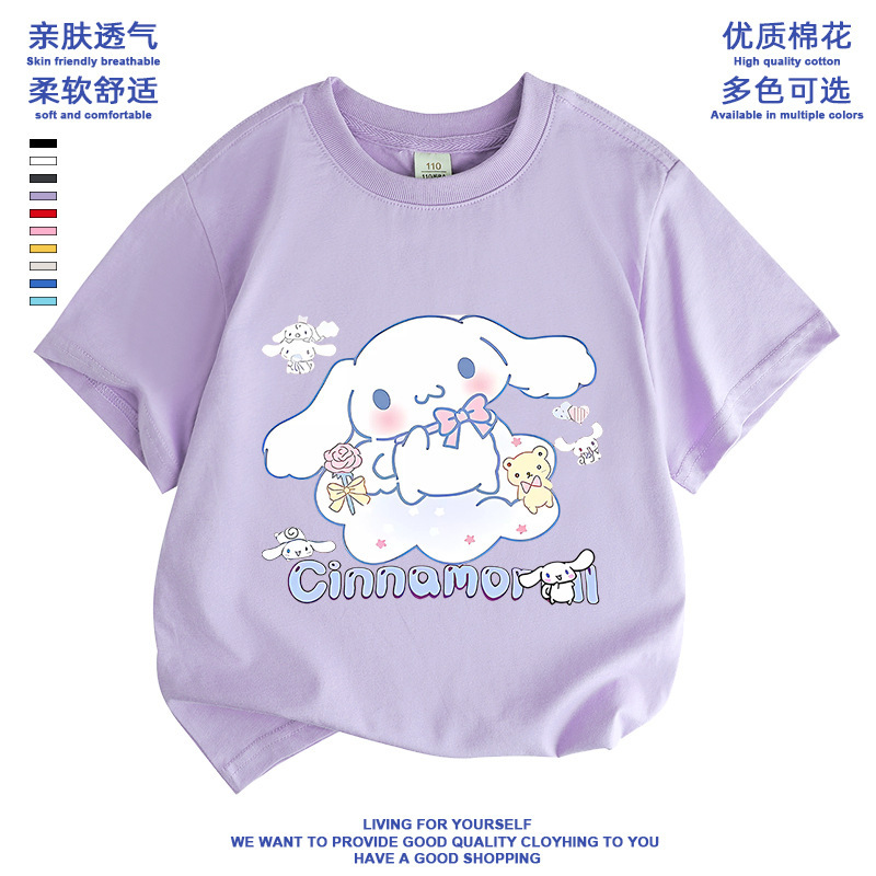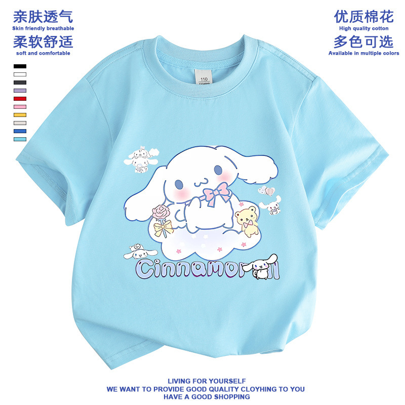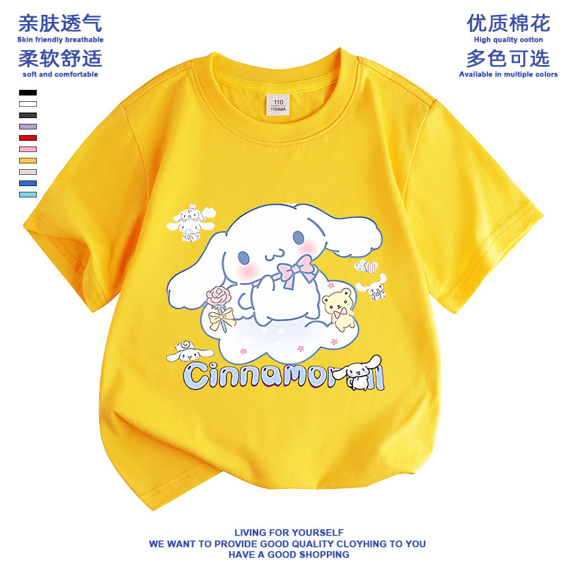 새로운 Yugui 개 옷 서양식 짧은 소매 소녀 의류 큰 귀 개 여름 2024 순수한면 간단한 올 매치 하프 슬리브 T스토어 가기