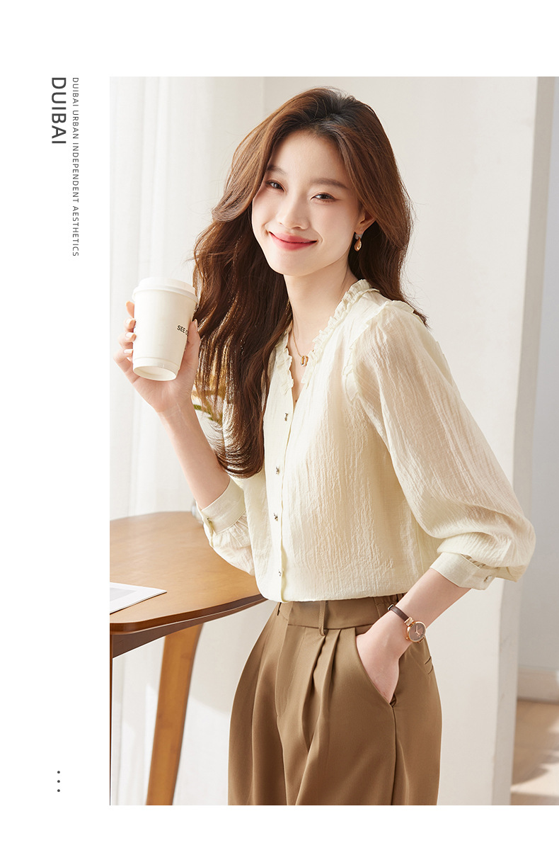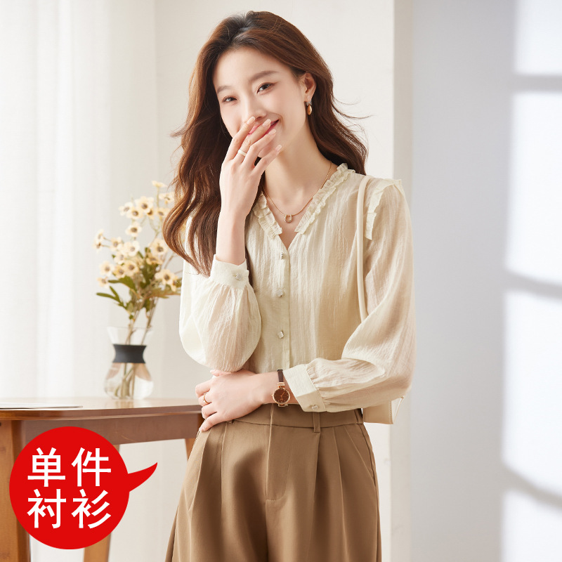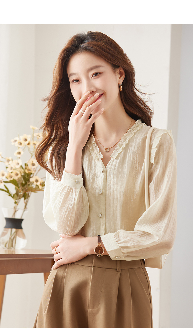 프랑스 우아한 부드러운 V 넥 쉬폰 레이스 블라우스 여성의 봄 달콤한 세련된 패션 긴 소매 슈퍼 요정 셔츠 탑스토어 가기