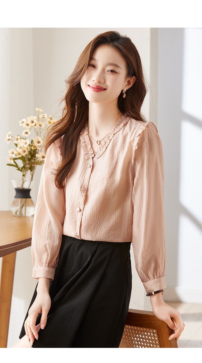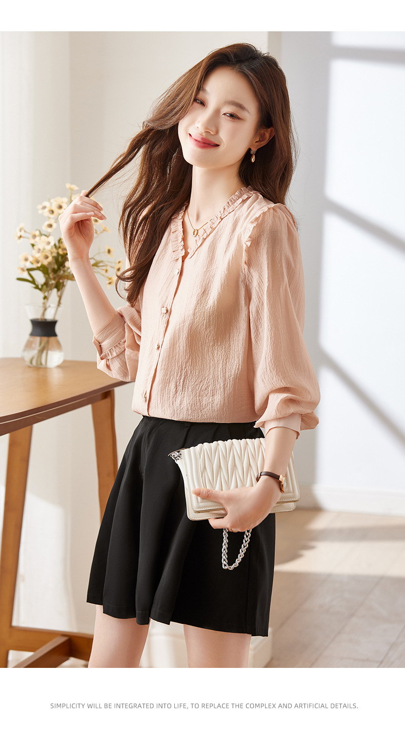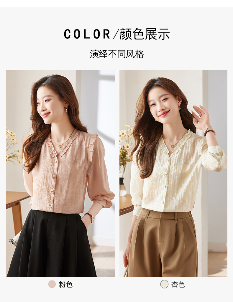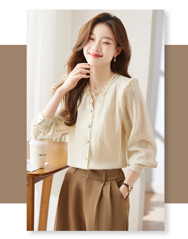 프랑스 우아한 부드러운 V 넥 쉬폰 레이스 블라우스 여성의 봄 달콤한 세련된 패션 긴 소매 슈퍼 요정 셔츠 탑