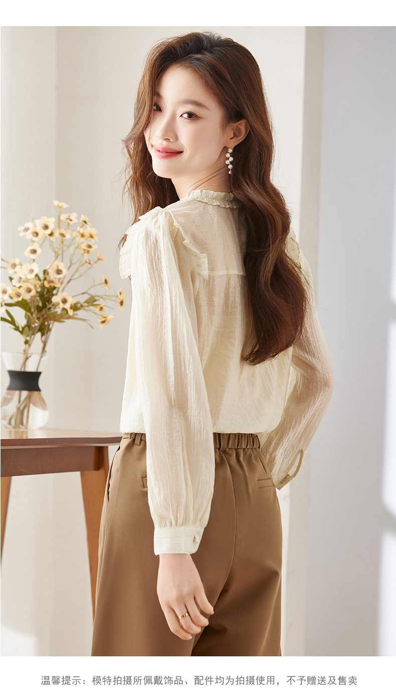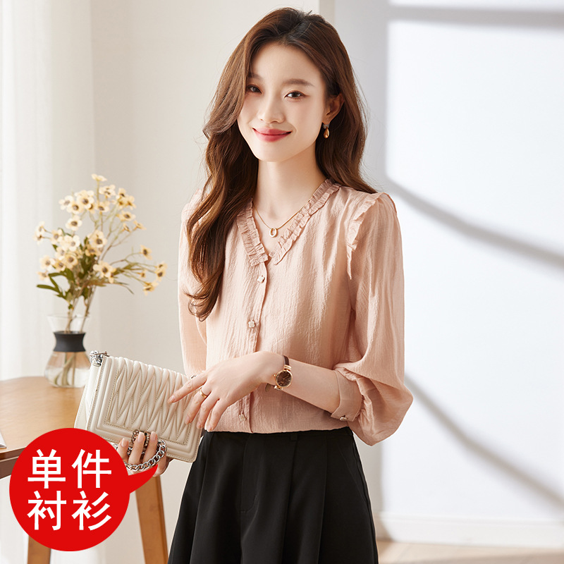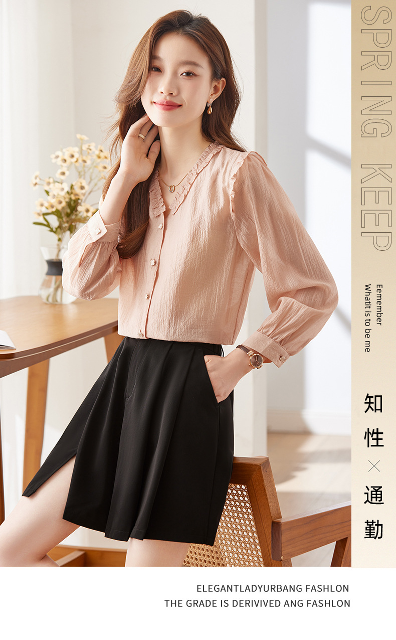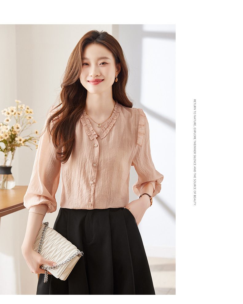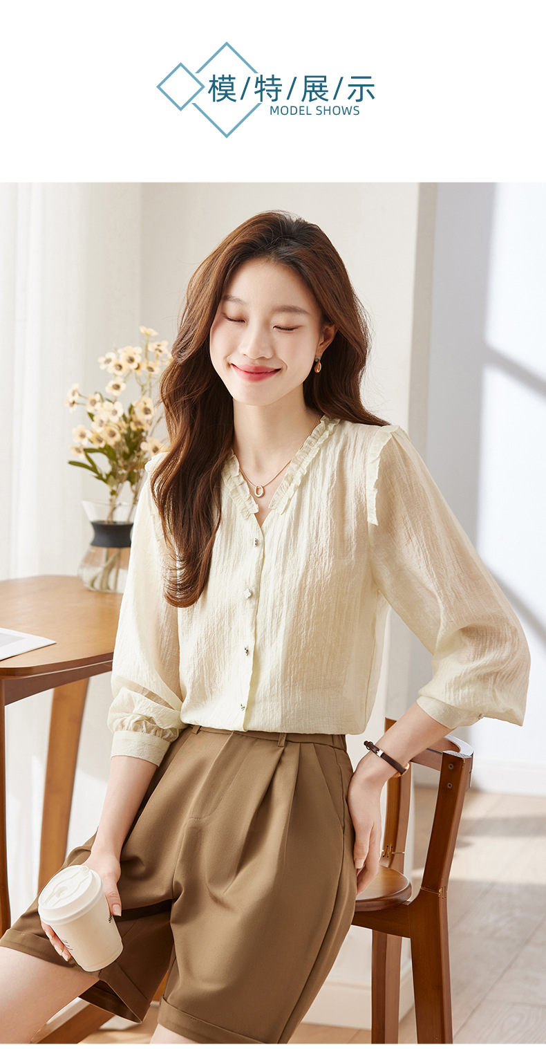 프랑스 우아한 부드러운 V 넥 쉬폰 레이스 블라우스 여성의 봄 달콤한 세련된 패션 긴 소매 슈퍼 요정 셔츠 탑