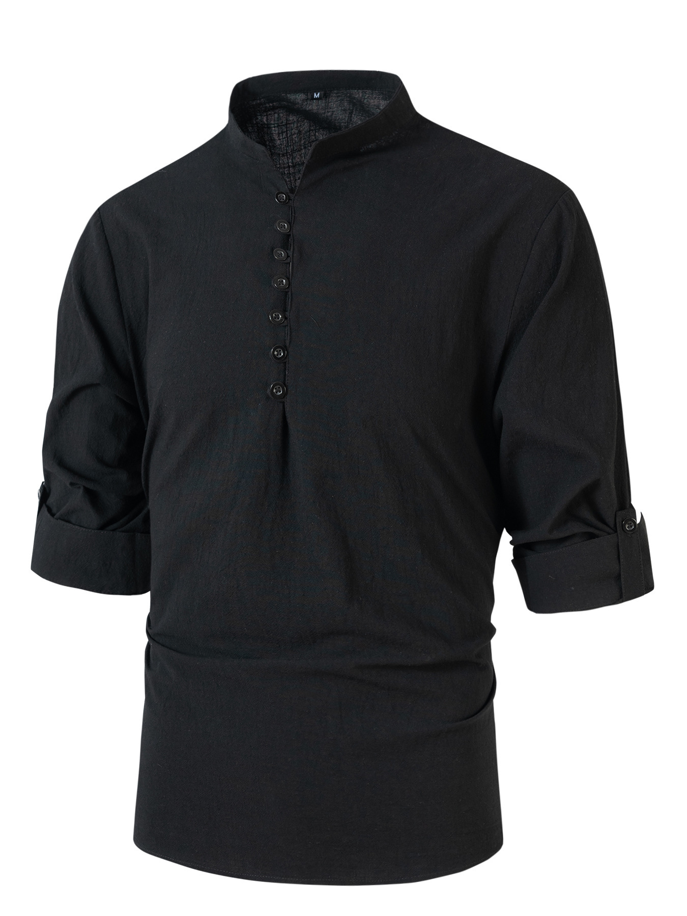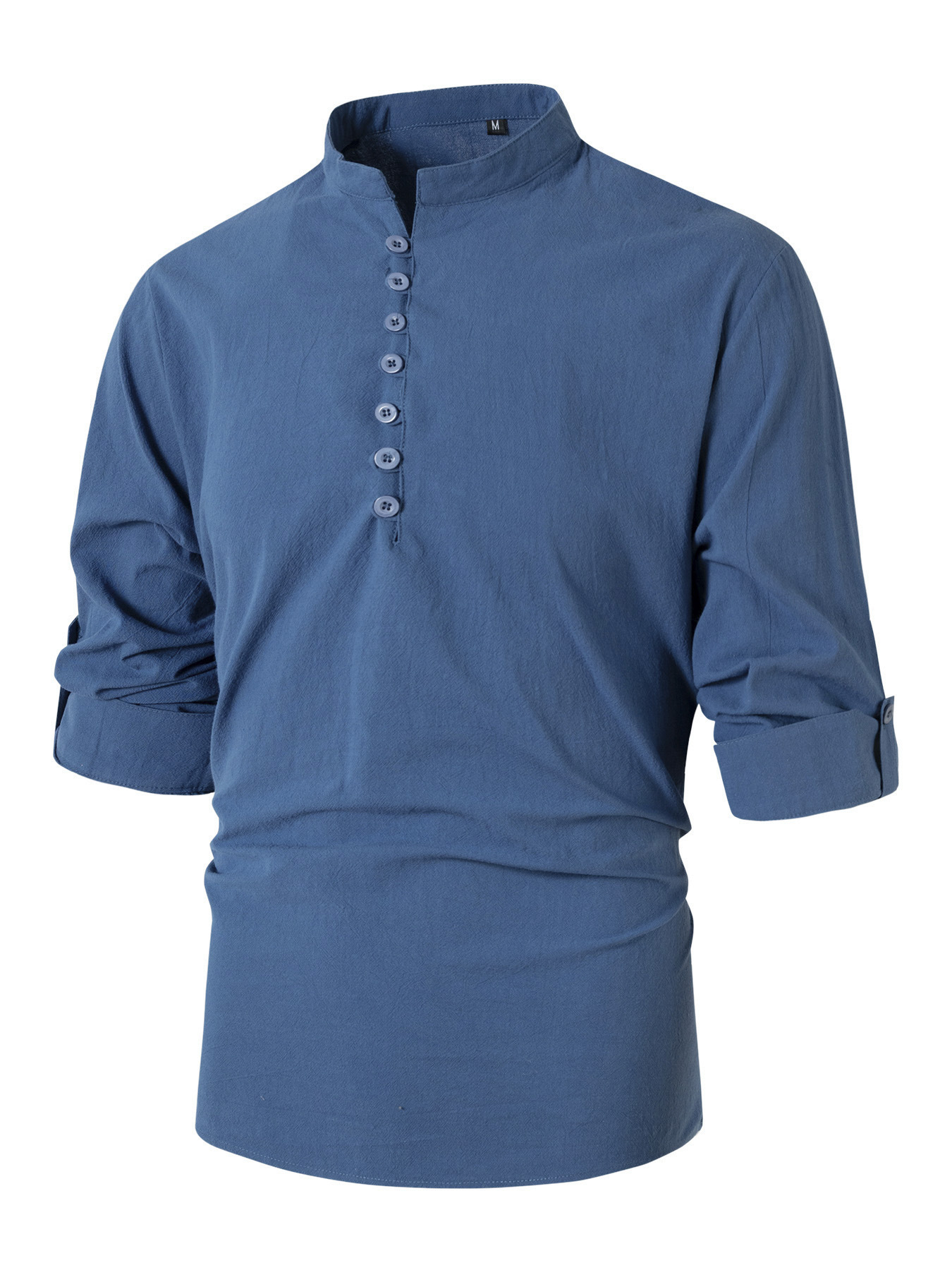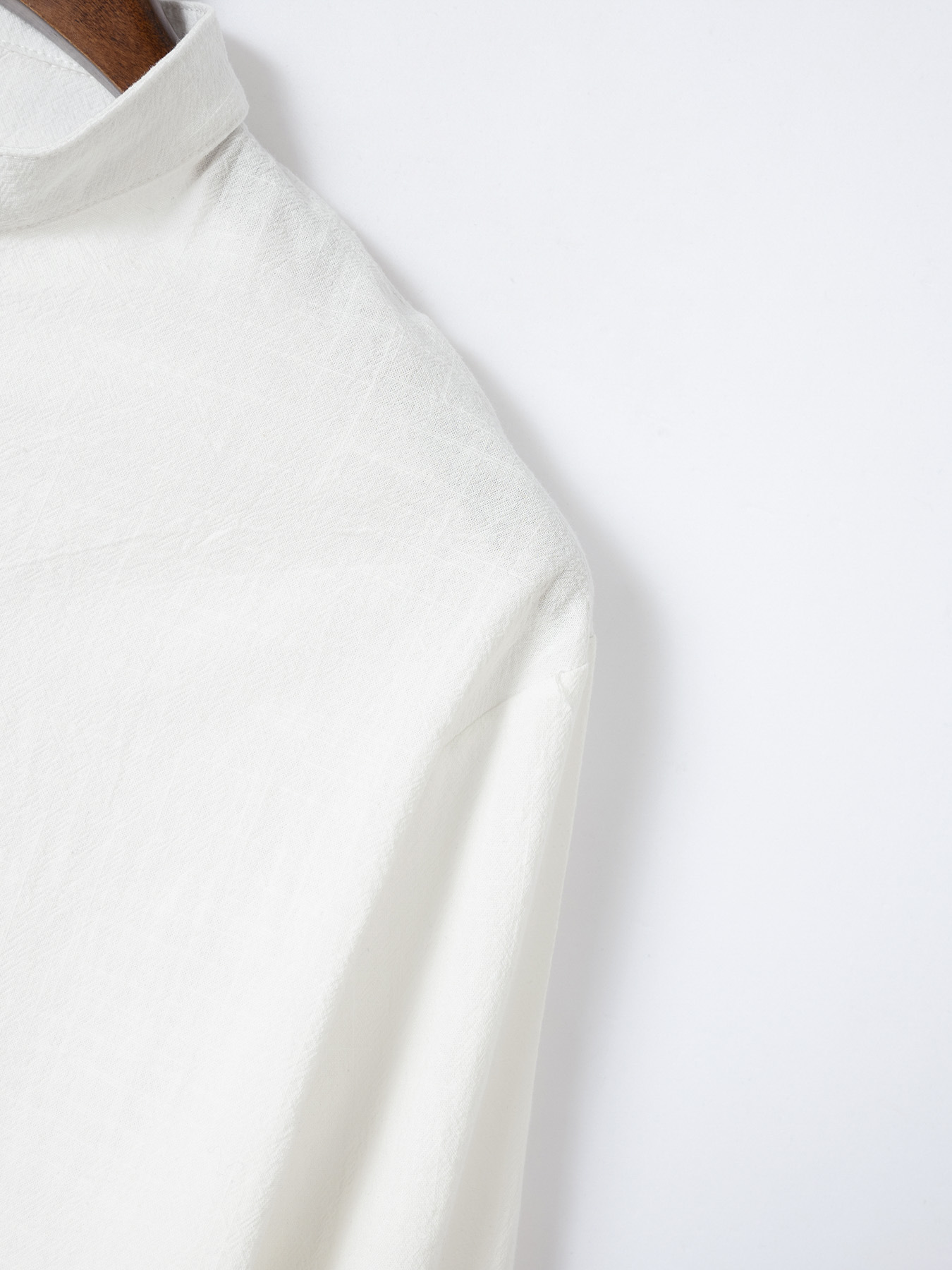 2024 국경 간 새로운 패션 복고풍 남성 봄과 가을면 및 린넨 스탠드 칼라 비즈니스 슬림 캐주얼 셔츠 긴팔 셔츠