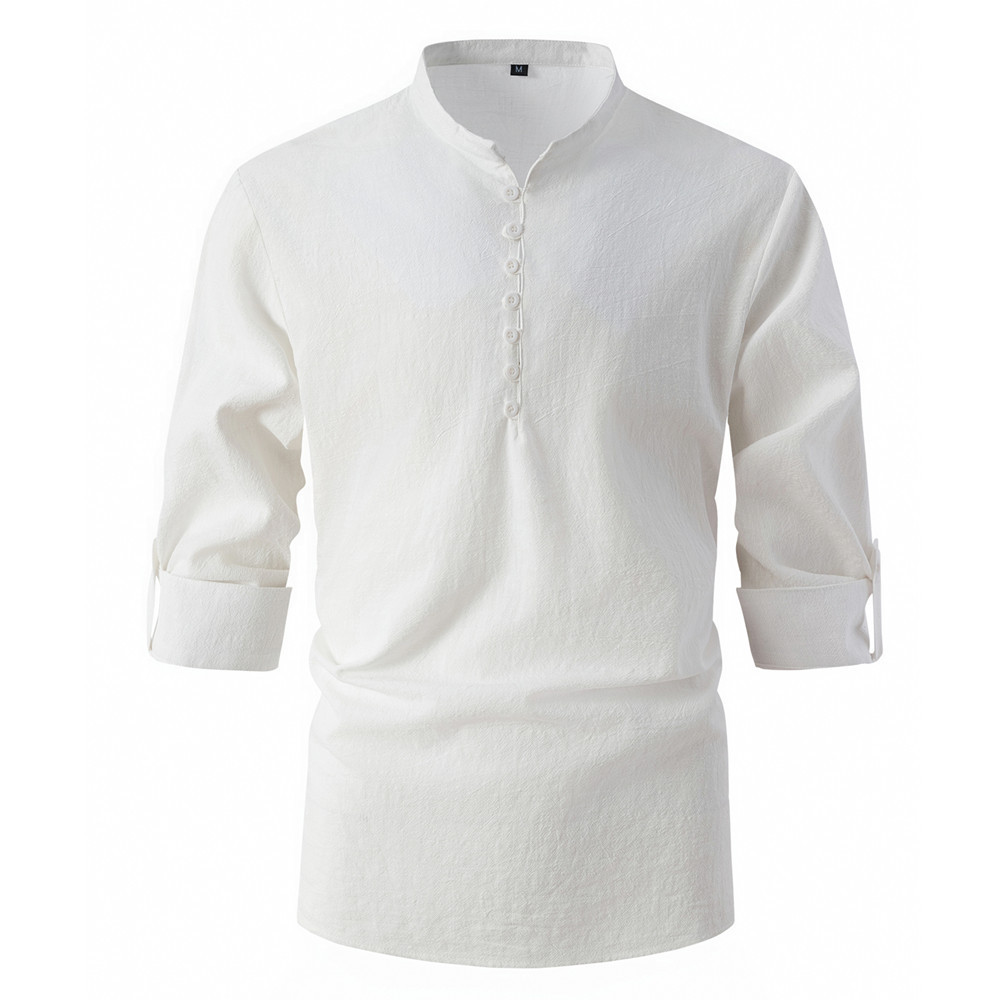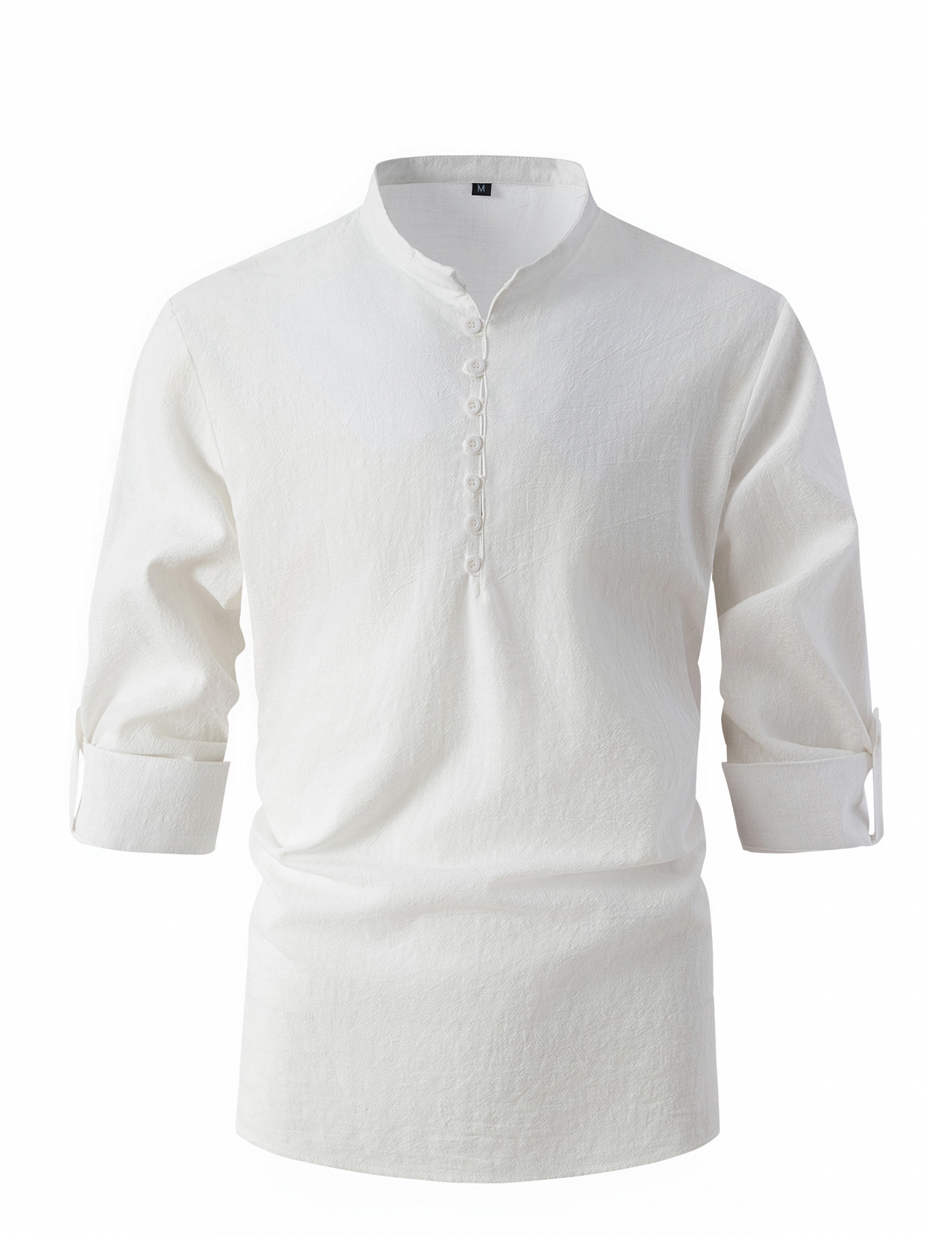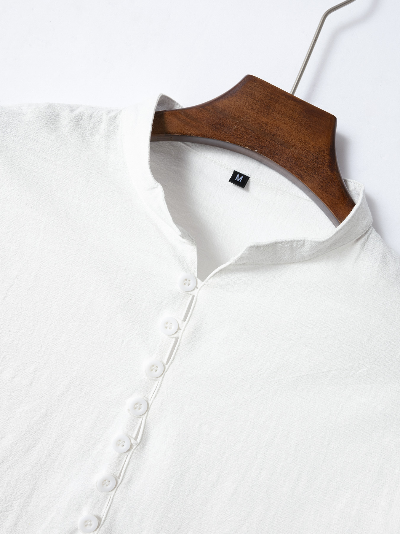 2024 국경 간 새로운 패션 복고풍 남성 봄과 가을면 및 린넨 스탠드 칼라 비즈니스 슬림 캐주얼 셔츠 긴팔 셔츠
