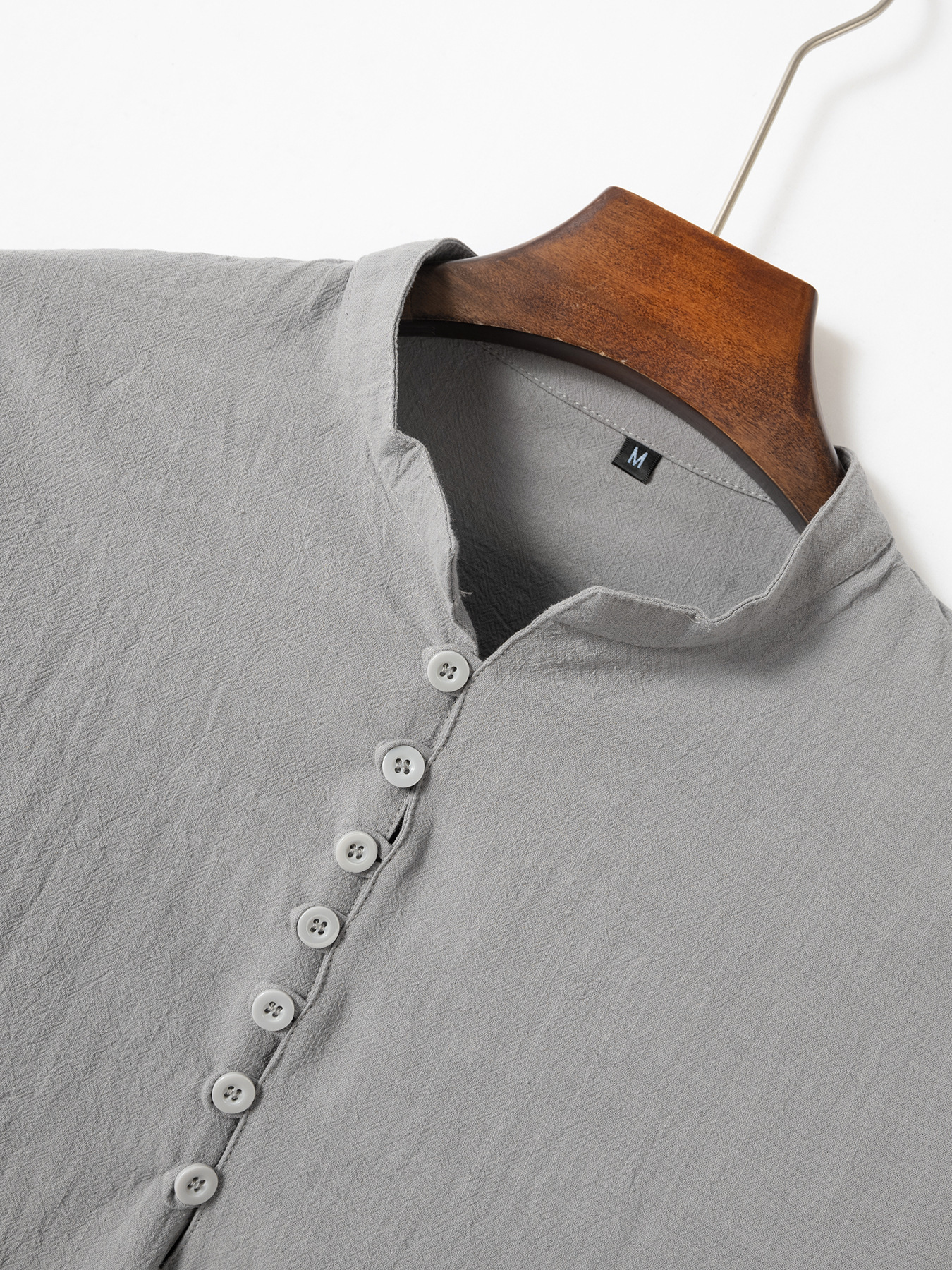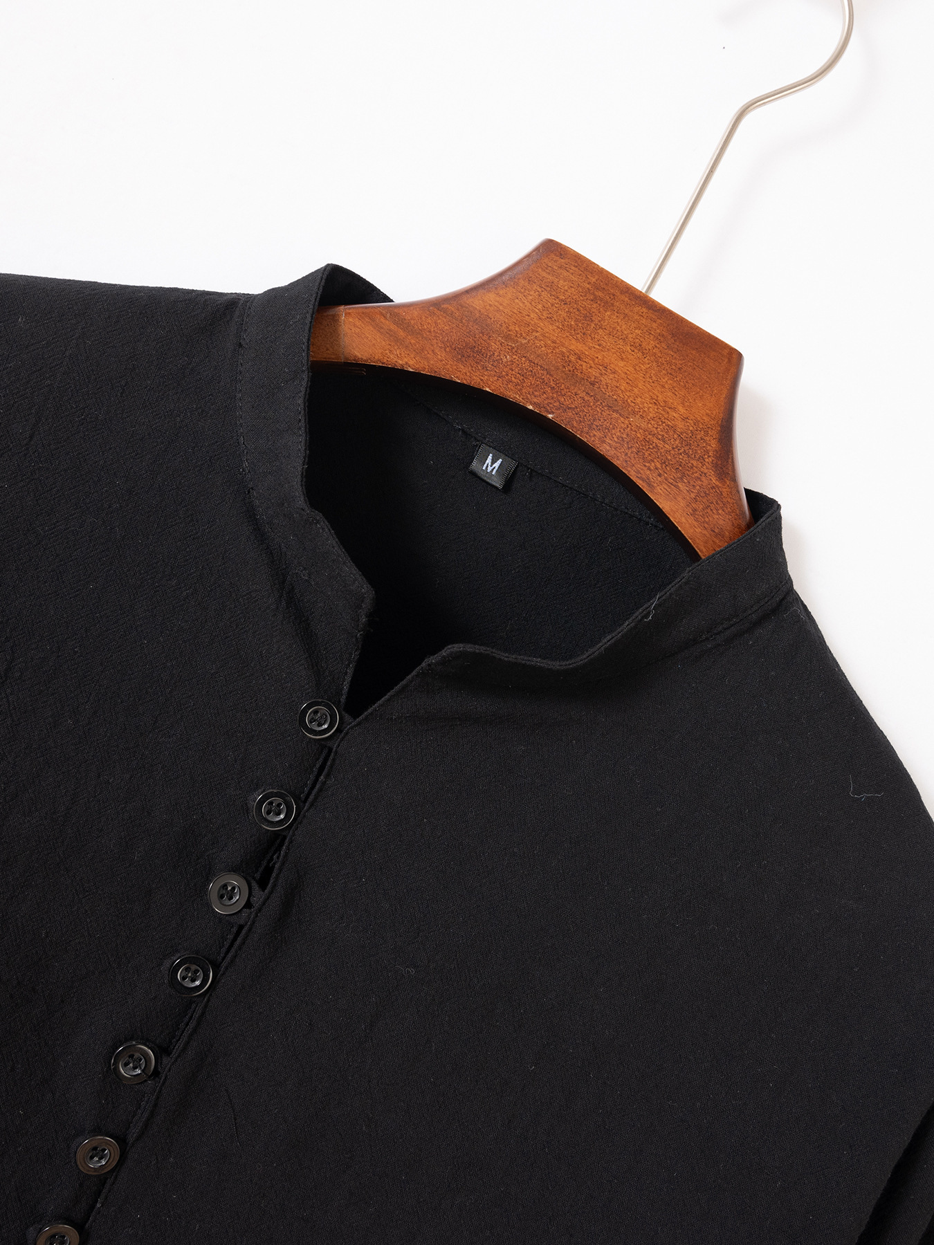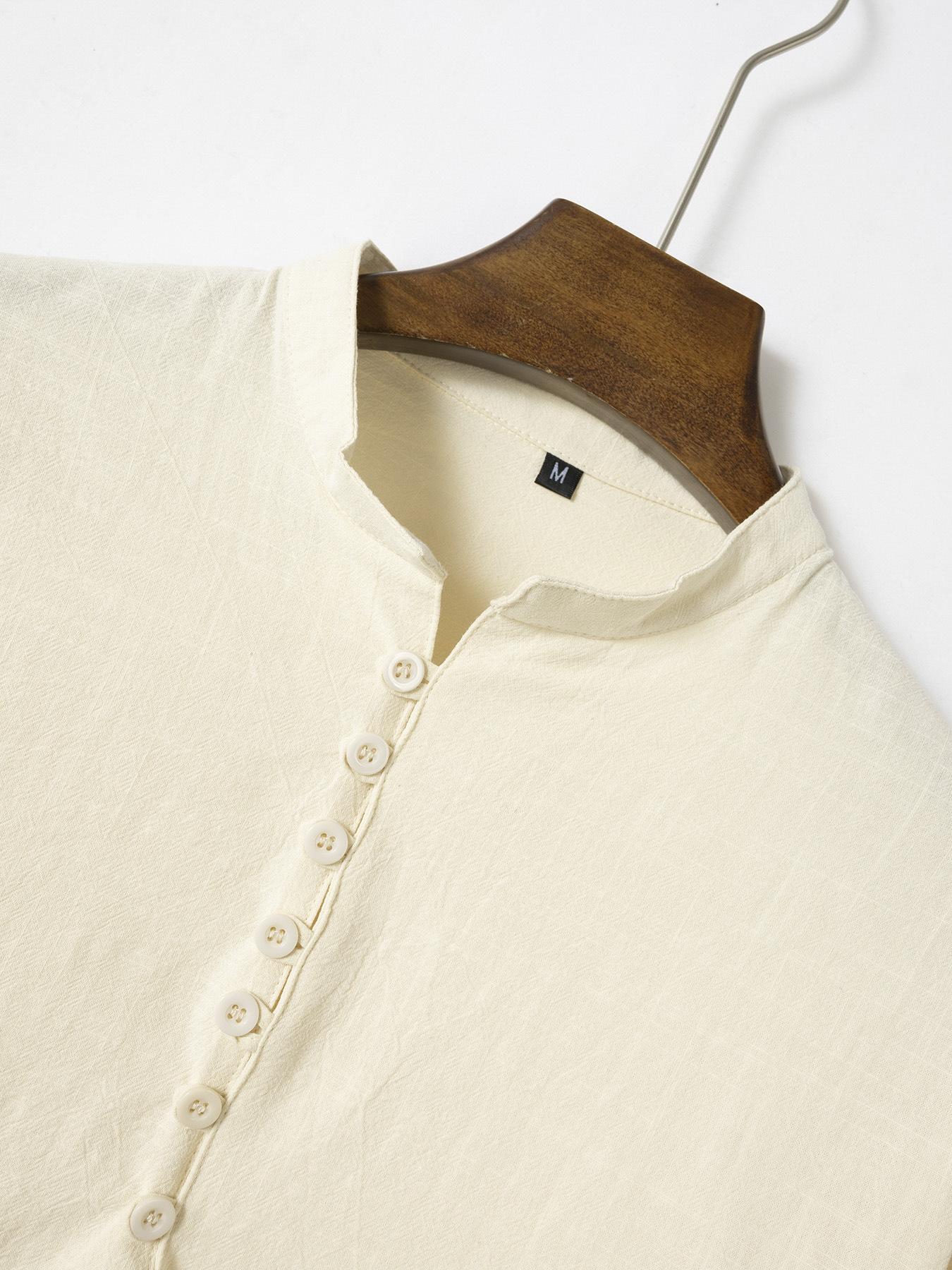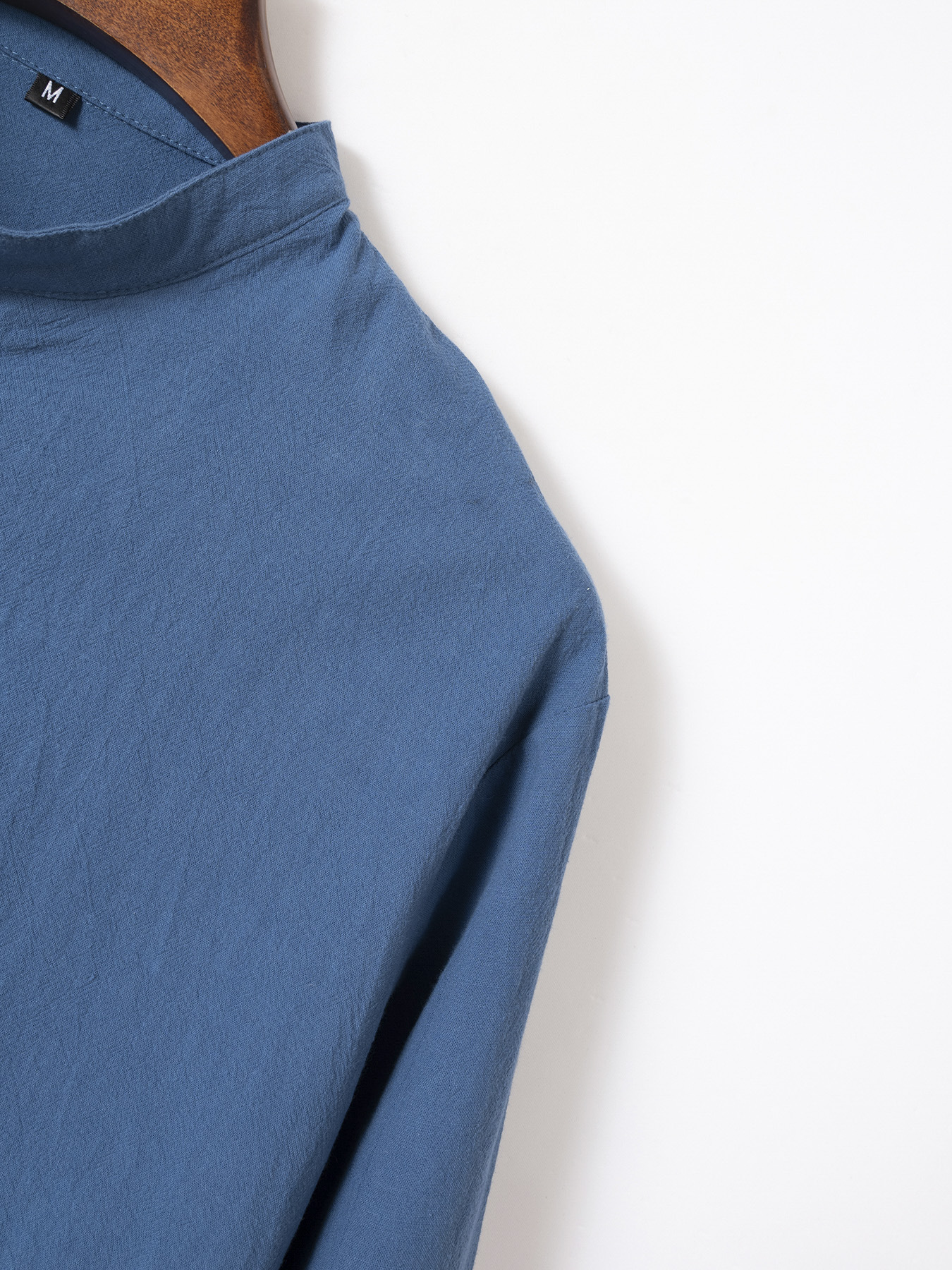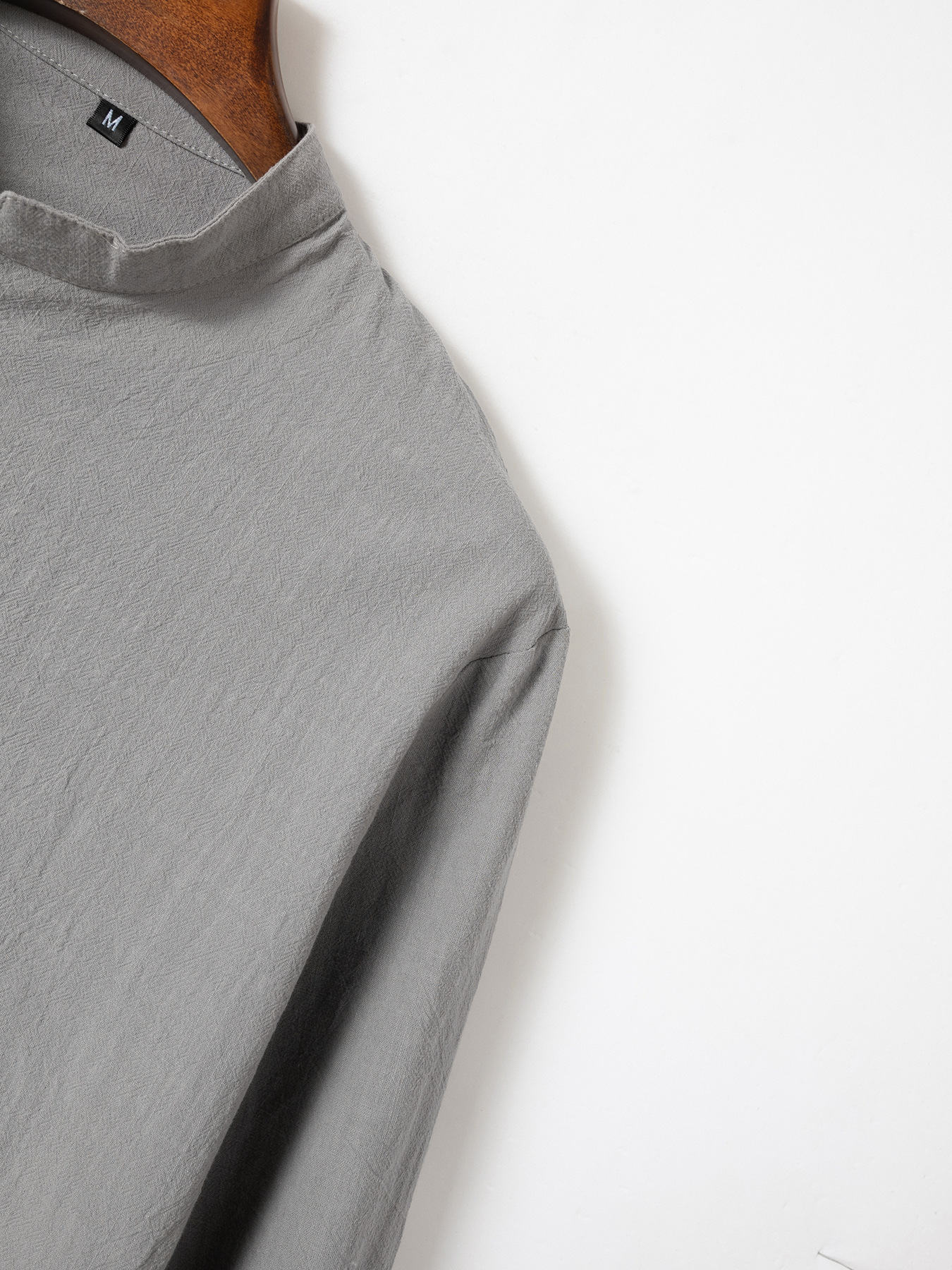 2024 국경 간 새로운 패션 복고풍 남성 봄과 가을면 및 린넨 스탠드 칼라 비즈니스 슬림 캐주얼 셔츠 긴팔 셔츠스토어 가기
