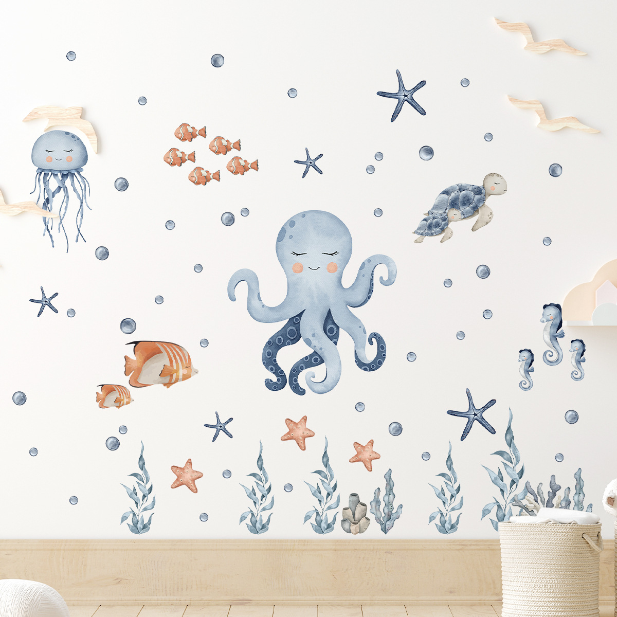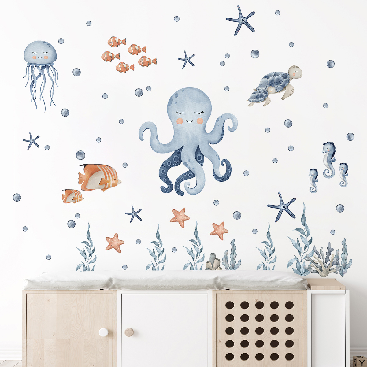 만화 귀여운 바다 세계 풍경 자체 접착 벽 스티커 어린이 방 유치원 장식 스티커 BR93921