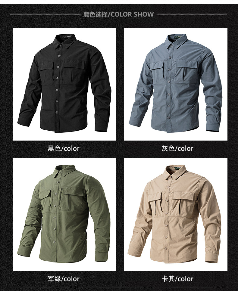 야외 긴팔 셔츠 높은 탄성 얼음 감응 방지 DDoS 최고 남성 캐주얼 하이 엔드 방수 퀵 건조 셔츠 작업복 탑