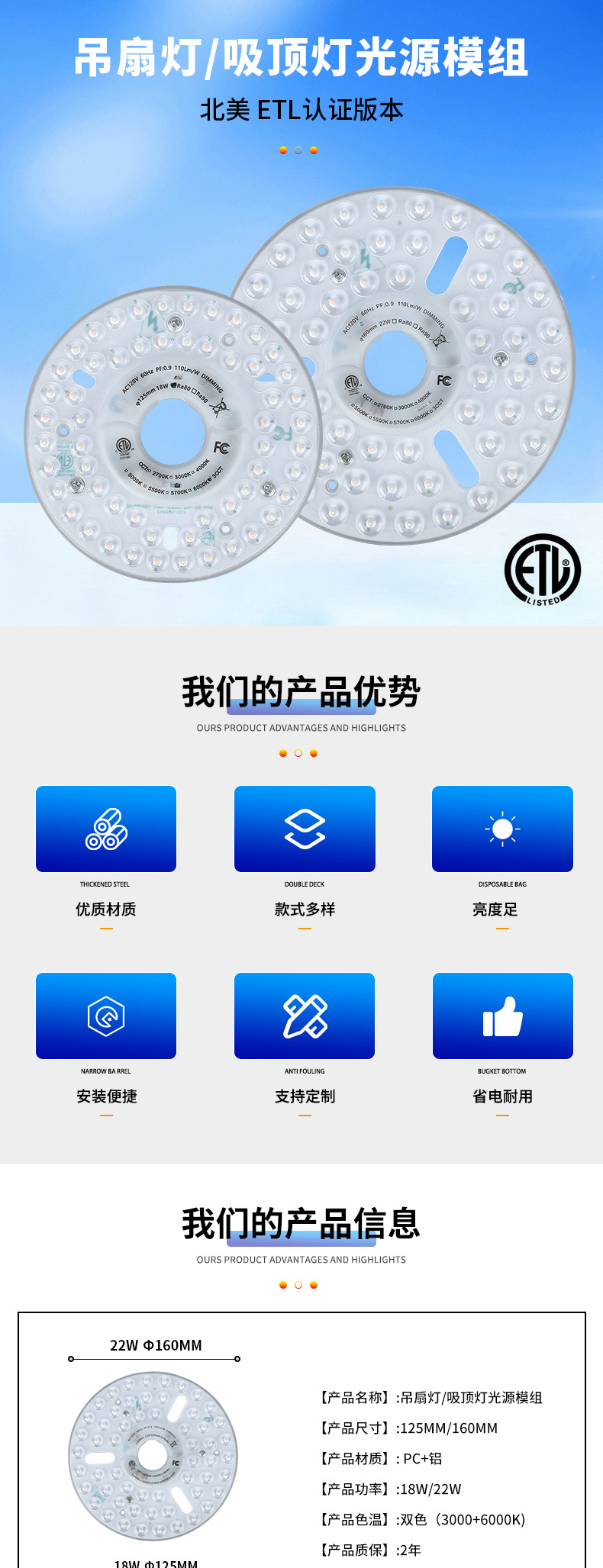 가정용 팬 램프 천장 램프 광원 모듈 led 천장 램프 심지 사각형 원형 변환 램프 패널 모듈