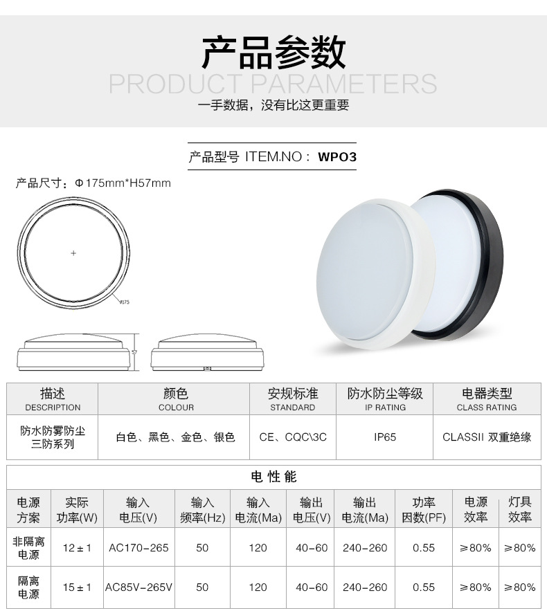 LED 방습, 방진, 모기 방지 천장 조명, 실외 벽 조명, 욕실 소스 제조업체, 원형 3방향 조명, 방습 조명