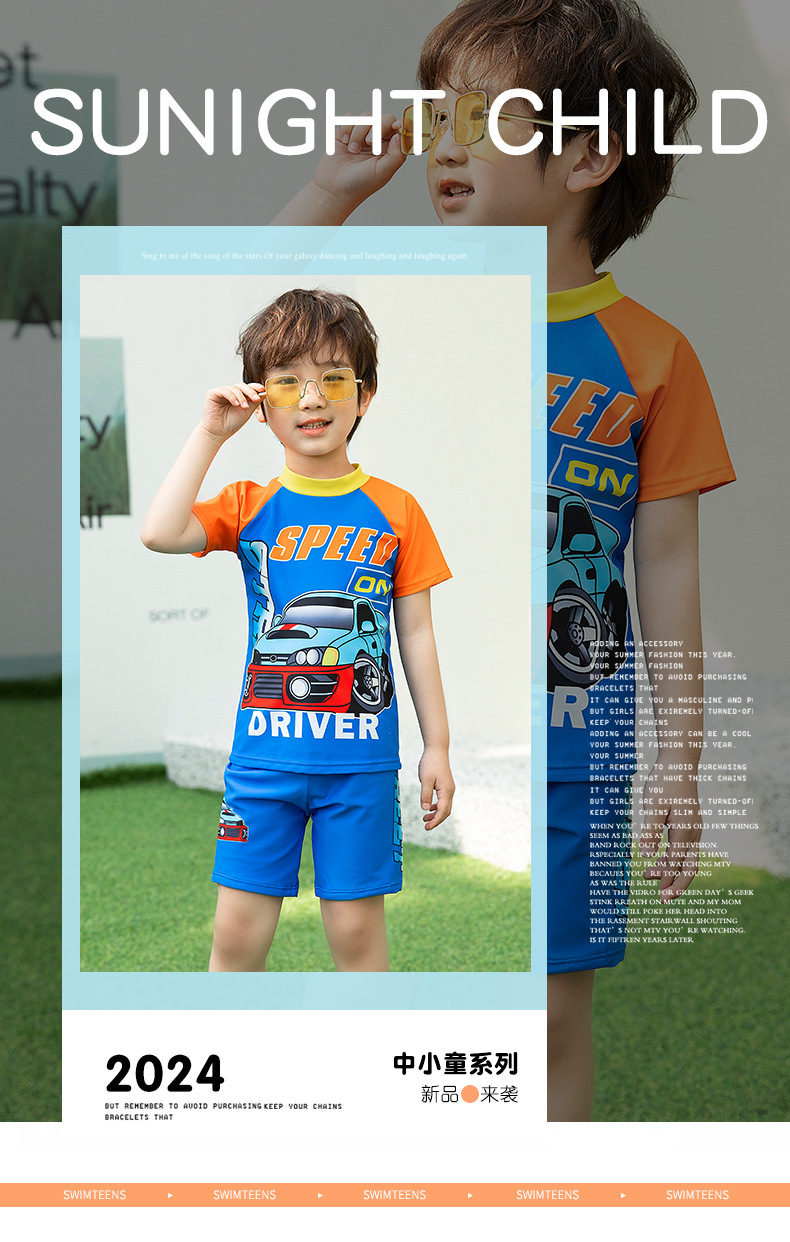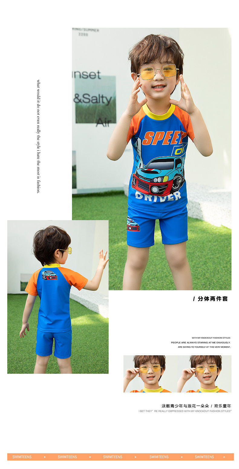 만화 아기 어린이 수영복 분할 반소매 권투 선수 아이들의 빠른 건조 태양 보호 소년 수영복 아마존