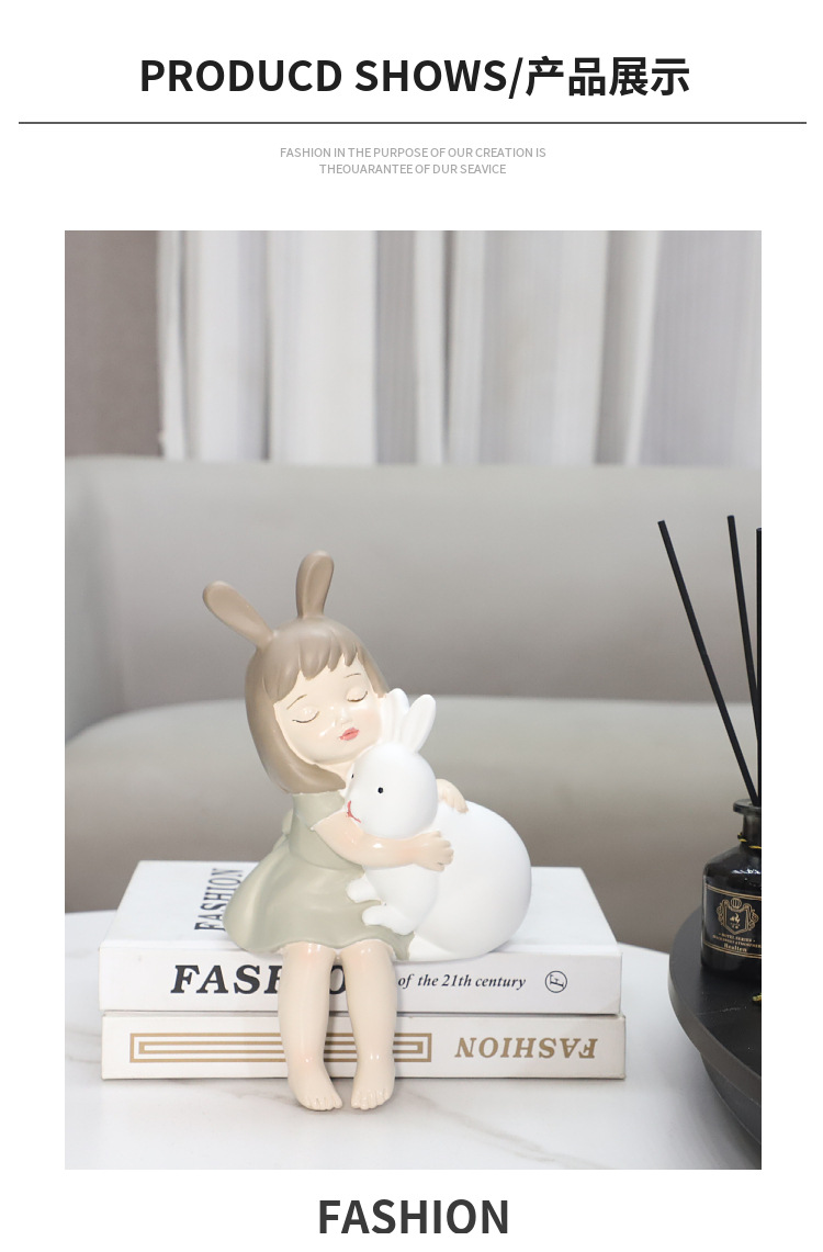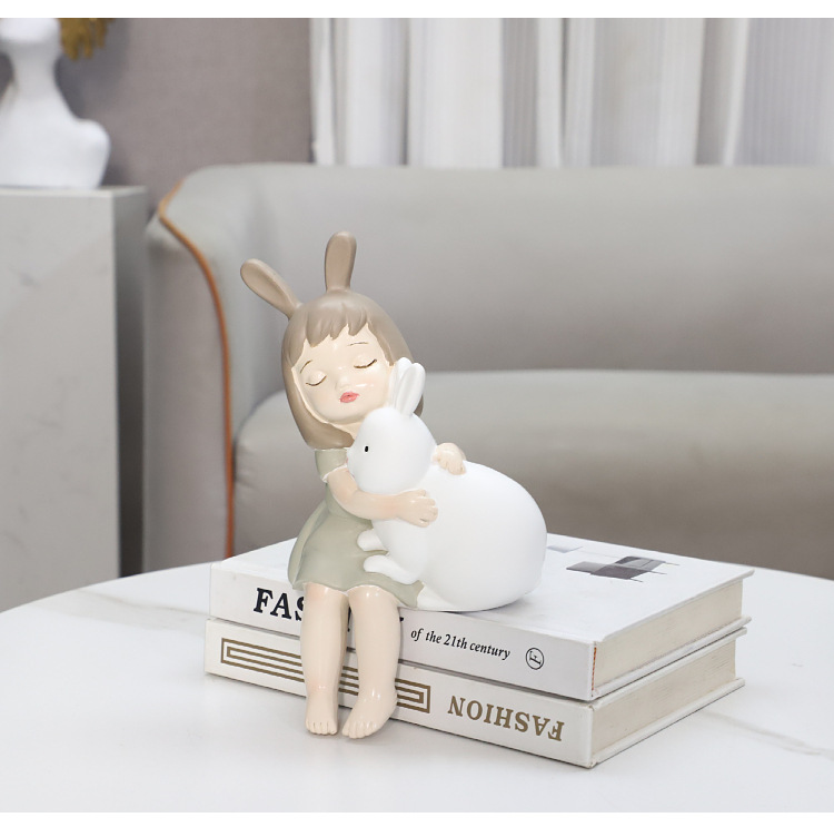 현대 간단한 만화 귀여운 토끼 어린 소녀 장식 거실 침실 어린이 방 책상 부드러운 장식 홈 장식