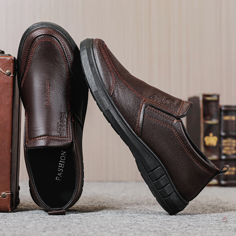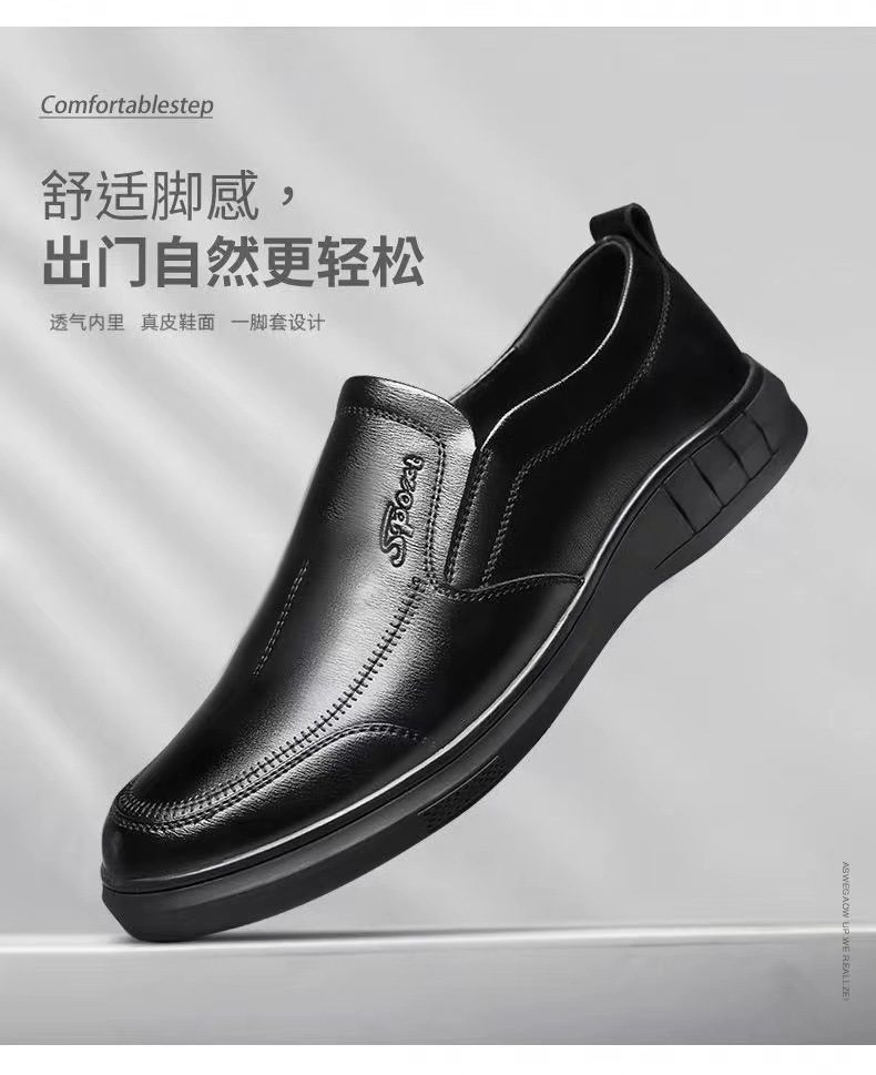 2024 새로운 재고 가죽 신발 남성용 울트라 핀 가죽 블랙 비즈니스 원피스 남성 캐주얼 신발 중년 및 노인 아빠 신발스토어 가기