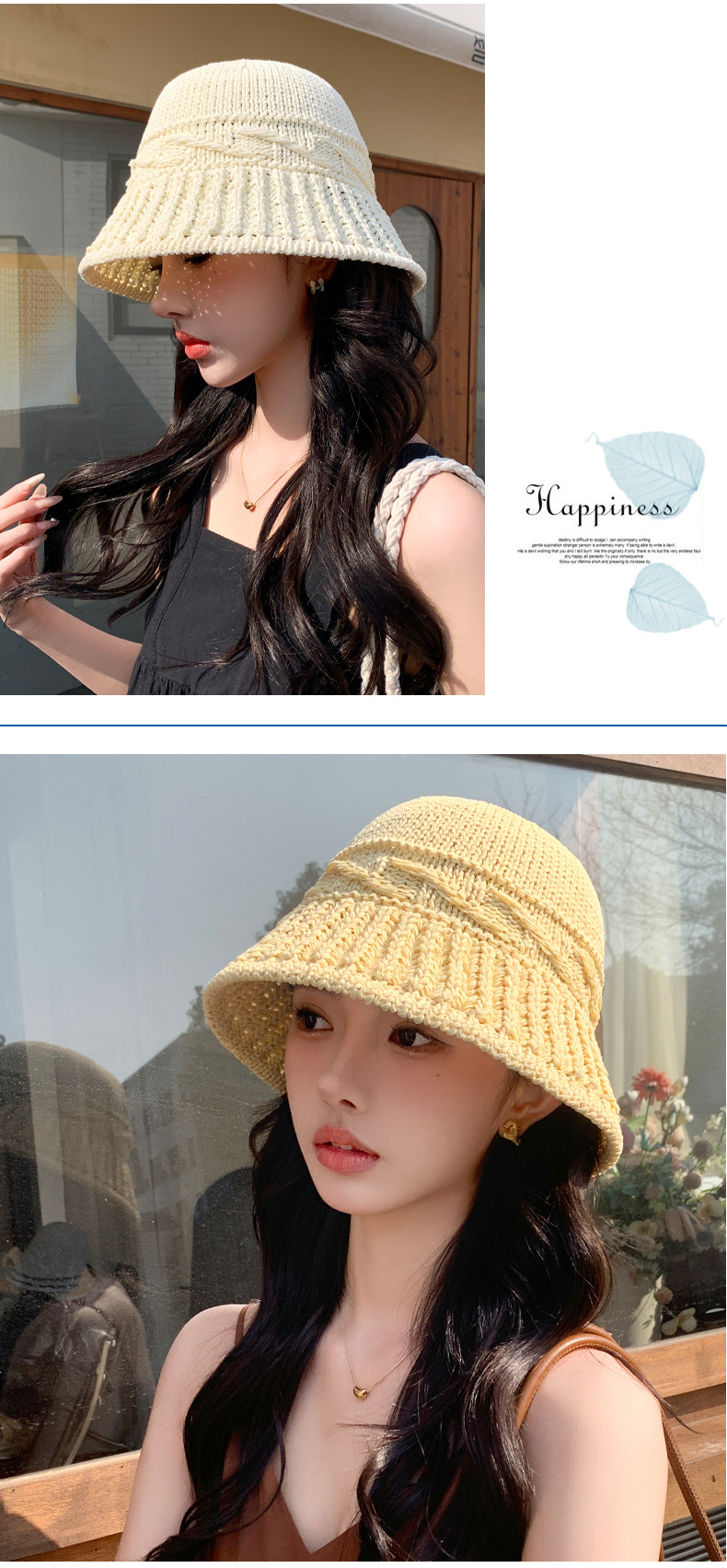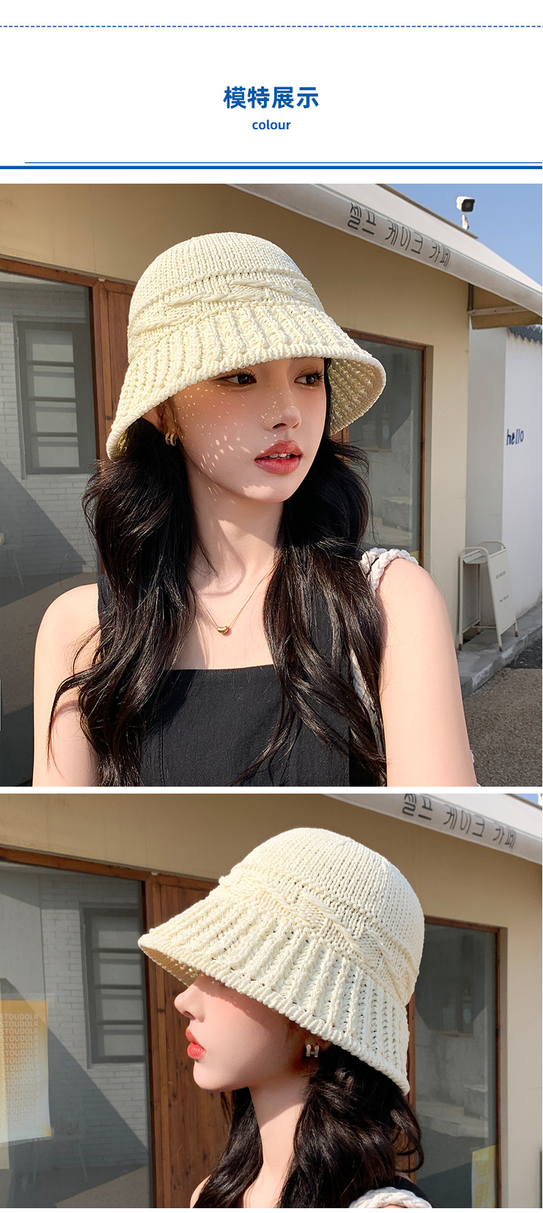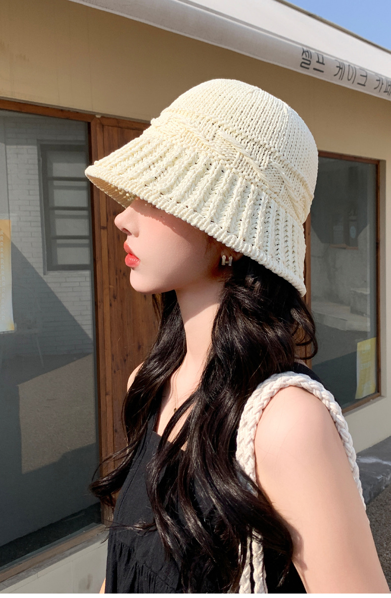 한국 스타일 봄과 가을 새로운 스타일 모자 작은 분지 모자 통기성 태양 보호 태양 모자 여름 태양 모자를 보여주는 여성 니트 올매치 얼굴스토어 가기