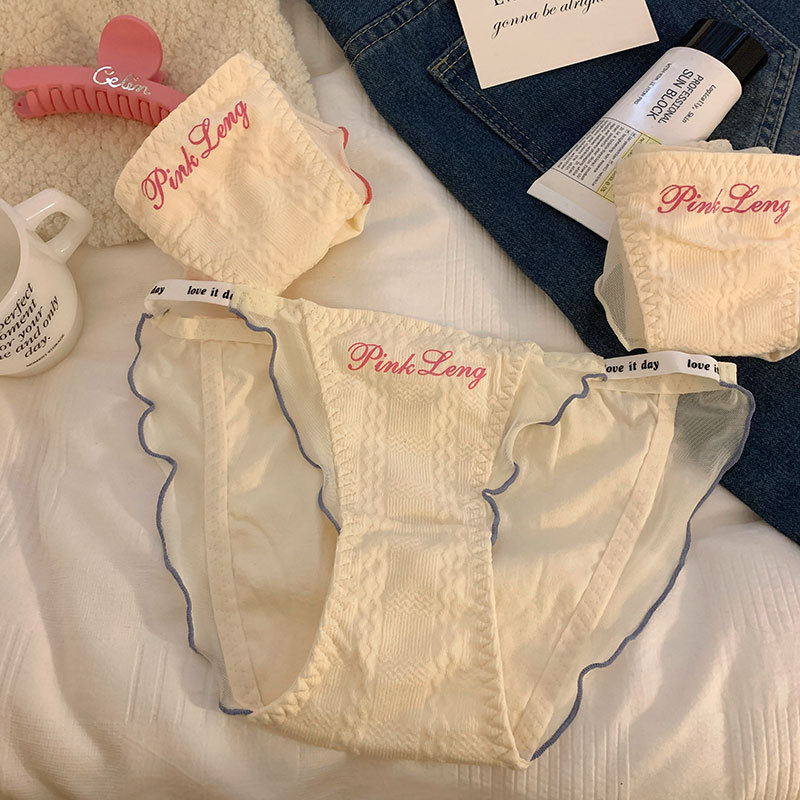 크림 목가적 인 스타일 트위스트 속옷 여성 여성을위한 낮은 허리 섹시한 통기성 통기성 속옷