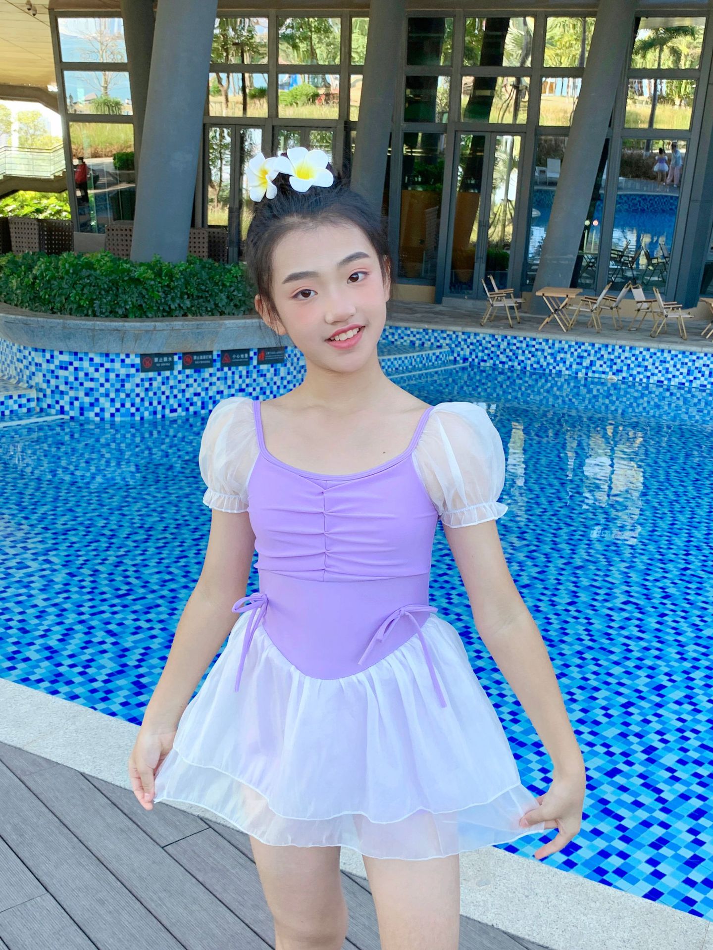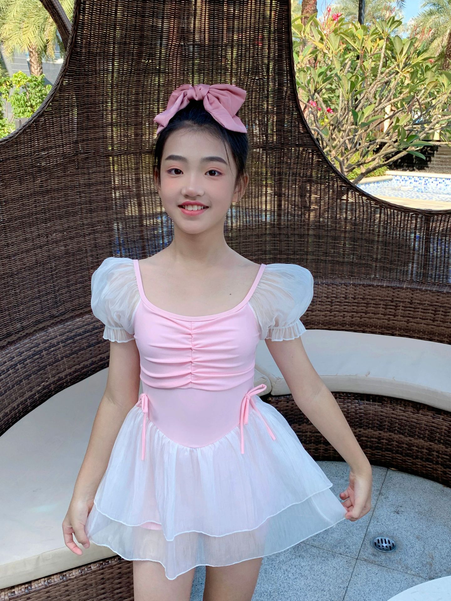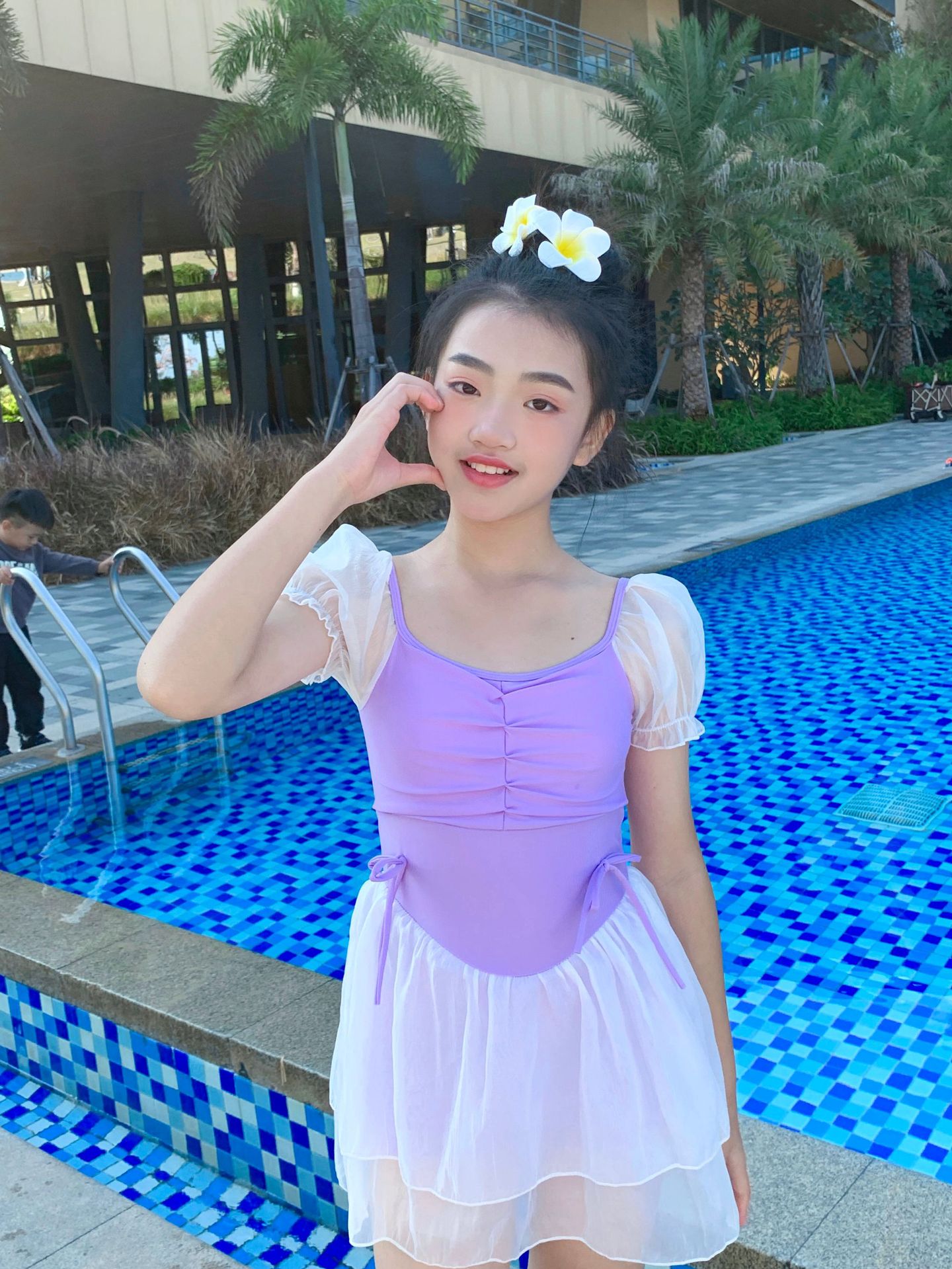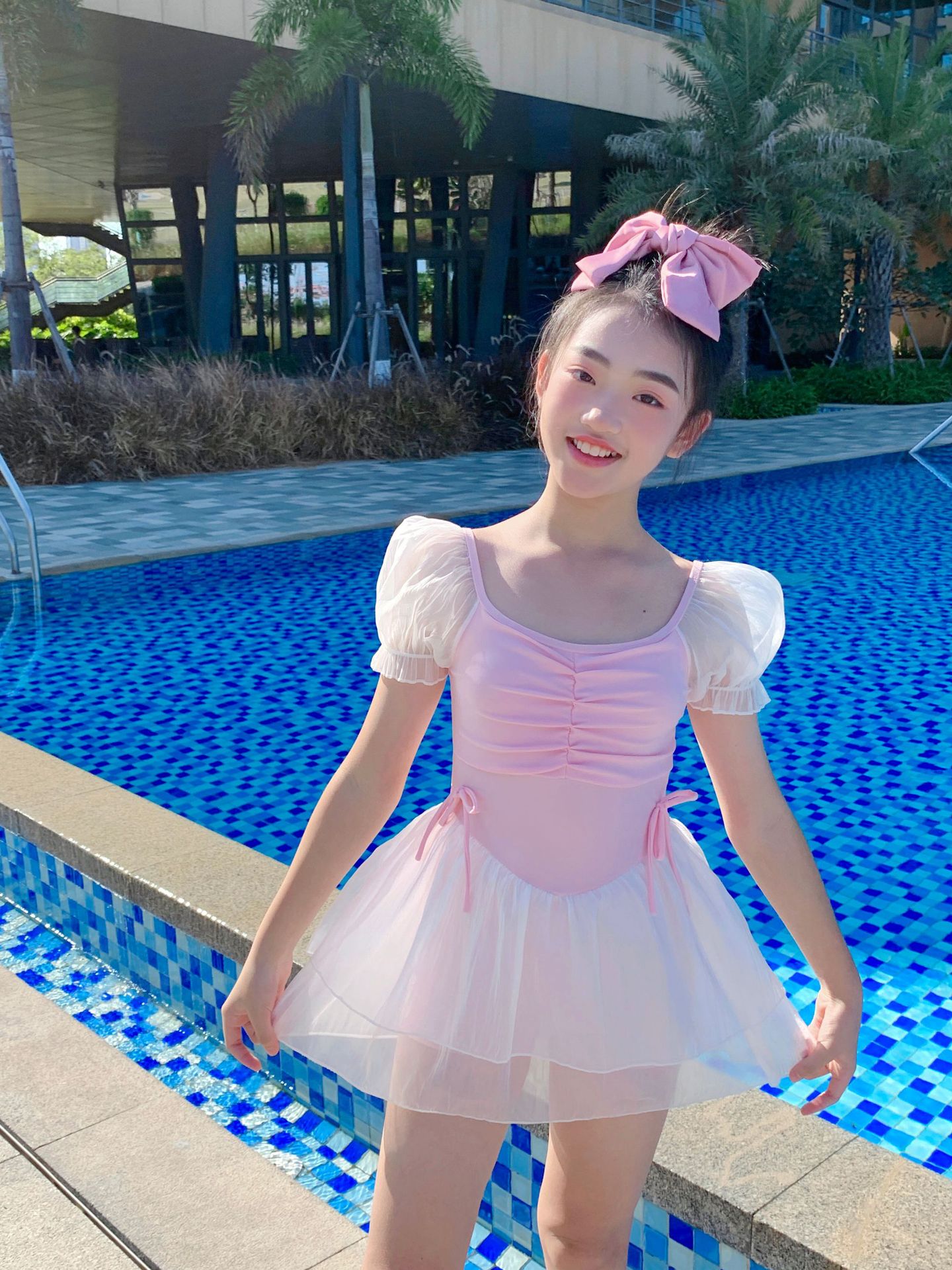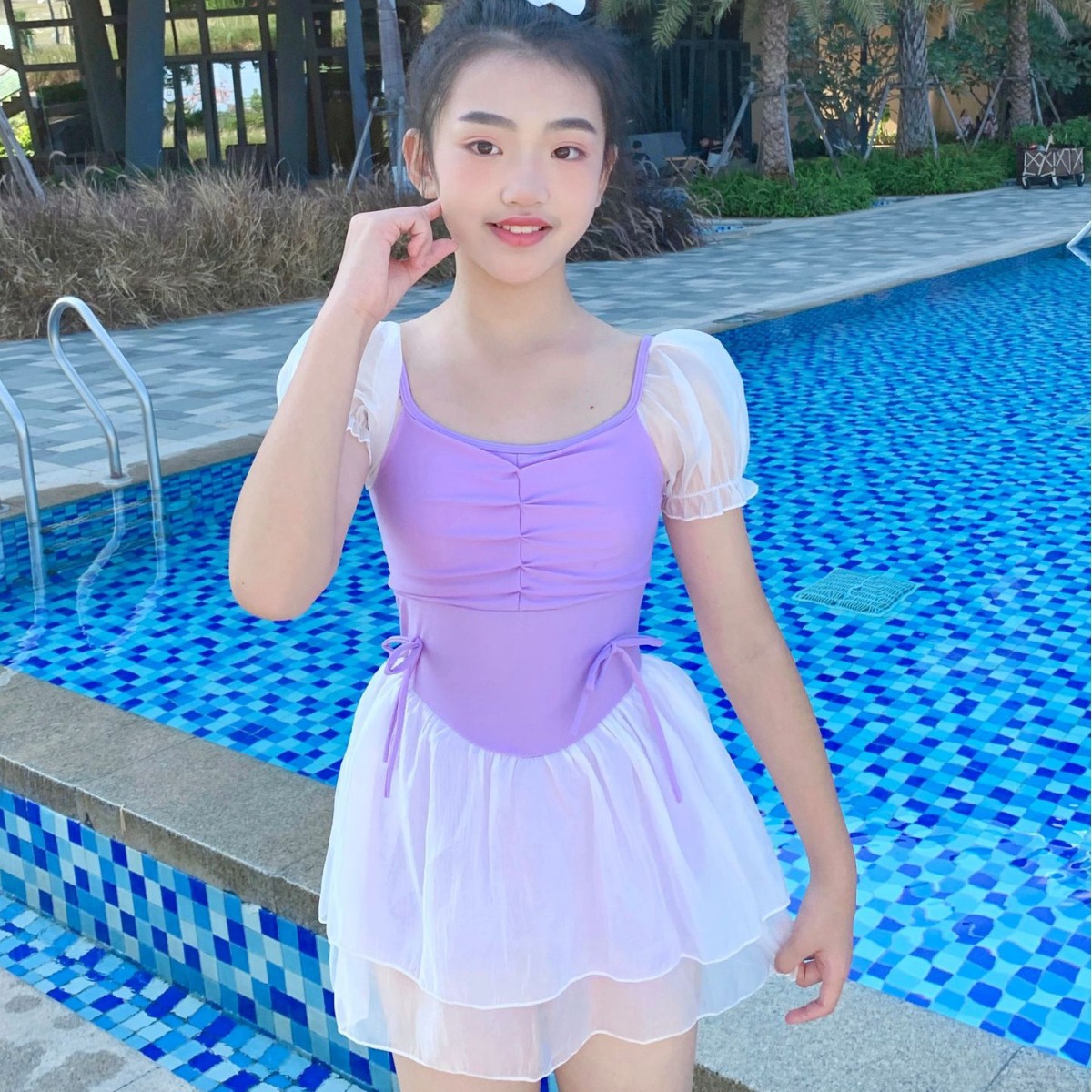 소녀 원피스 수영복 새로운 어린이 스커트 스타일 어린이 복서 노출 방지 소녀 워터 파크 수영복