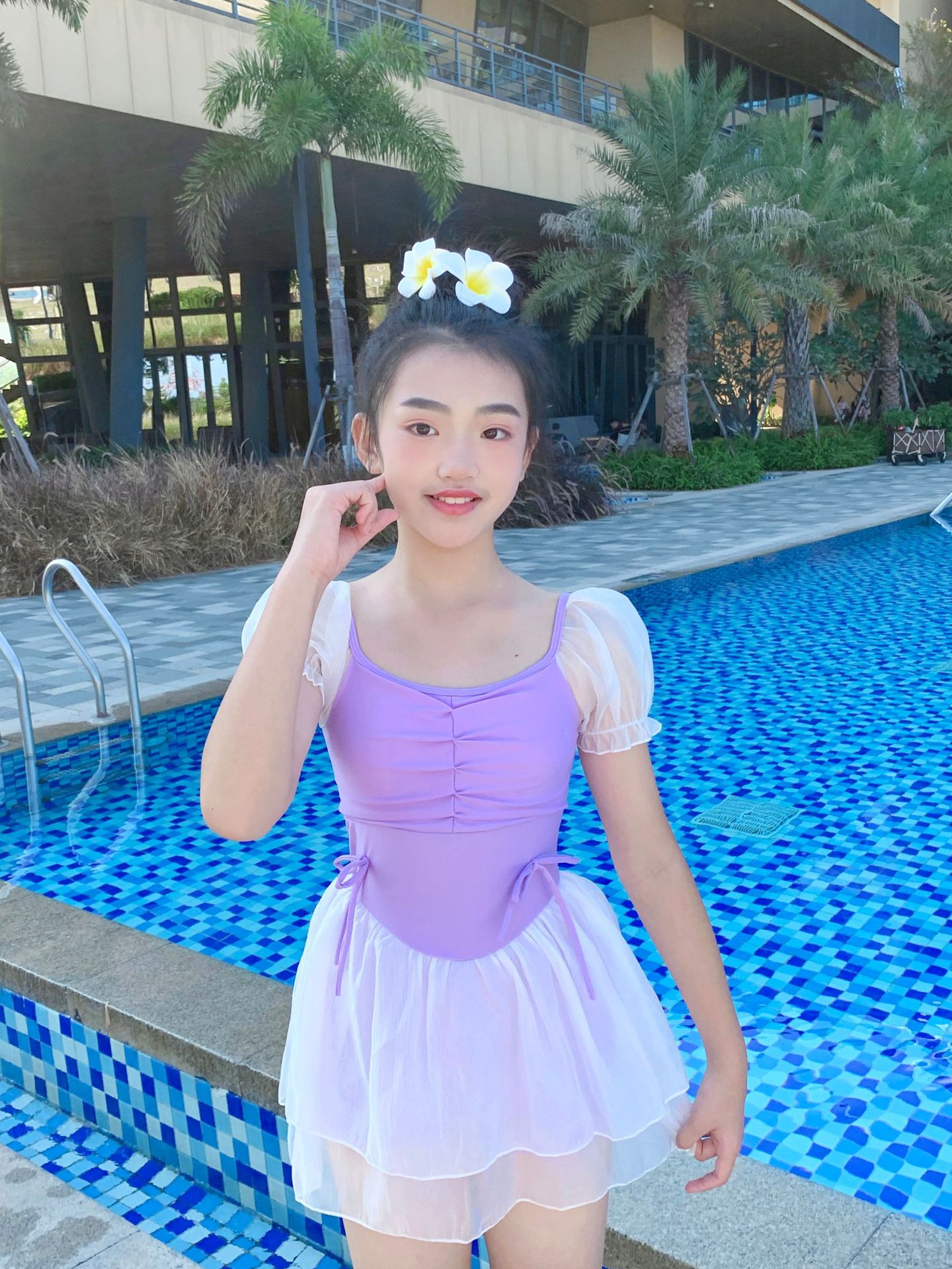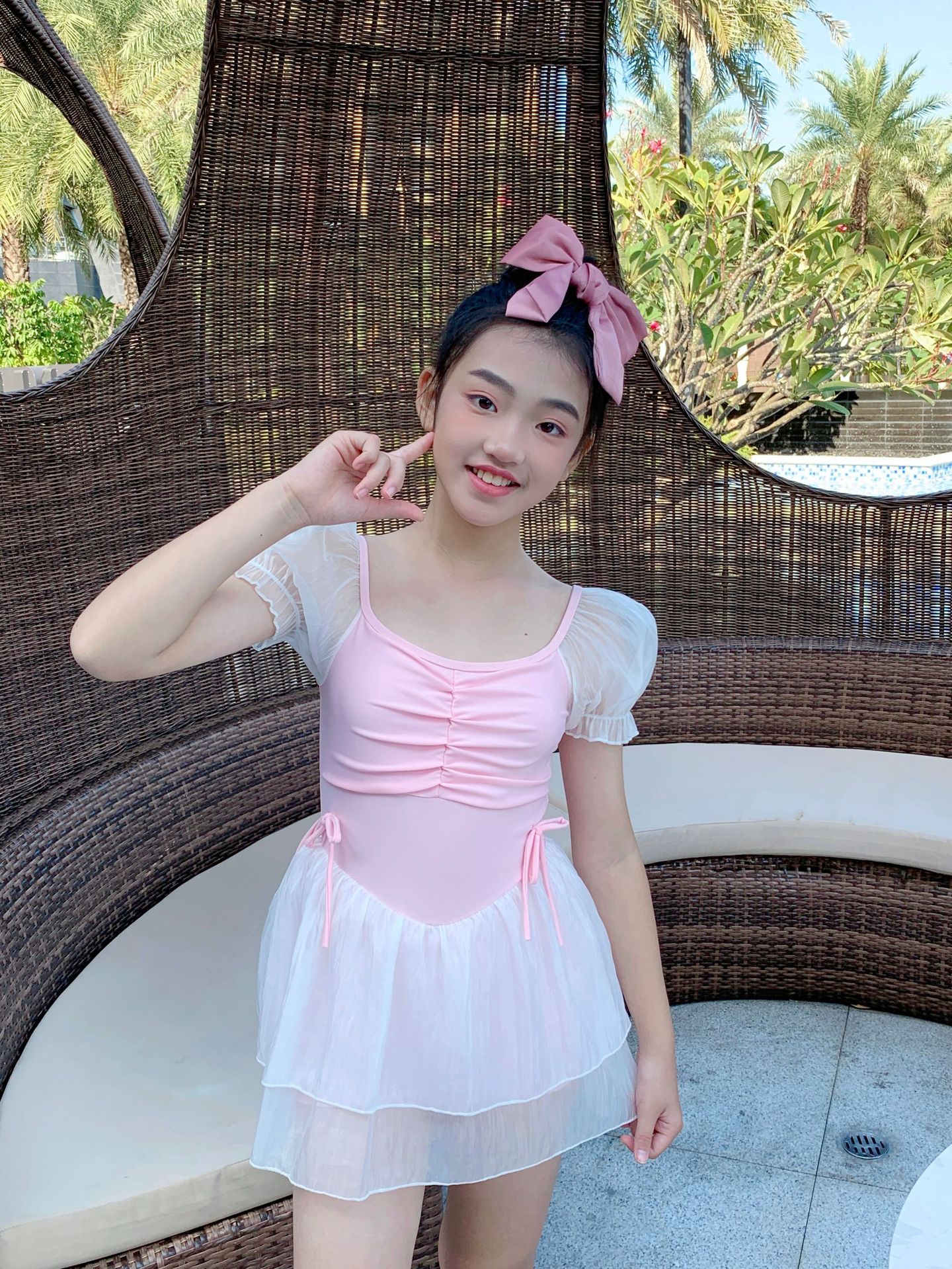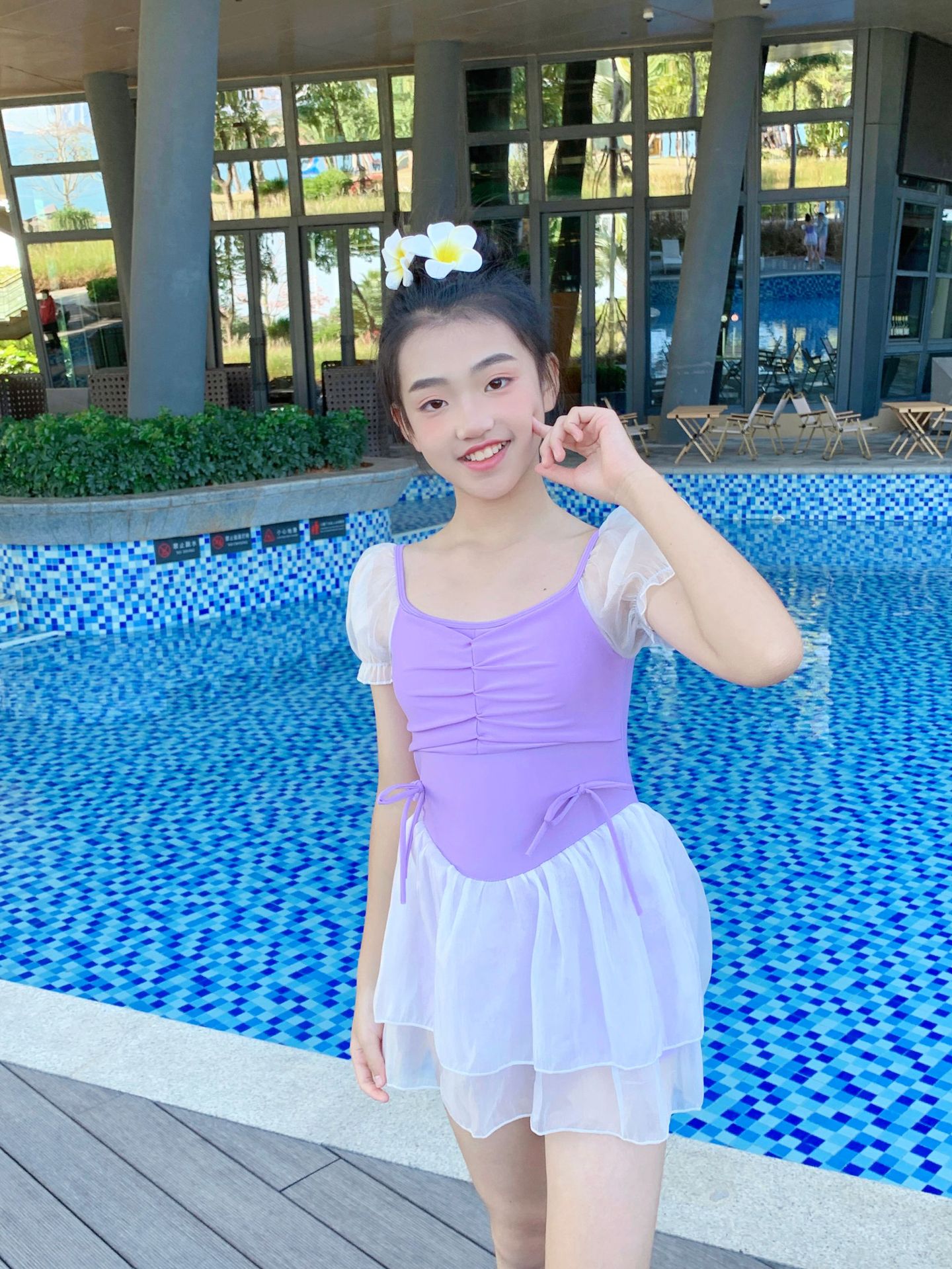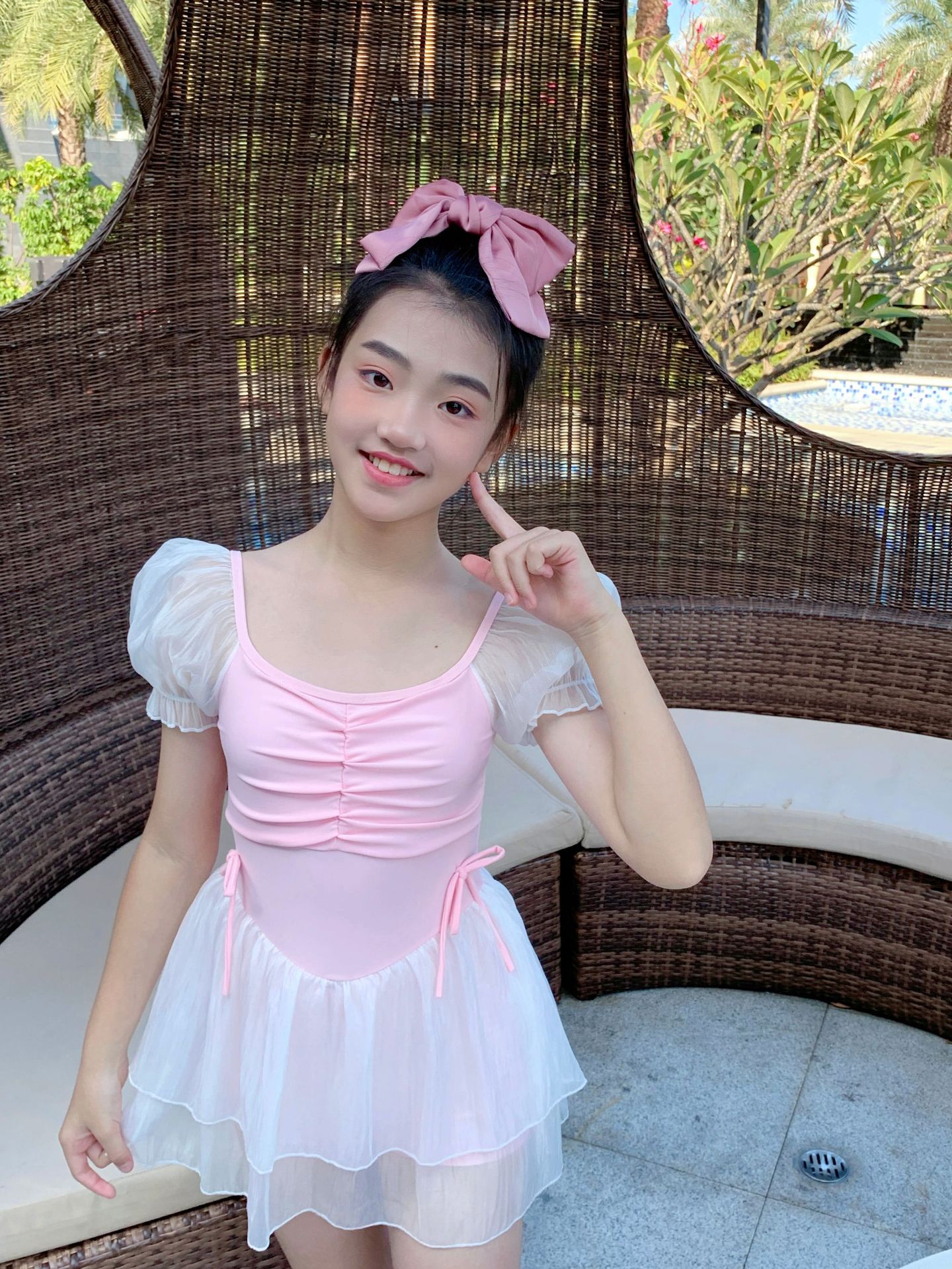 소녀 원피스 수영복 새로운 어린이 스커트 스타일 어린이 복서 노출 방지 소녀 워터 파크 수영복