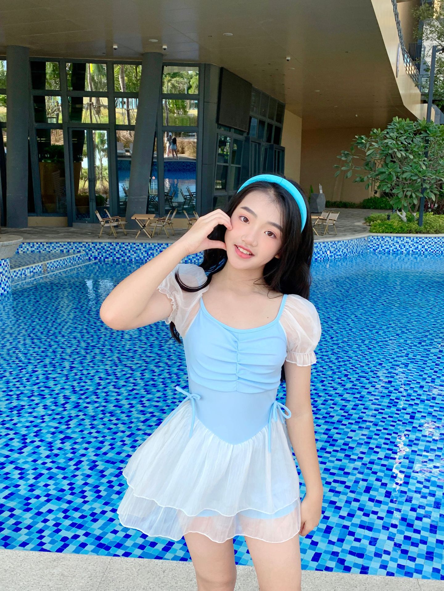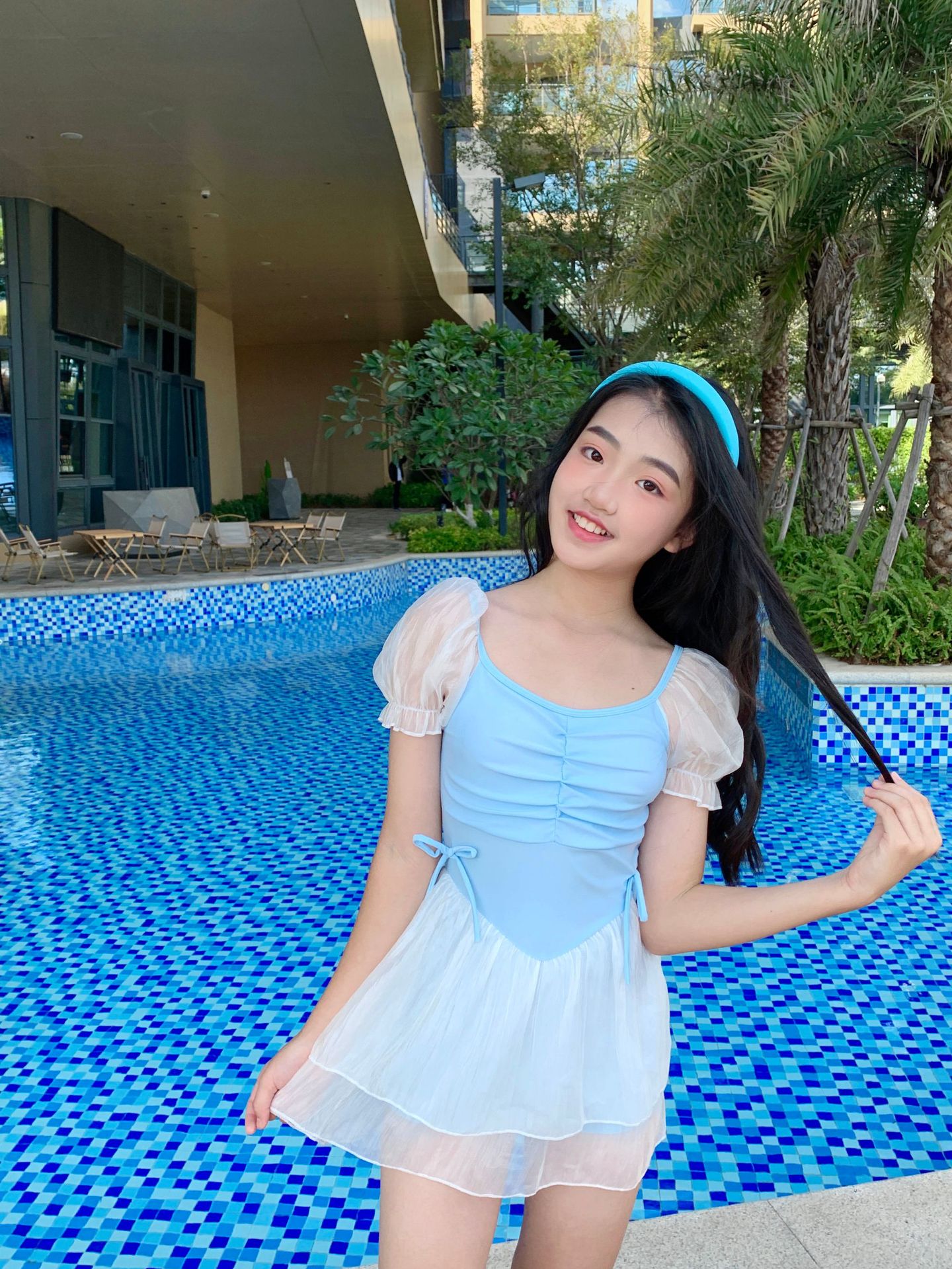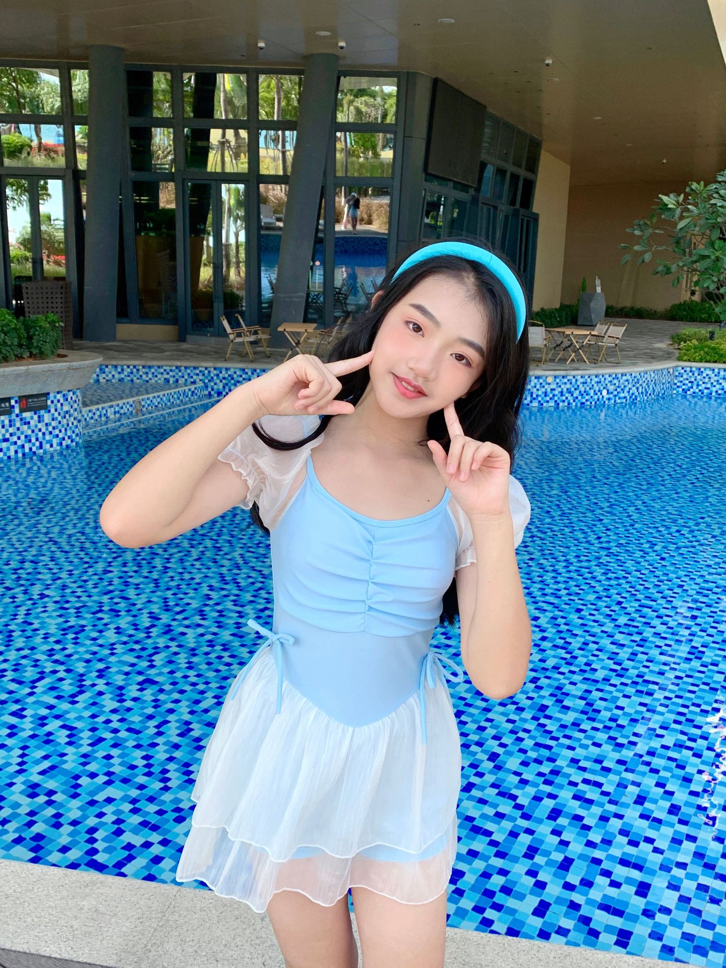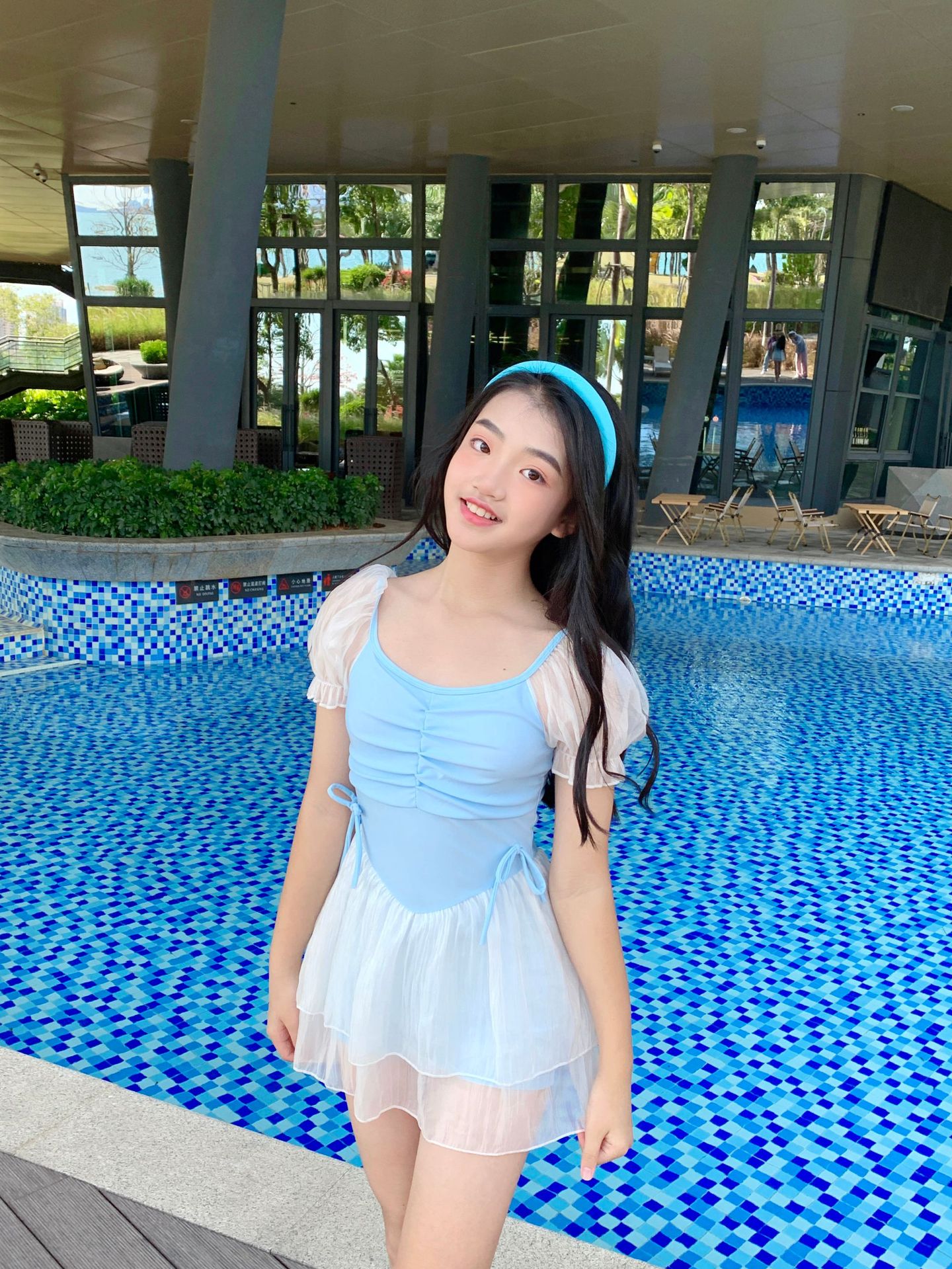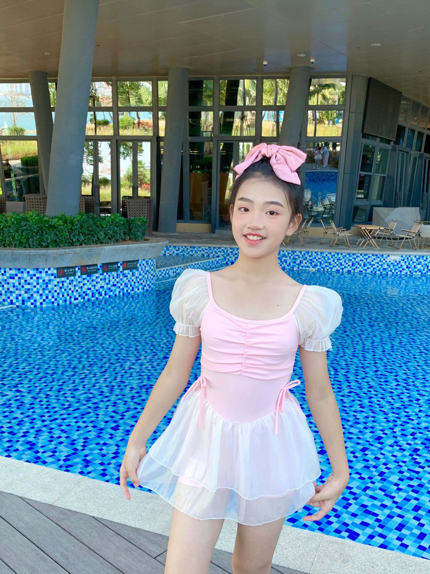 소녀 원피스 수영복 새로운 어린이 스커트 스타일 어린이 복서 노출 방지 소녀 워터 파크 수영복