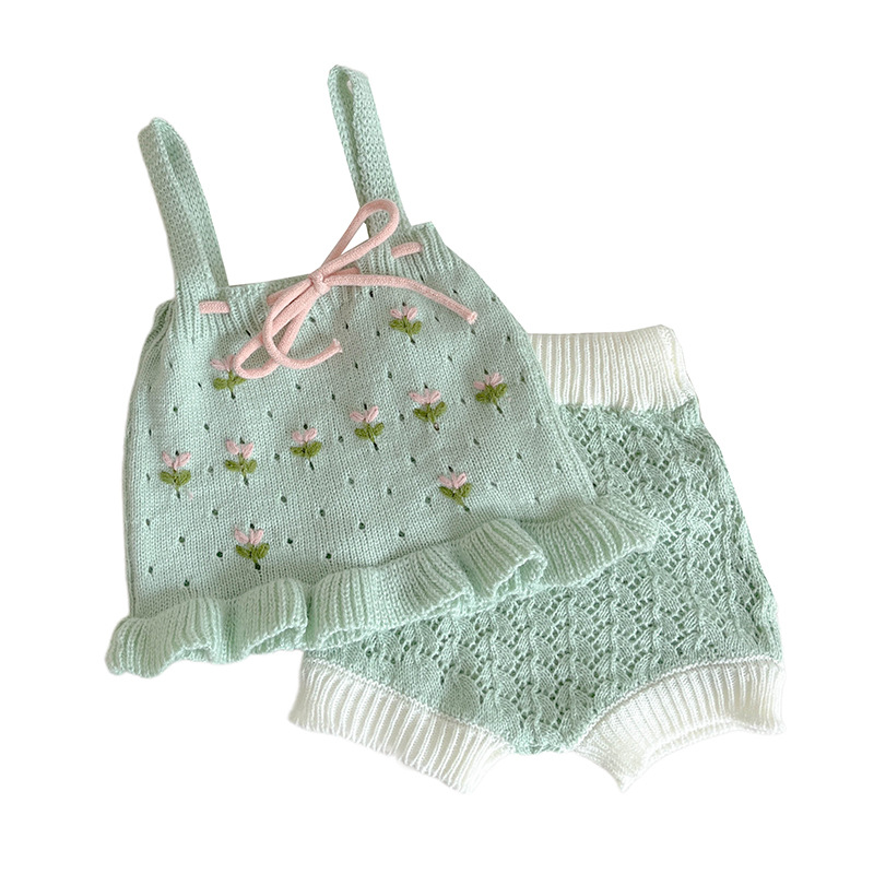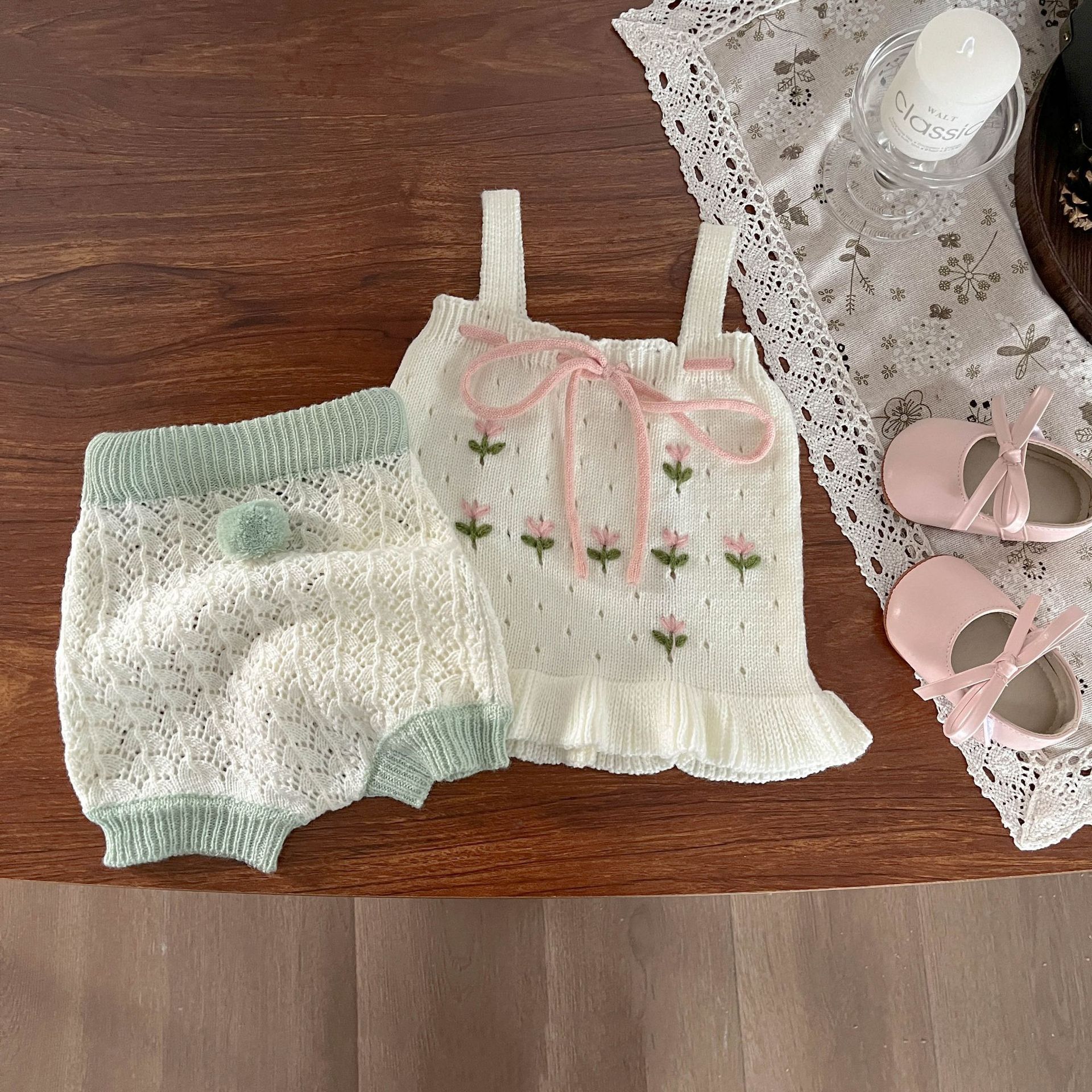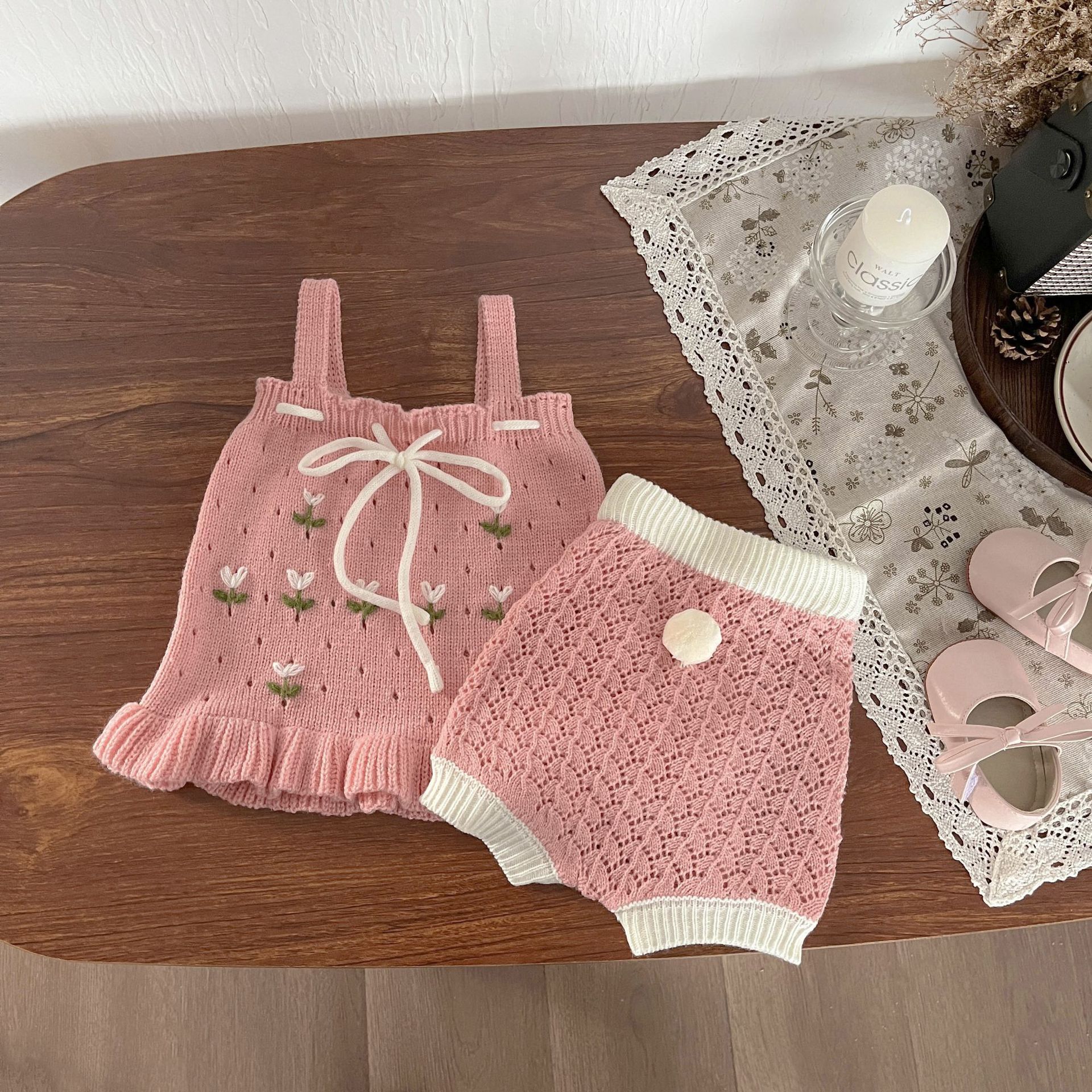 한국식 아동복 2024 새로운 봄 소녀 세트 어린이 뜨개질 니트 스웨터 3 피스 세트 의류 패션스토어 가기