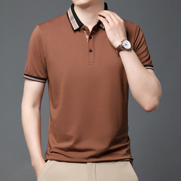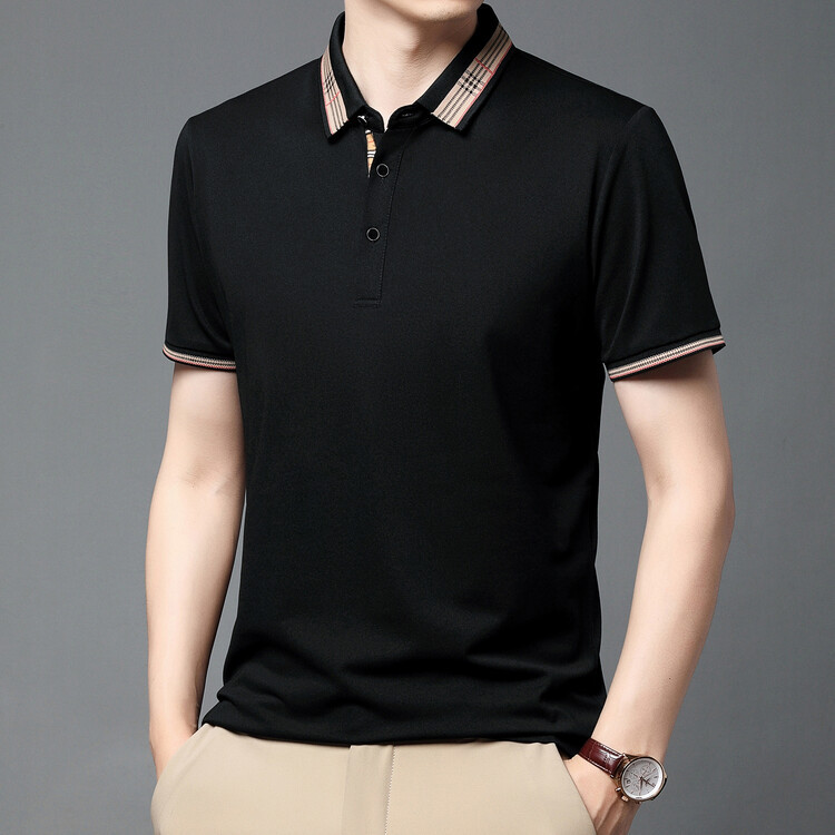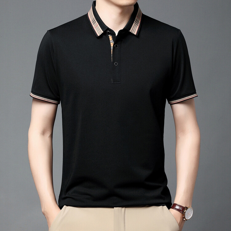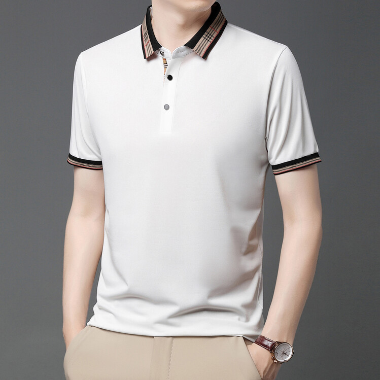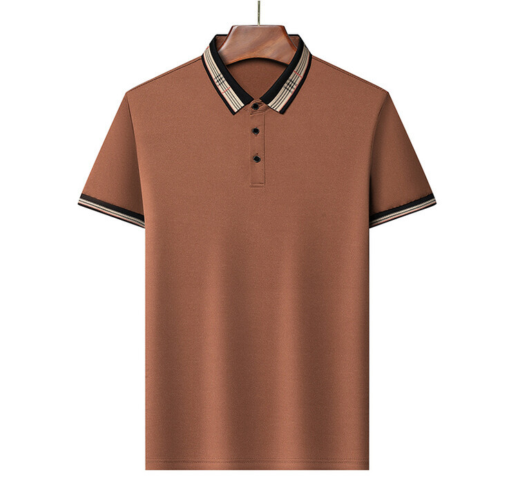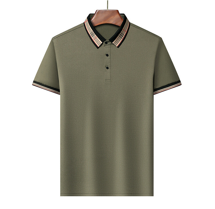 새로운 반팔 옷깃 남성 폴로 셔츠 격자 무늬 스티칭 유명 브랜드 통기성 코튼 탑 패션 캐주얼 단색 티셔츠