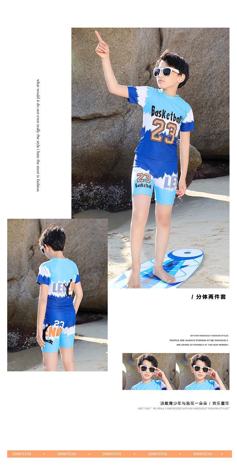 청소년 다이빙 세트 일체형 반소매 복서 반바지 태양 보호 빠른 건조 서핑 세트 중간 및 큰 어린이 뚱뚱한 소년 수영복 도매스토어 가기