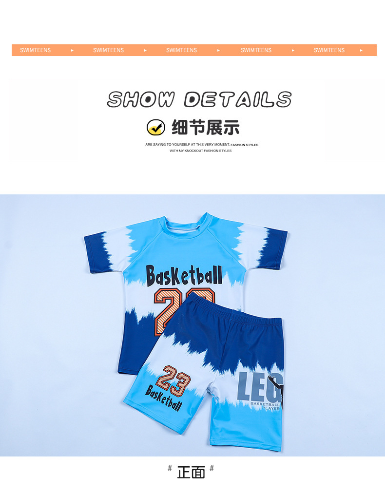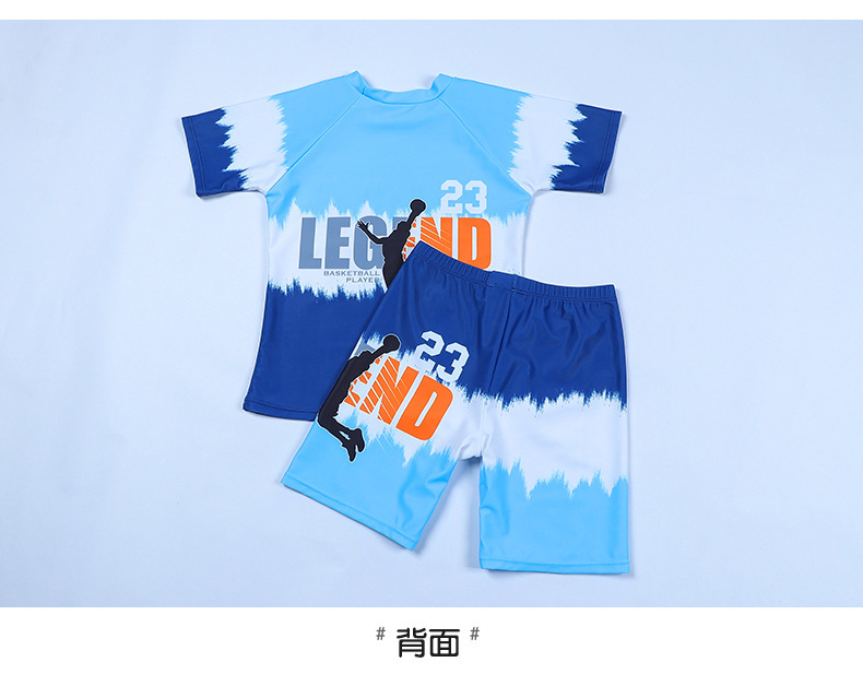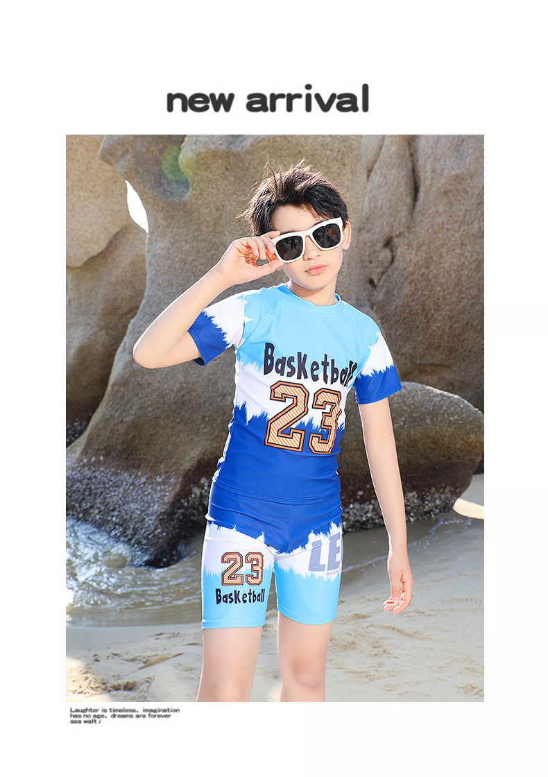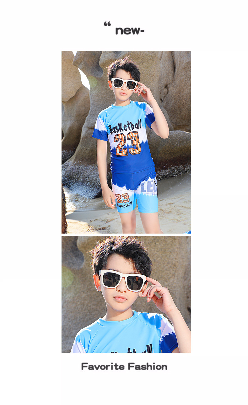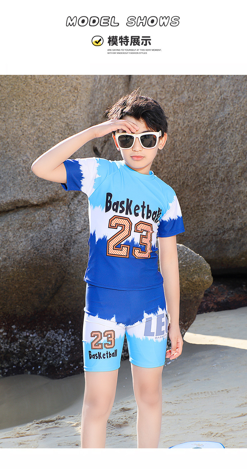 청소년 다이빙 세트 일체형 반소매 복서 반바지 태양 보호 빠른 건조 서핑 세트 중간 및 큰 어린이 뚱뚱한 소년 수영복 도매