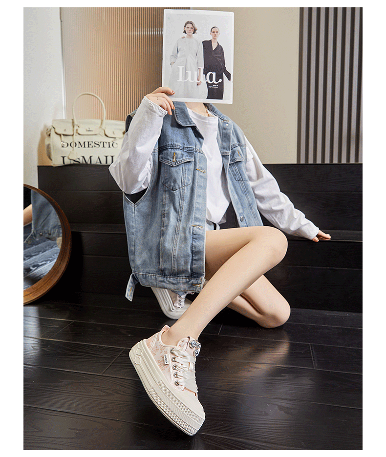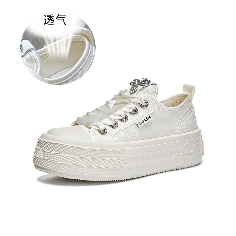 폼솔 국풍 화이트 스니커즈 2025 봄 신상 캐주얼 두꺼운 밑창 운동화 여성 패션 다용도 통기성 여성화스토어 가기