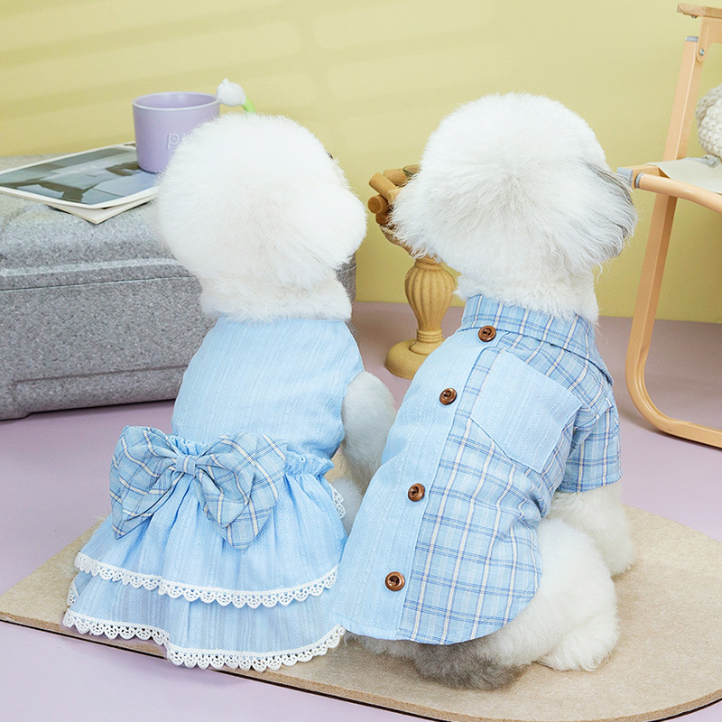 25년 신상 강아지 옷 애완동물 의류 소형견 봄 여름 커플 이너웨어 스커트 테디 포메라니안 배송
