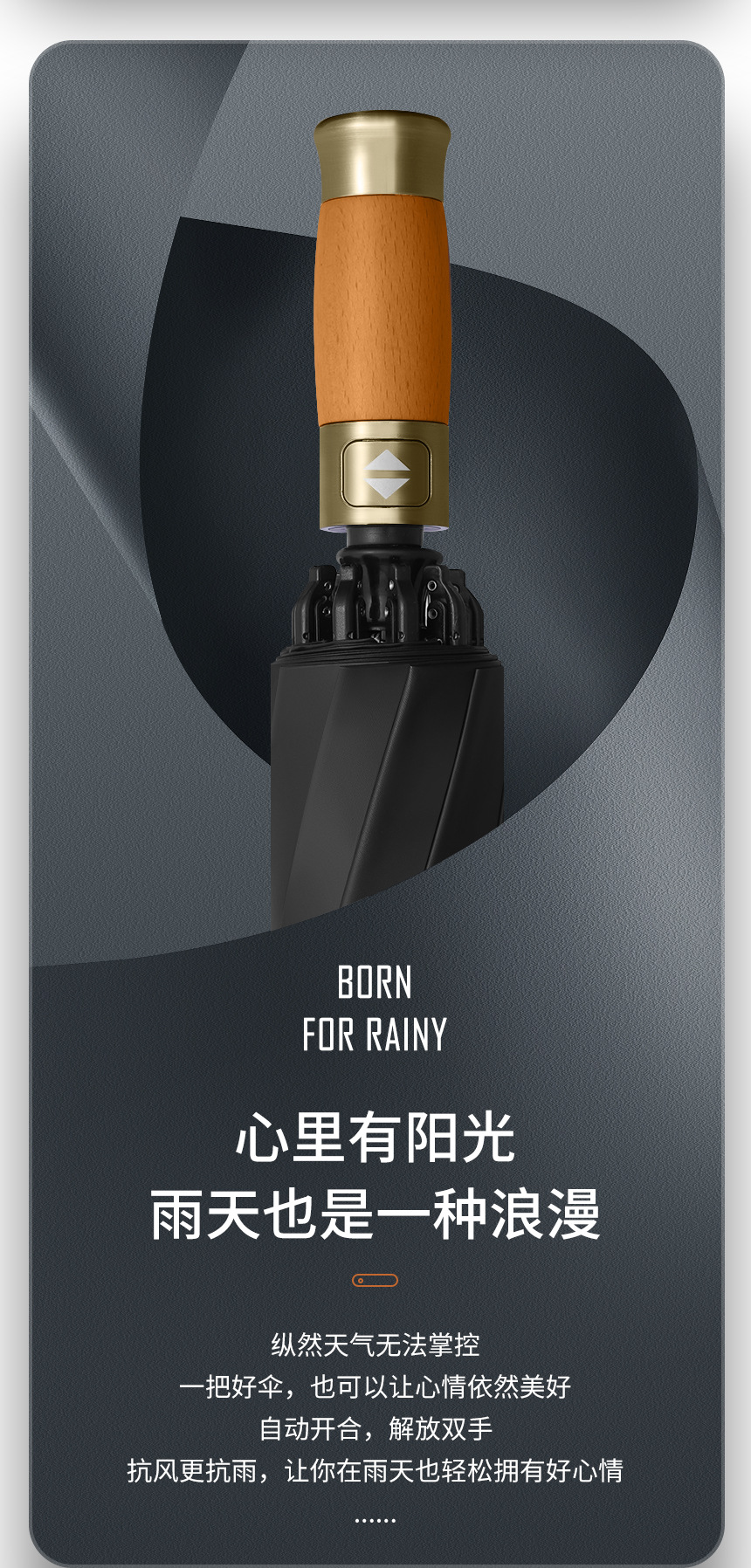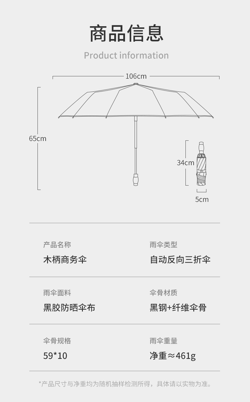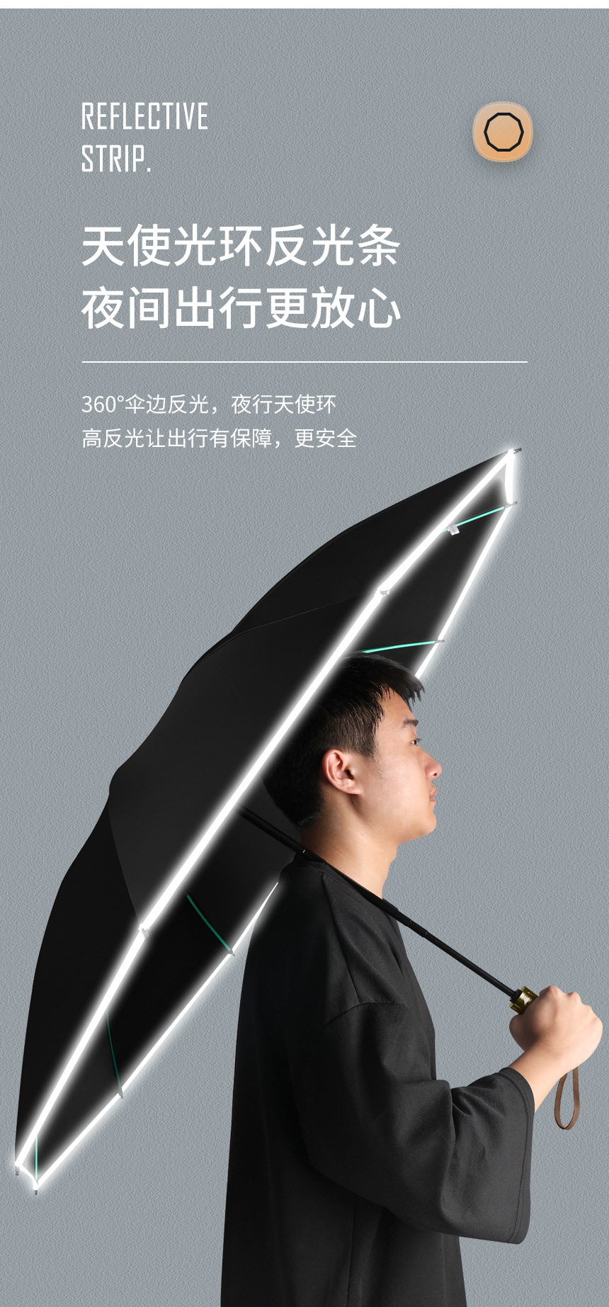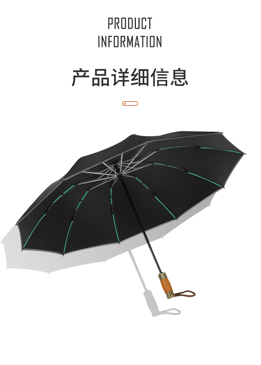 나무 손잡이 10 뼈 자동 반전 우산 접이식 반사 스트립 자동 우산 3 배 Fengfeng 자동차 비즈니스 우산스토어 가기