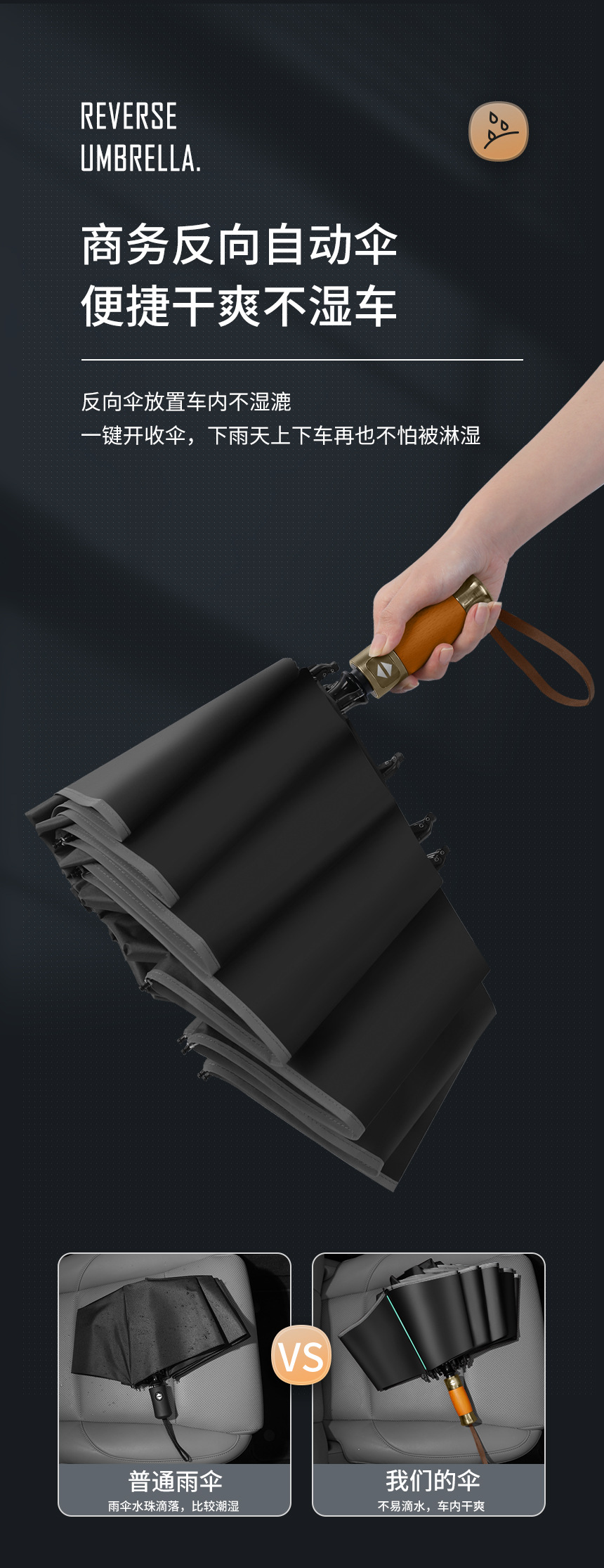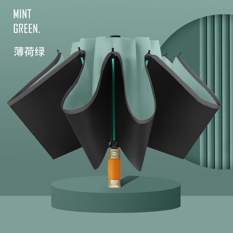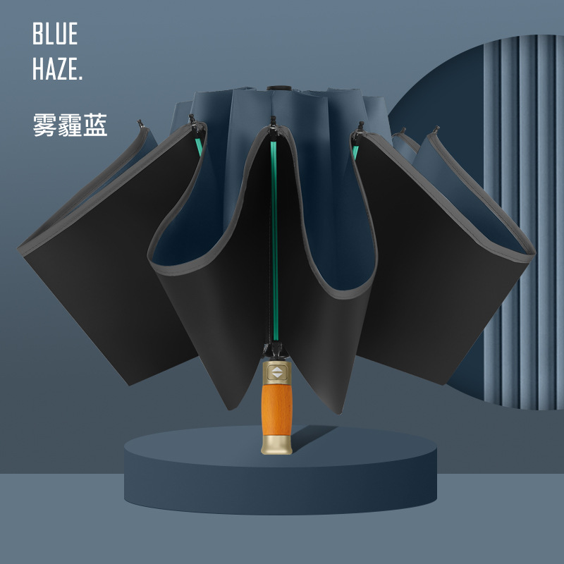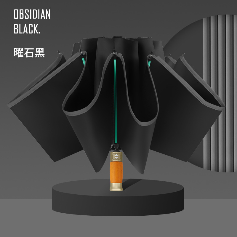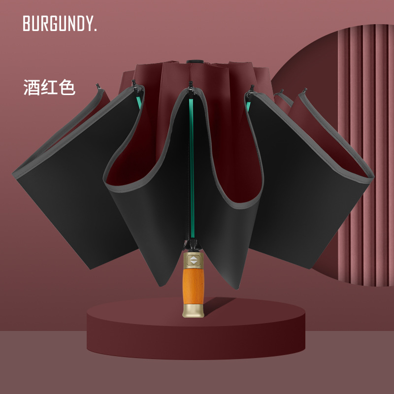 나무 손잡이 10 뼈 자동 반전 우산 접이식 반사 스트립 자동 우산 3 배 Fengfeng 자동차 비즈니스 우산