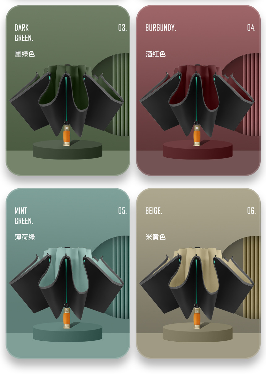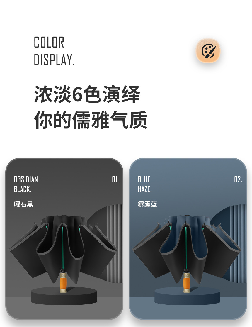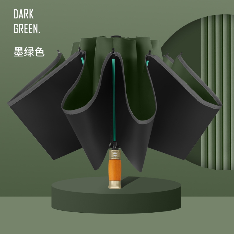 나무 손잡이 10 뼈 자동 반전 우산 접이식 반사 스트립 자동 우산 3 배 Fengfeng 자동차 비즈니스 우산