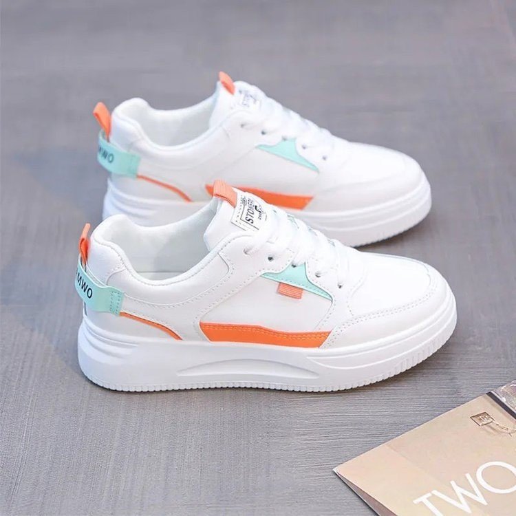 여성을위한 흰색 신발 2024 가을 새로운 여성 신발, 학생들을위한 세련된 신발 올 매치 가죽 캐주얼 스포츠 플랫 슈즈스토어 가기