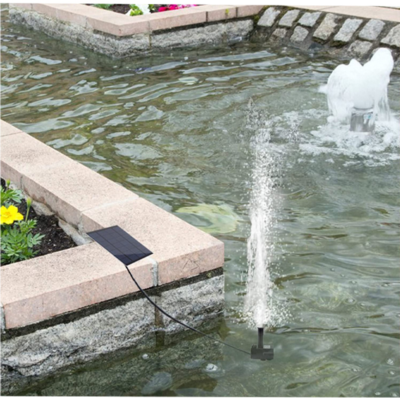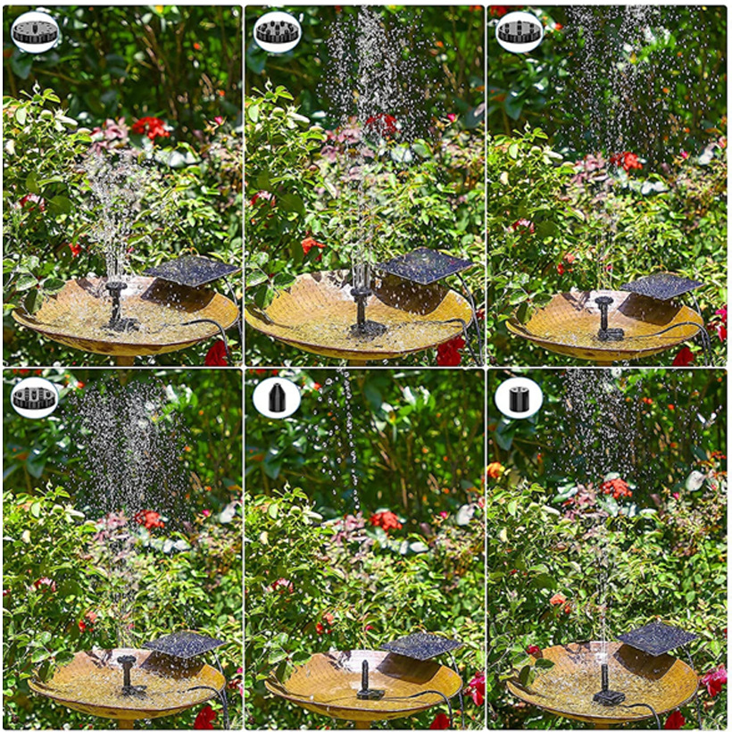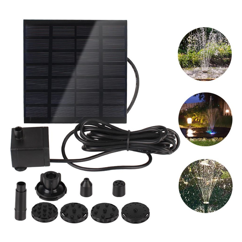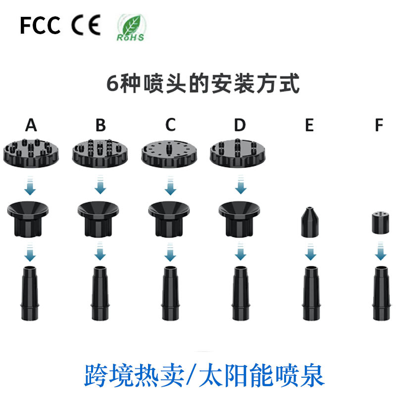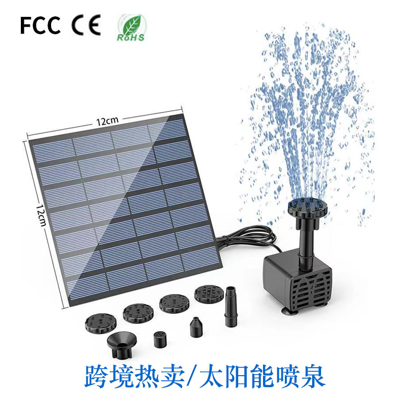 太阳能喷泉是利用太阳能板驱动水泵抽水的景观性喷泉产品。本产品采用高效单晶硅太阳能电池板以及新型高效率无刷潜水泵,具有启动快、效率高、稳定性强的优点。此外,产品漂浮在水面上,无需外接电源,安装方便、操作简单。广泛应用于适用于花园装饰、鸟澡盆、小池塘水体循环增氧、假山喷泉等场所。安装简单,使用方便,只要有阳光照到,就能启动工作。无刷潜水泵采用高灵敏度低功耗的霍尔元件,配合高效智能的电子线路驱动,并针对叶轮腔采用流体力学中的蜗壳设计,减少水流的阻力,从而使综合性能比传统结构的水泵的效率提升20%,在同等太阳能板功率情况下水泵喷水效果含弱光(阴天,阳光不稳定等)更突出,配备新6种完全不同喷头配件,喷水款式更多,效果更好。
