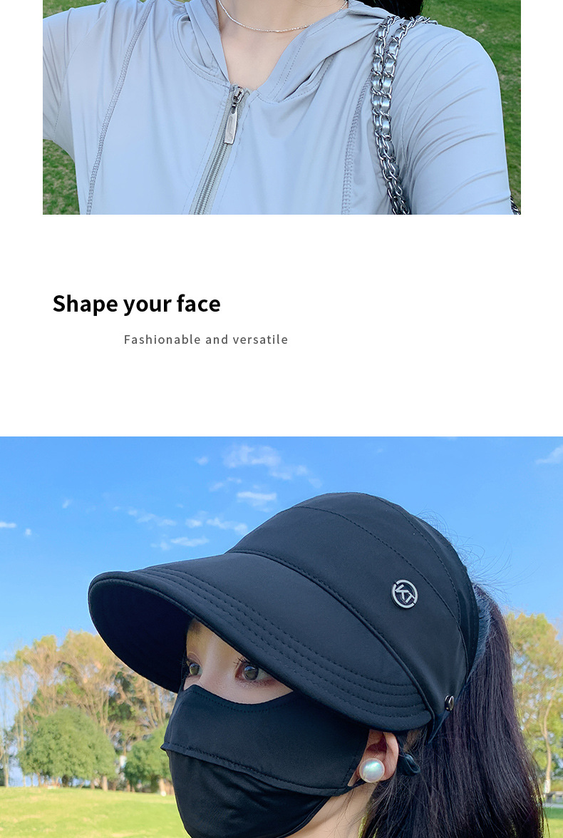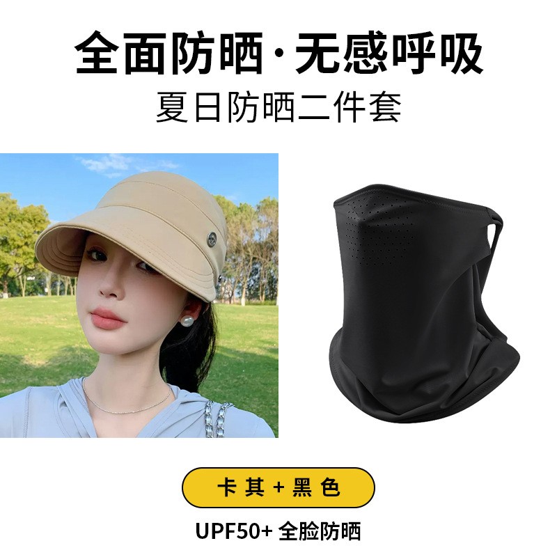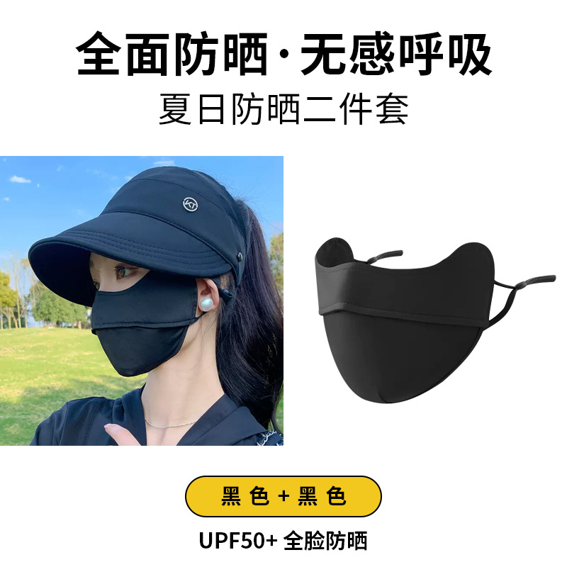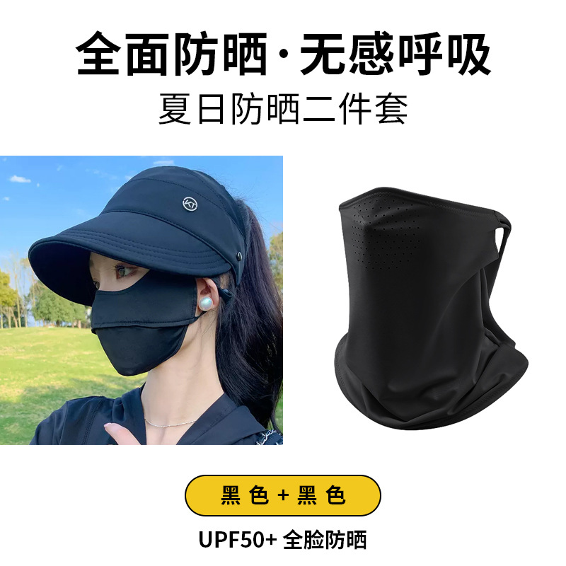 • 태양 보호 투피스 "검은 어부 모자 아이스 실크 마스크]