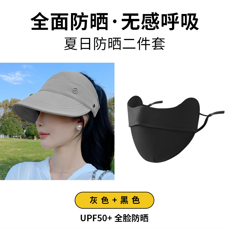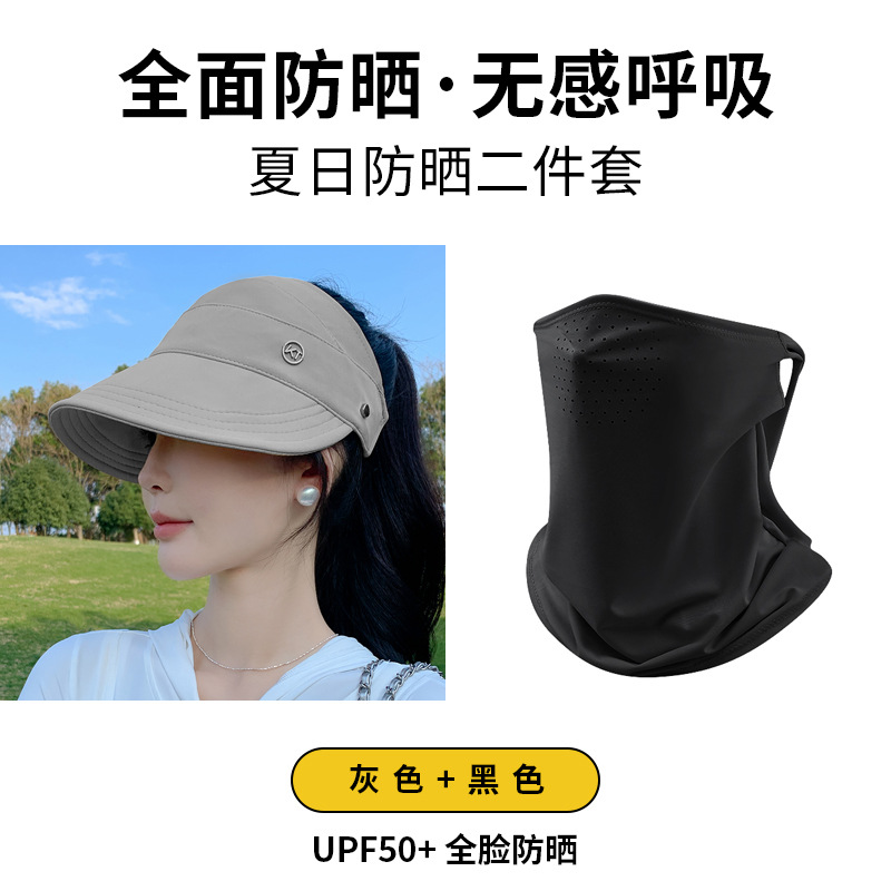 • 태양 보호 투피스 세트 [회색 어부 모자 아이스 실크 마스크]]