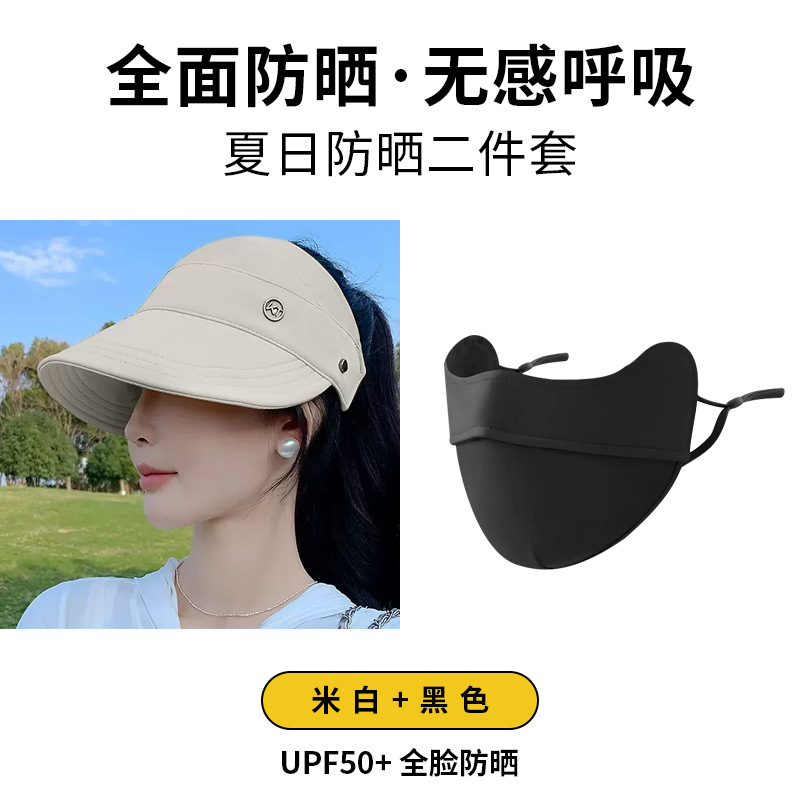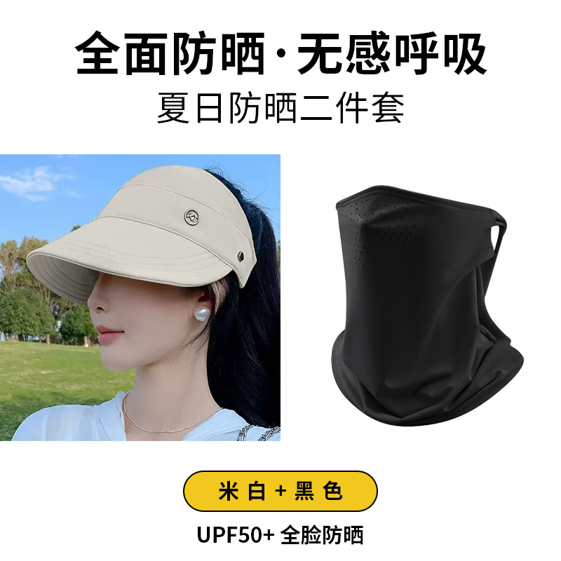 • 태양 보호 투피스 "베이지 어부 모자 아이스 실크 마스크]