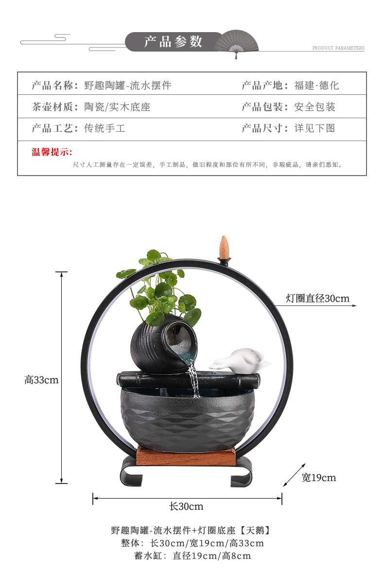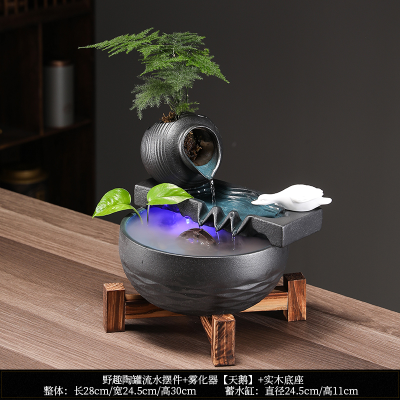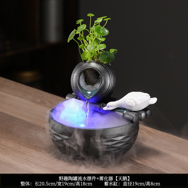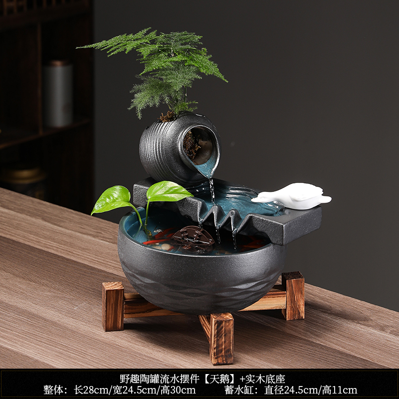 • 야생 도자기 냄비 흐르는 물 장식품 [백조] + 분무기