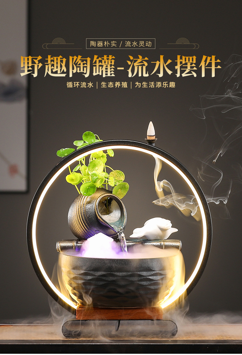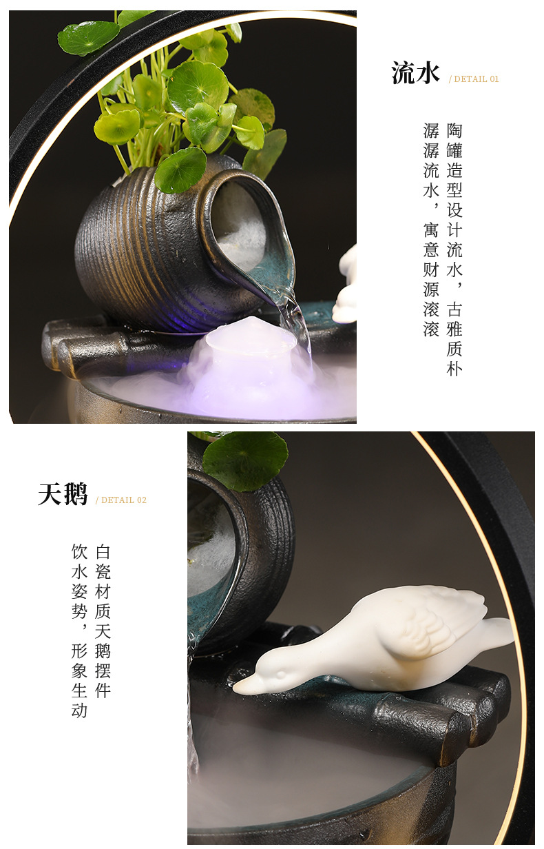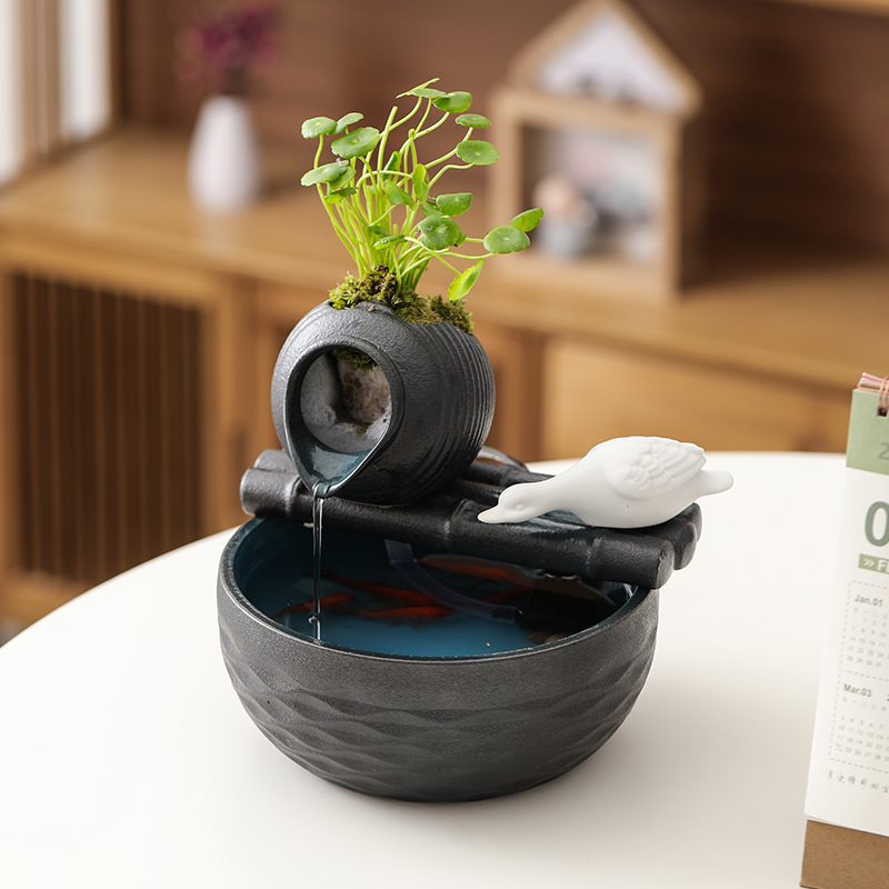 창조적 인 세라믹 흐르는 물 장식 행운의 거실 순환 물고기 탱크 분수 사무실 데스크탑 장식 오프닝 선물